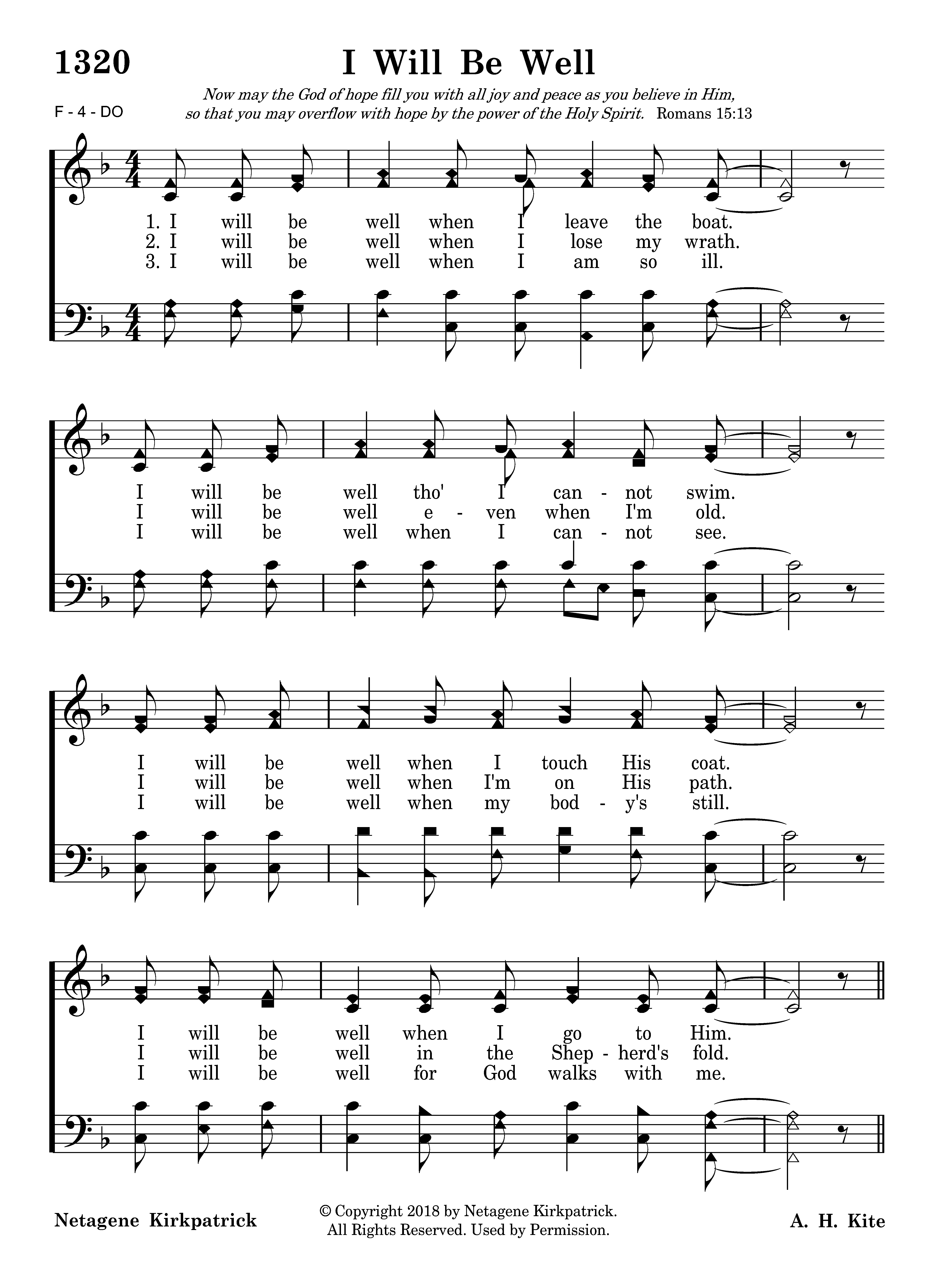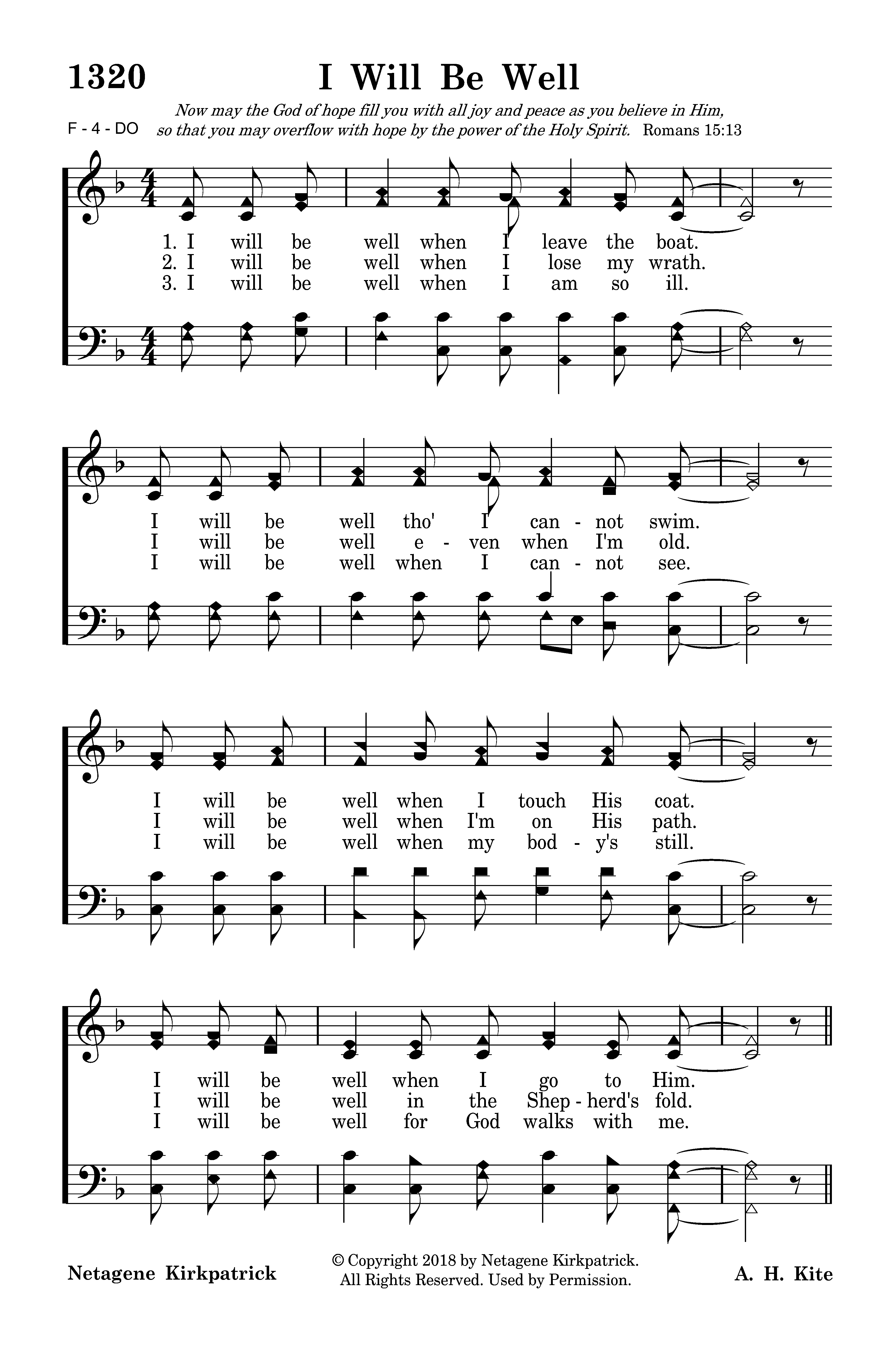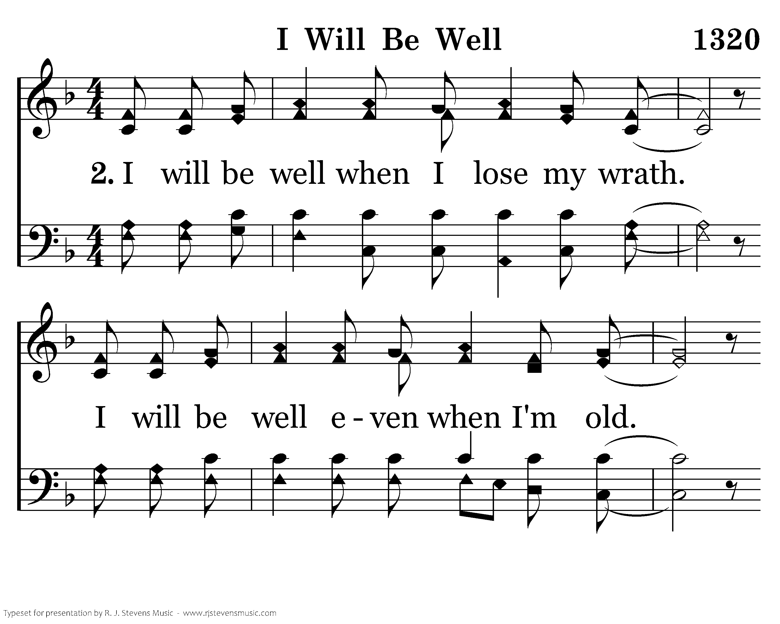 I will be well when I lose my wrath. I will be well even when I'm old. I will be well when I'm on His path. I will be well in the Shepherd's fold.