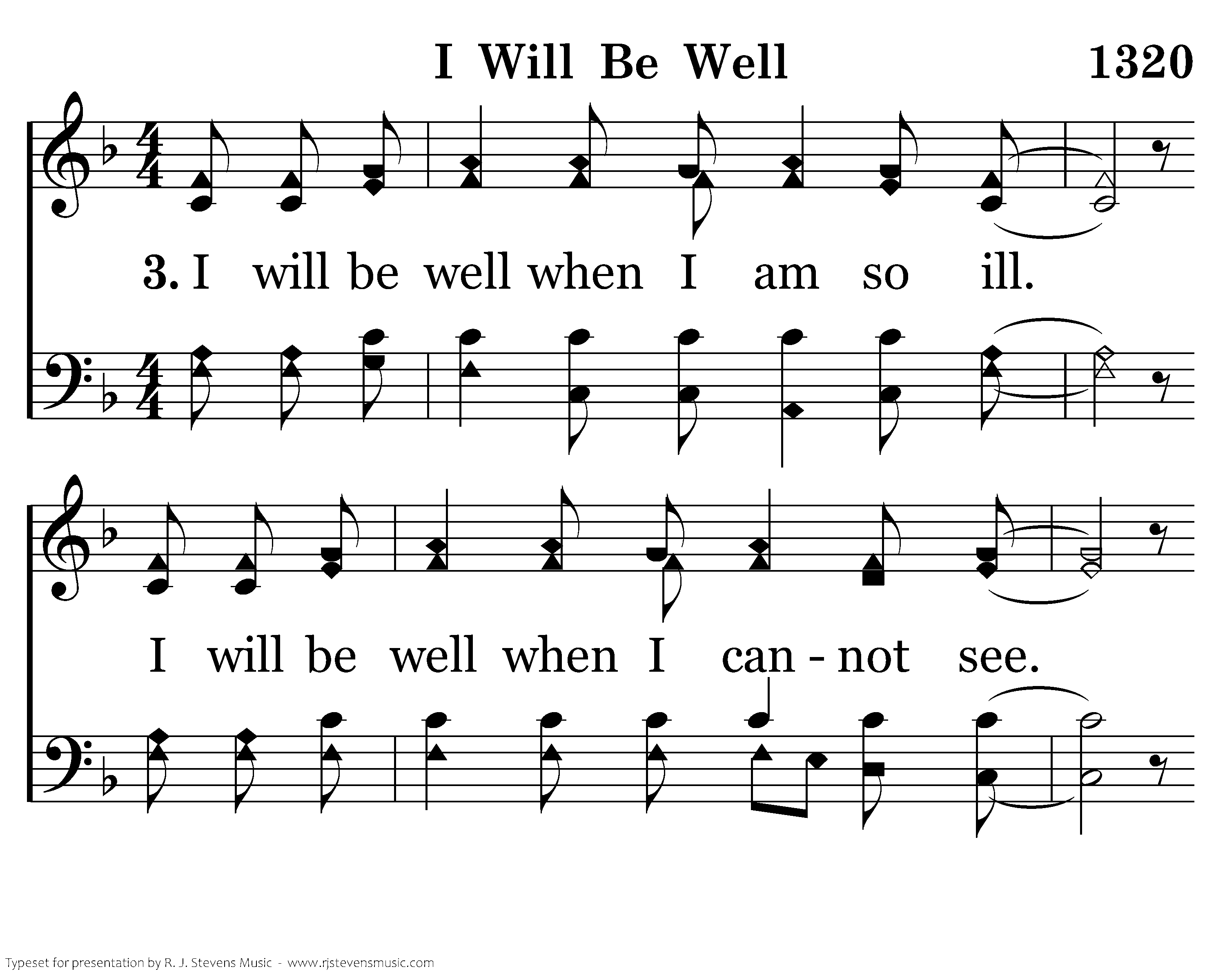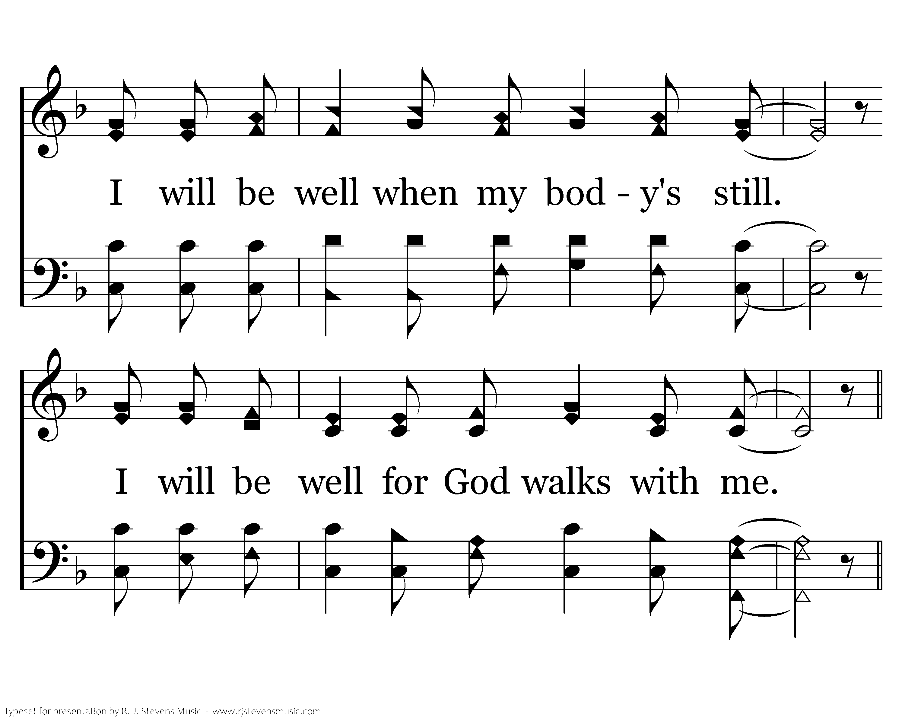 I will be well when I am so ill. I will be well when I cannot see. I will be well when my body's still. I will be well for God walks with me.