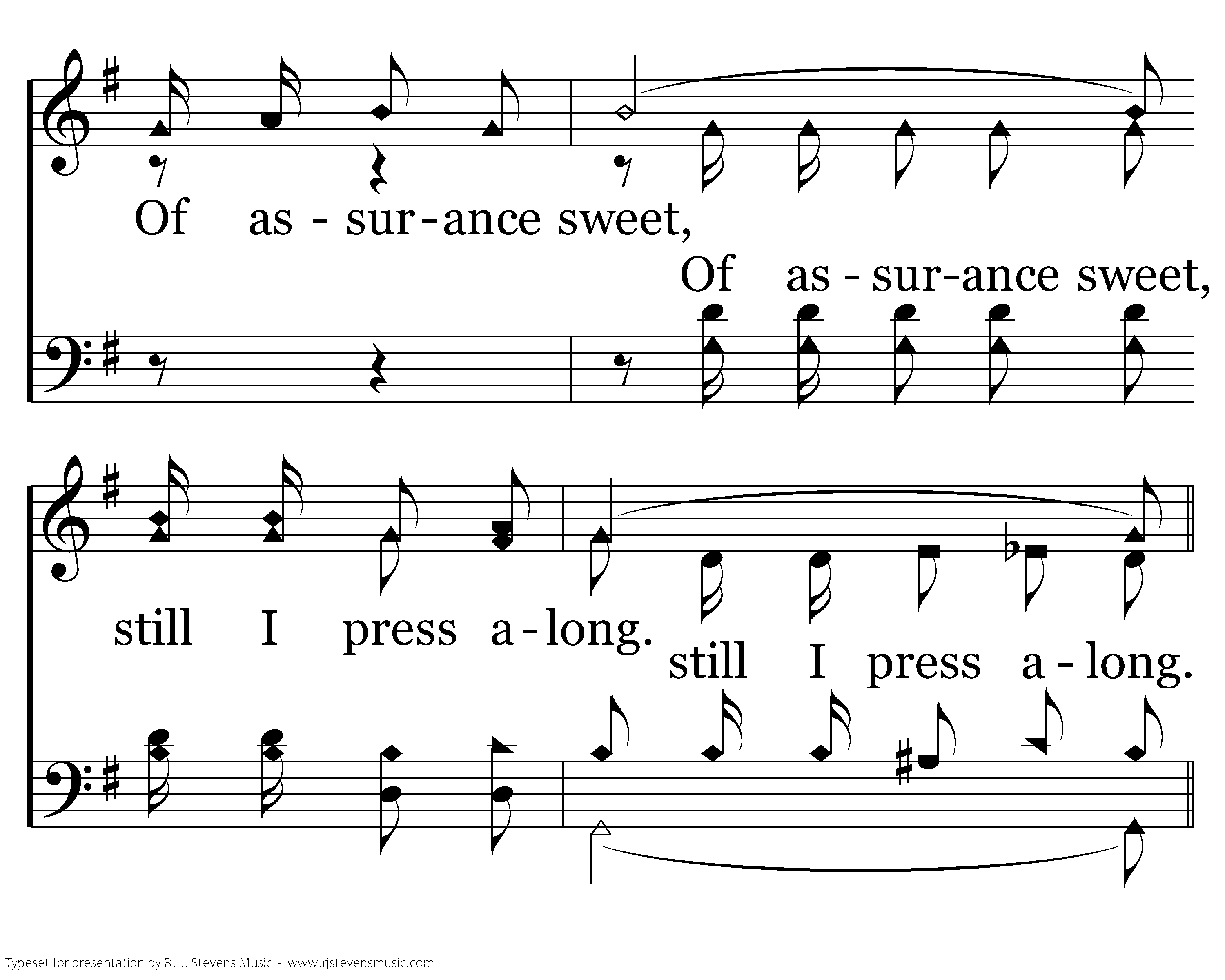 There are some who sneer at the old Cross Road, At the pearly gate, and the soul's abode; Yet I mind them not, but, with happy song, Of assurance sweet, still I press along.