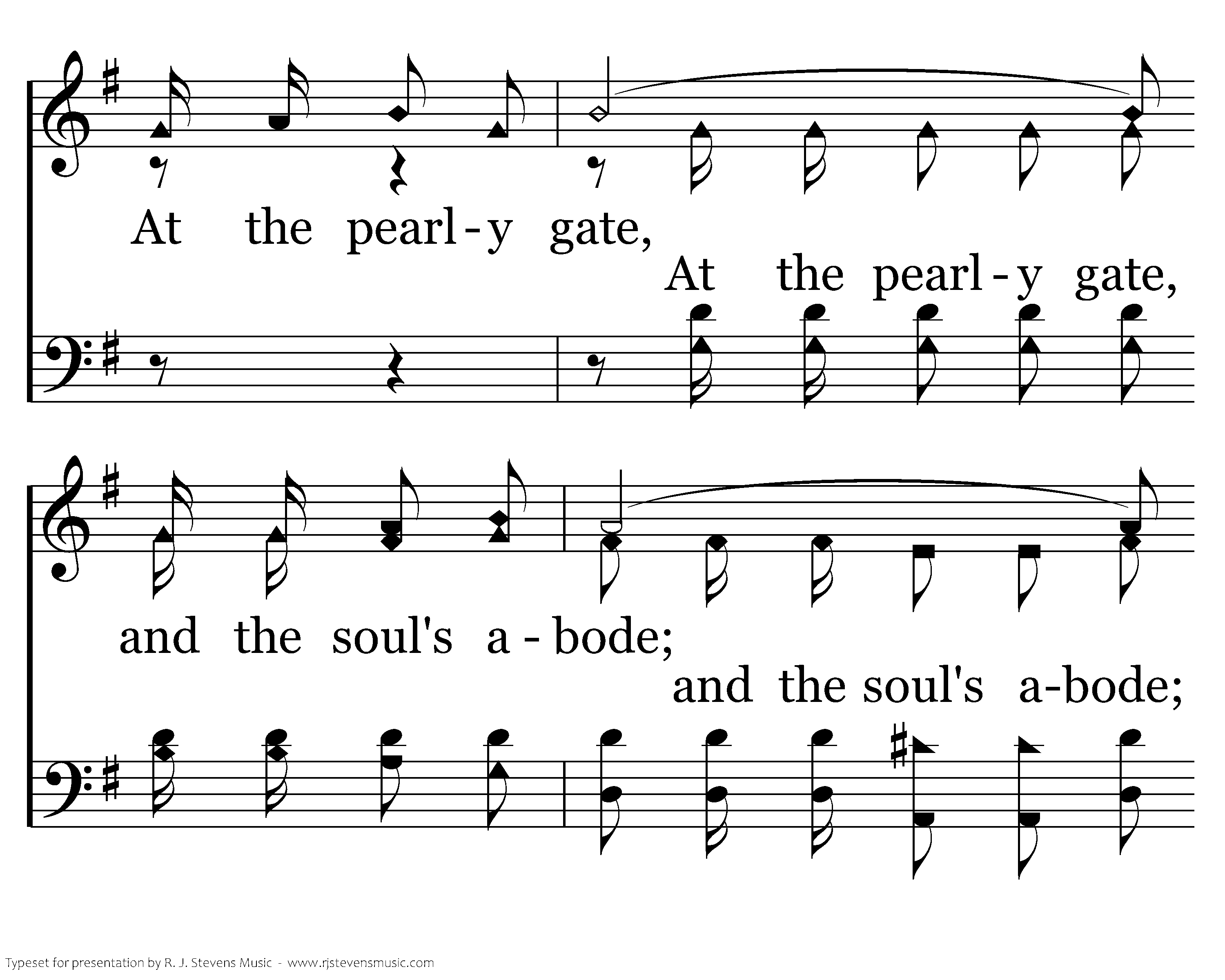 There is just one way to the pearly gate, To the crown of life and the friends who wait; 'Tis the old Cross Road, or the way called "Straight," There is just one way to the pearly gate.