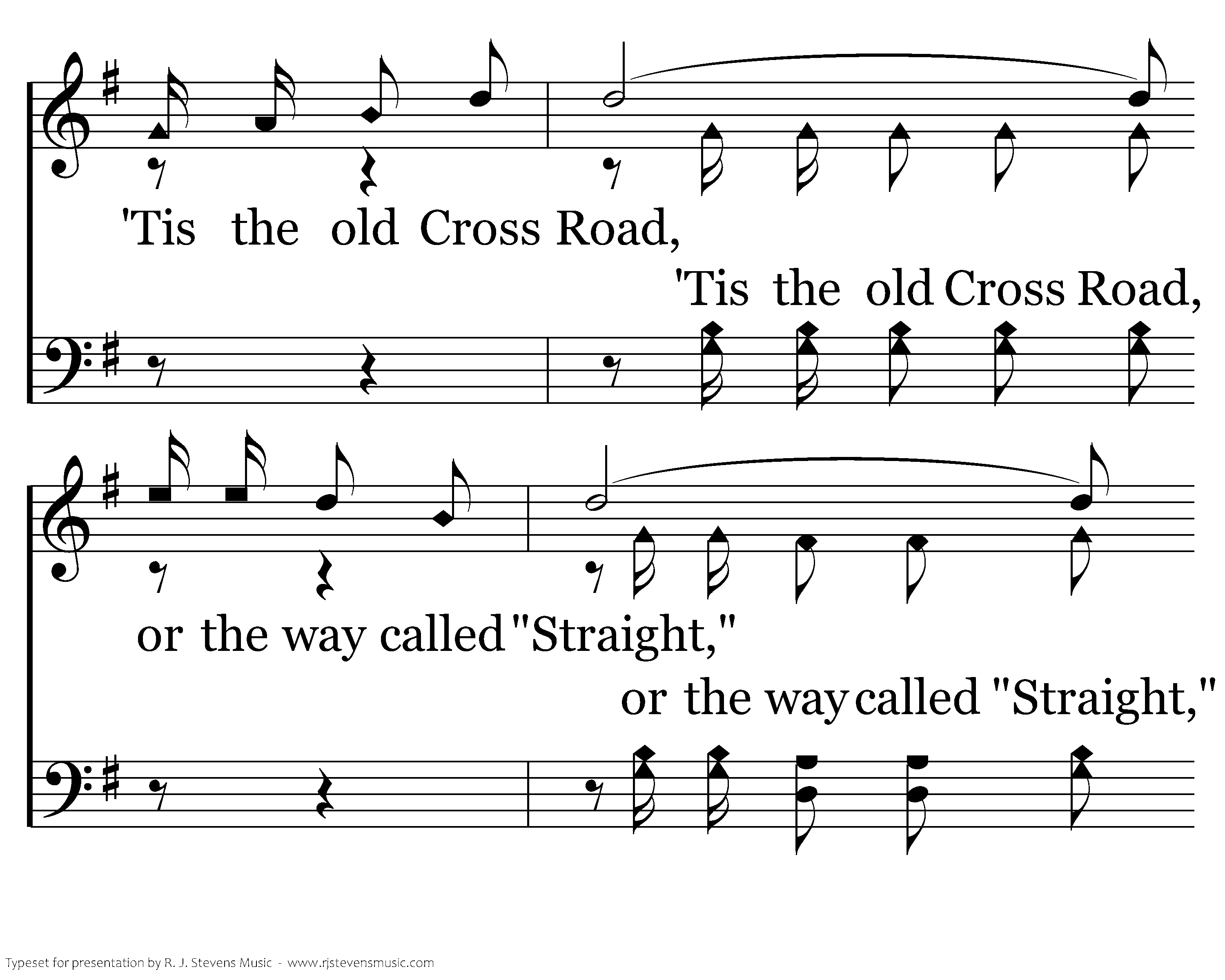 Others risk their souls on some newmade way, Thinking they will come to the gate some day; O, may they find out, ere their lives are done, That the old Cross Road is the only one.