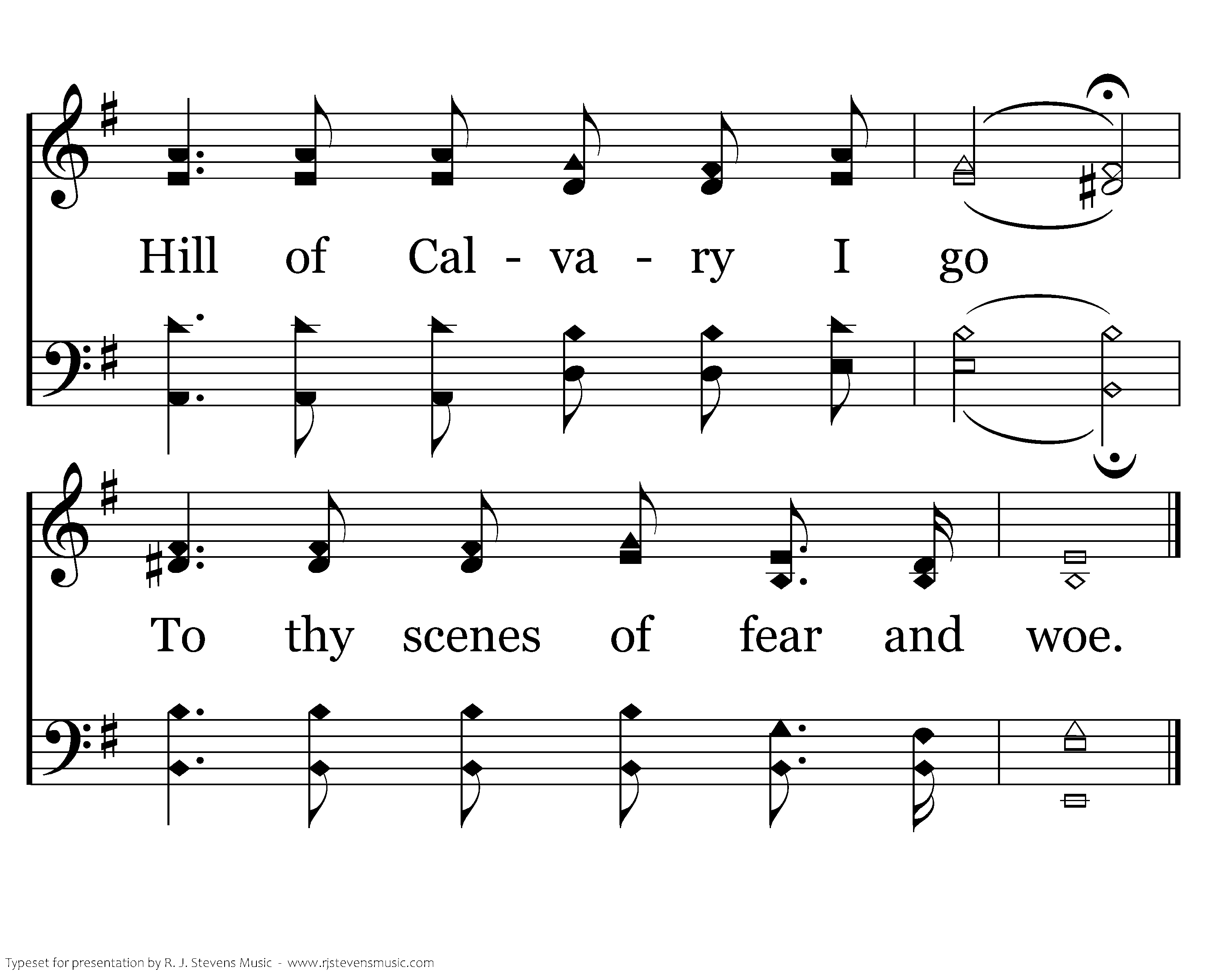 When my love for man grows weak, When for stronger faith I seek, Hill of Calvary I go To thy scenes of fear and woe.