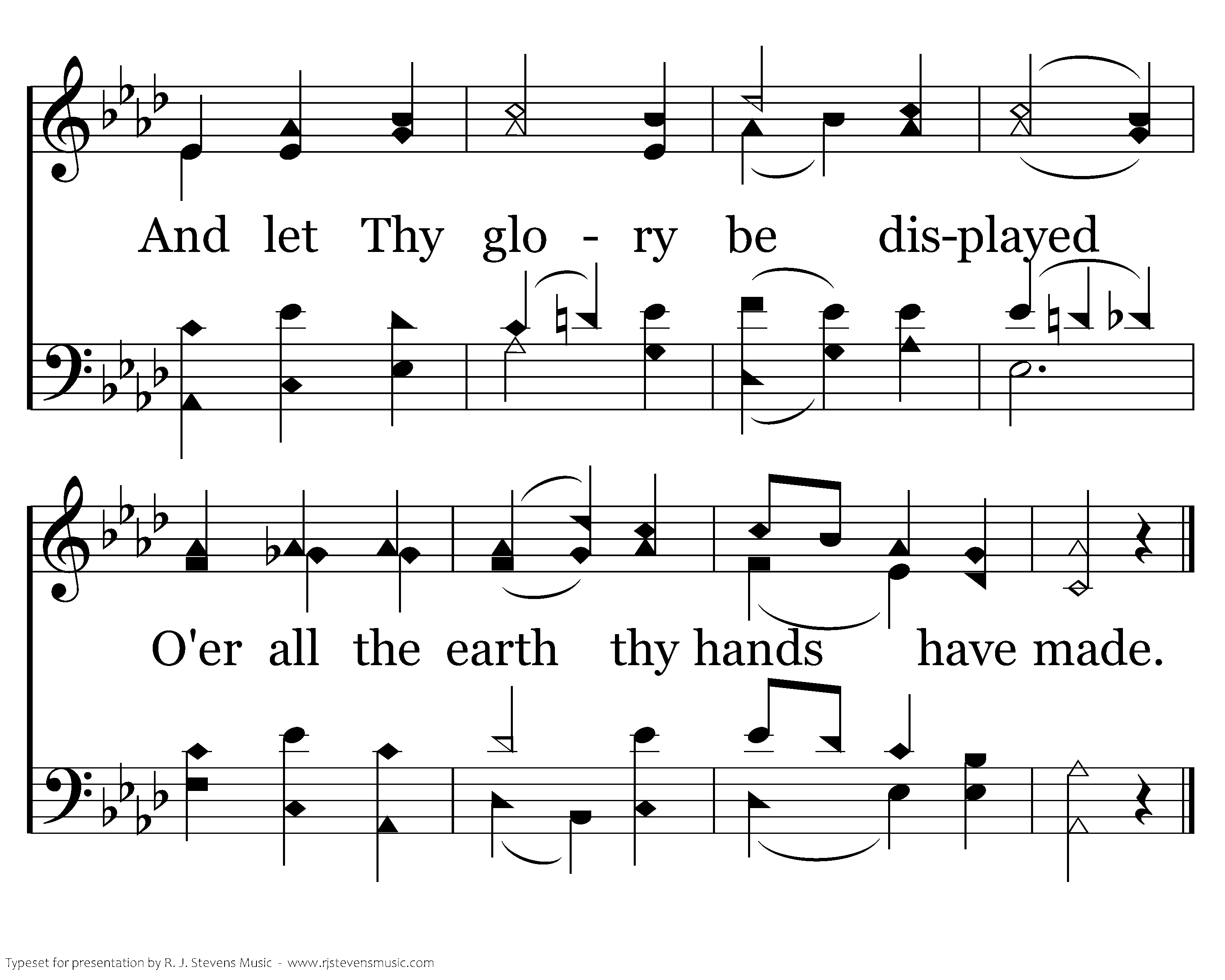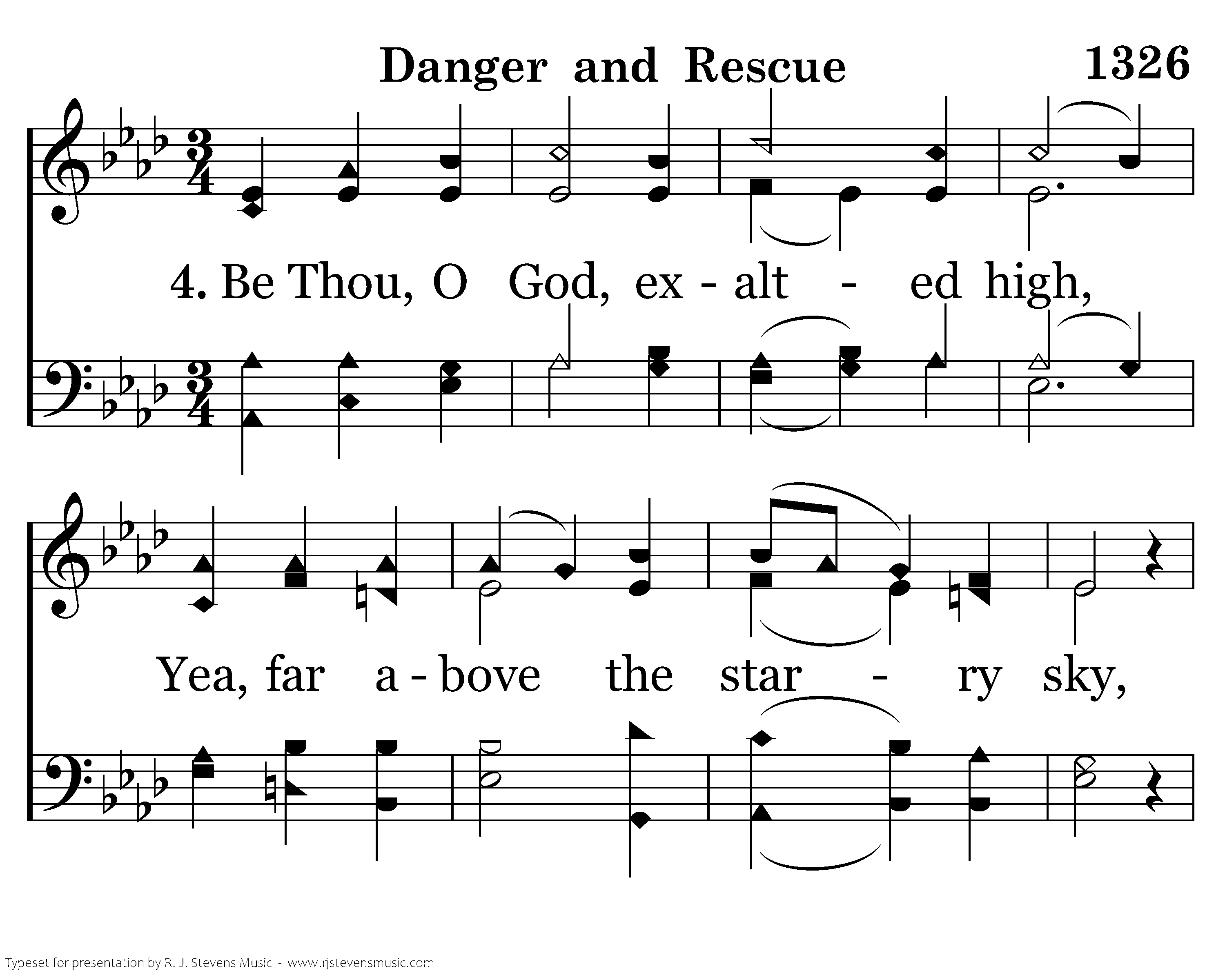 Be Thou, O God, exalted high, Yea, far above the starry sky, And let Thy glory be displayed O'er all the earth thy hands have made.