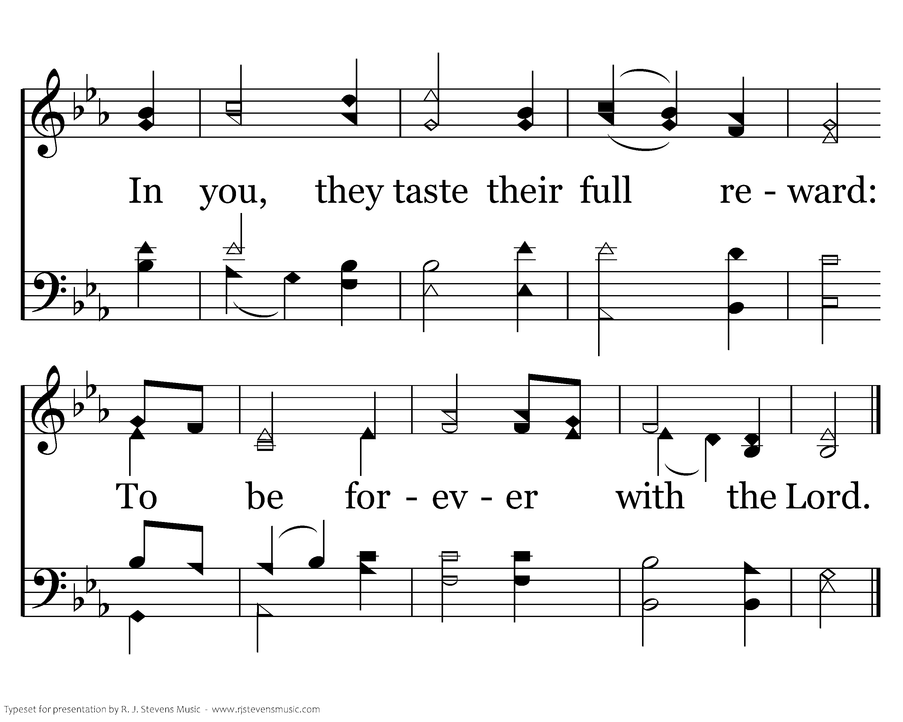 Jerusalem! Eternal throne, Where God will reign among His own; In you, they taste their full reward: To be forever with the Lord.