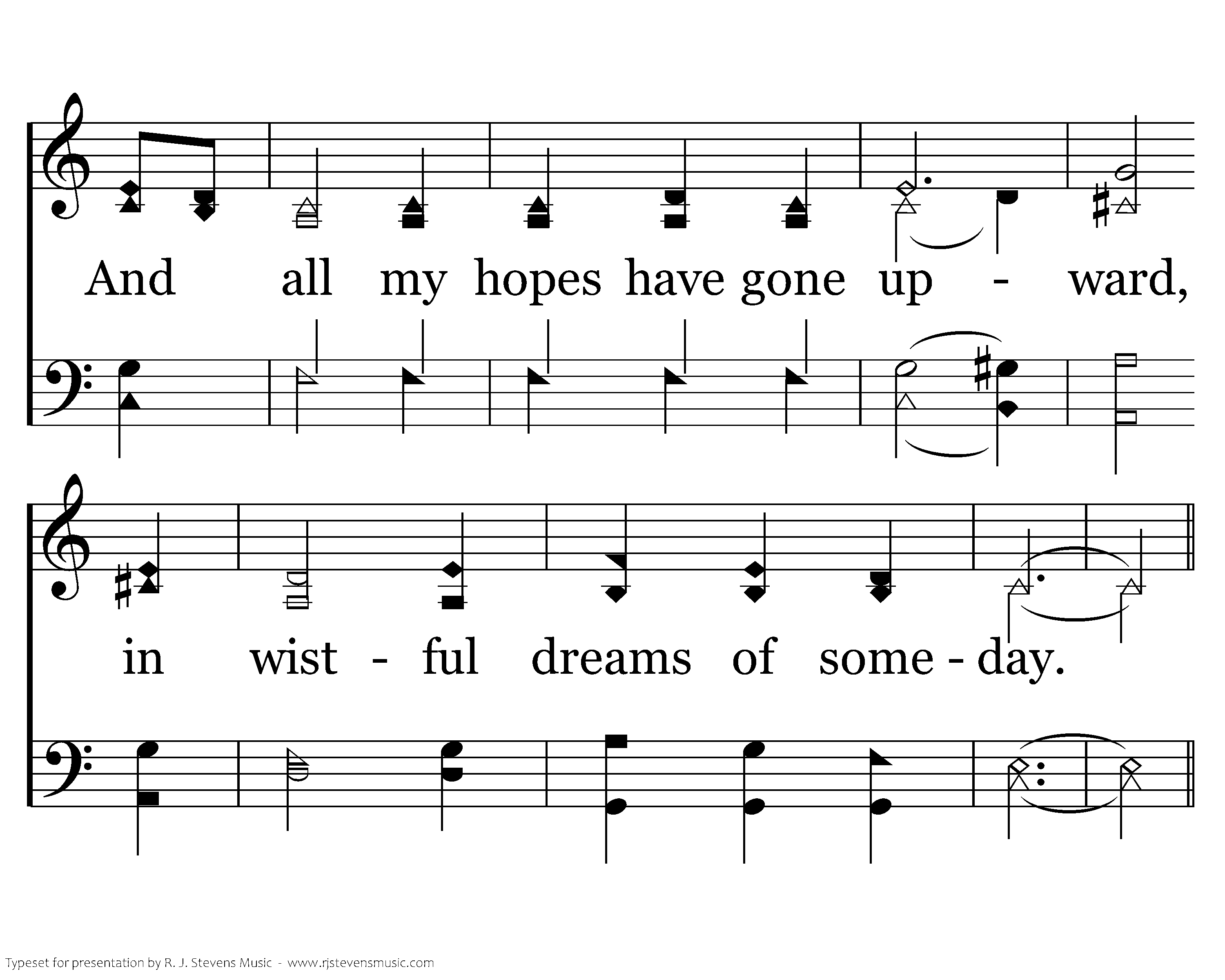 My treasures here have all faded, familiar things have all changed, And all my hopes have gone upward, in wistful dreams of someday.
