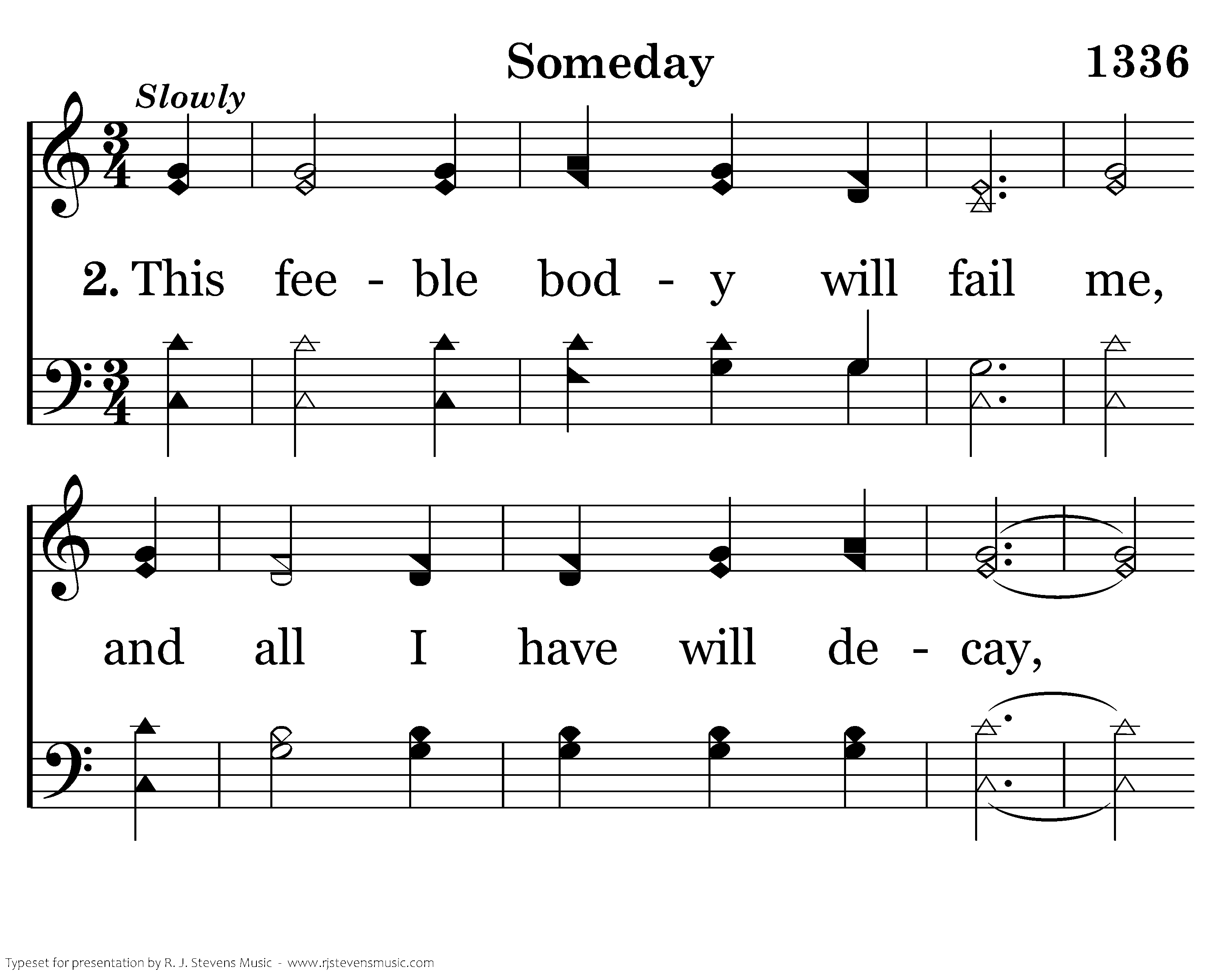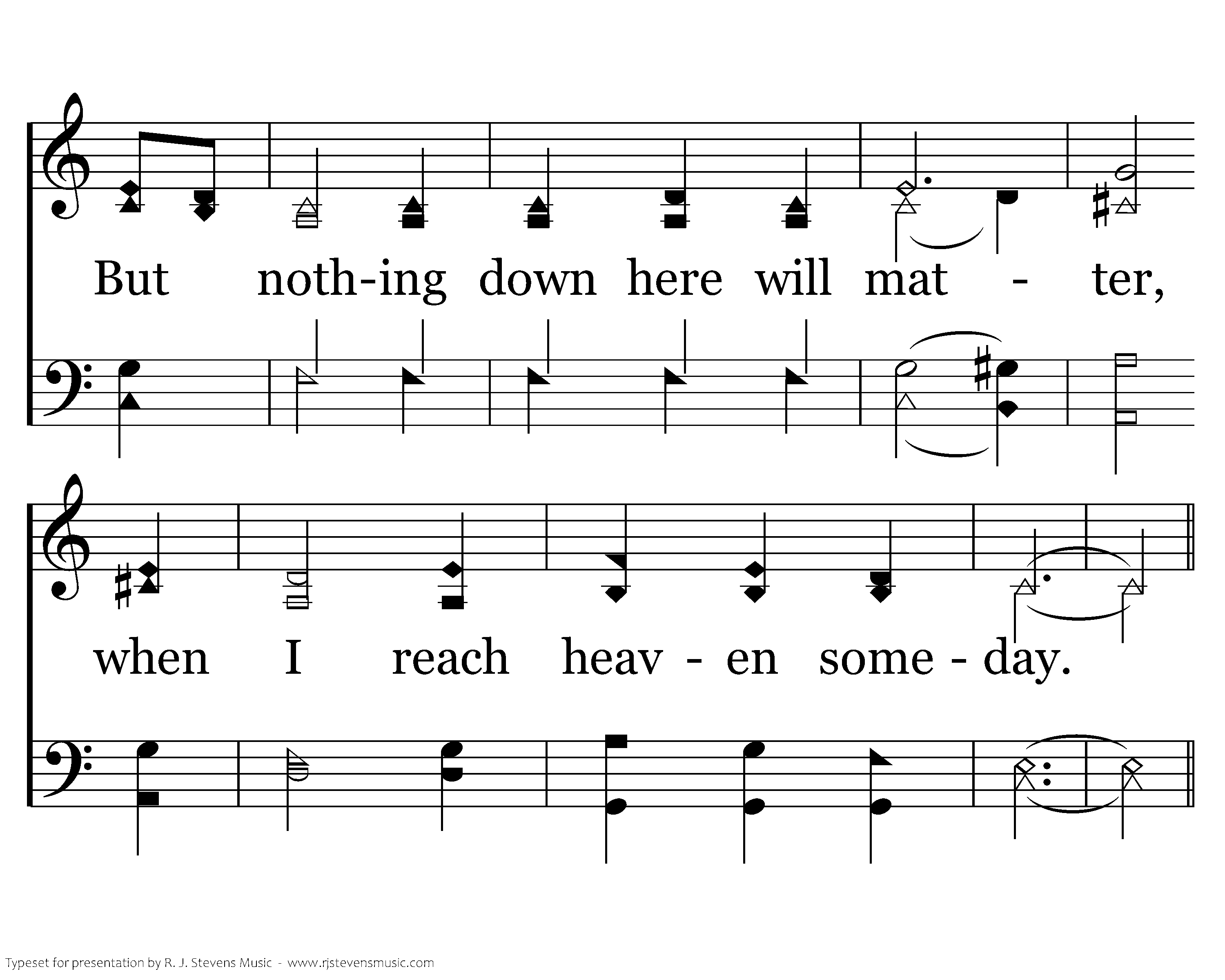 This feeble body will fail me, and all I have will decay, But nothing down here will matter, when I reach heaven someday.