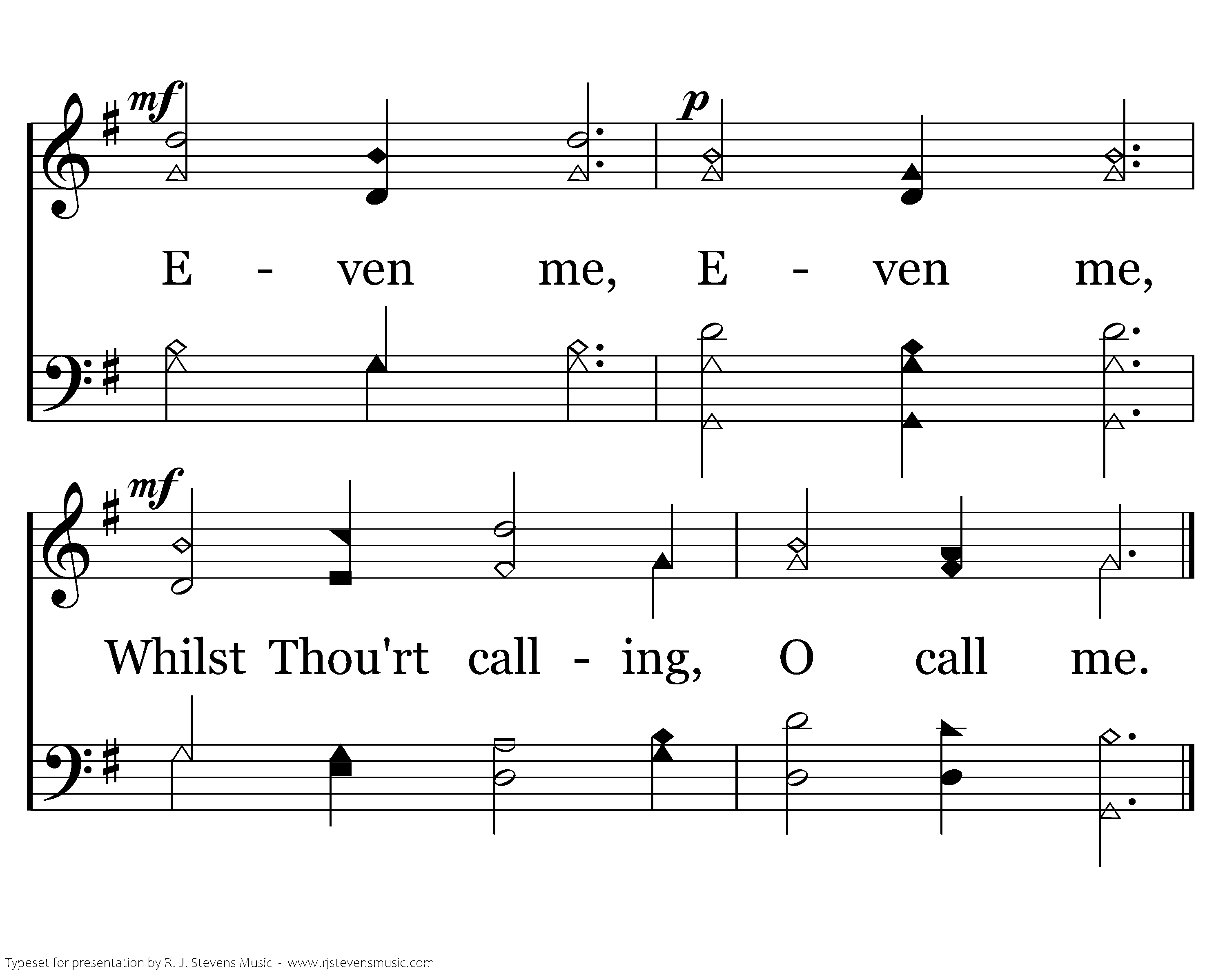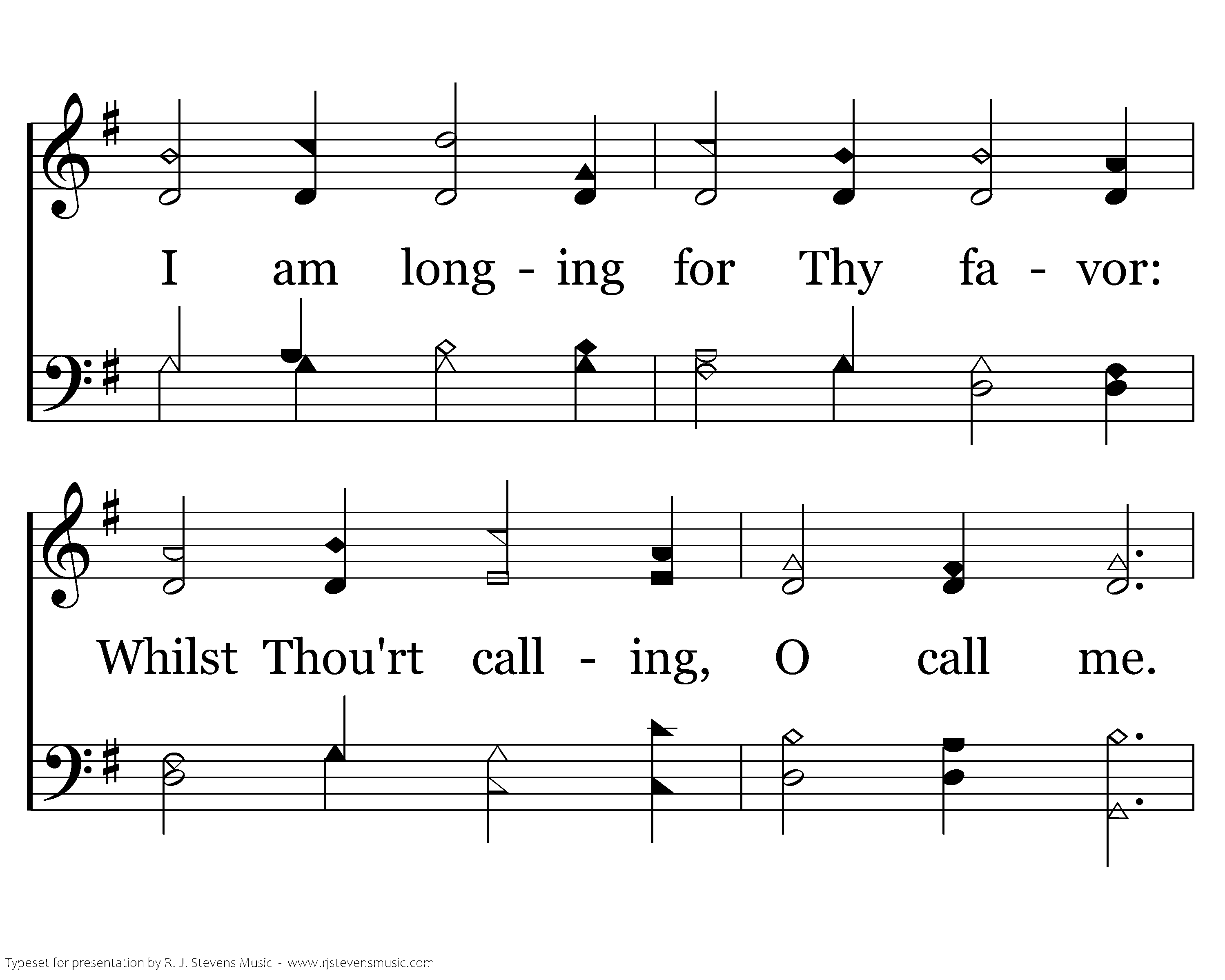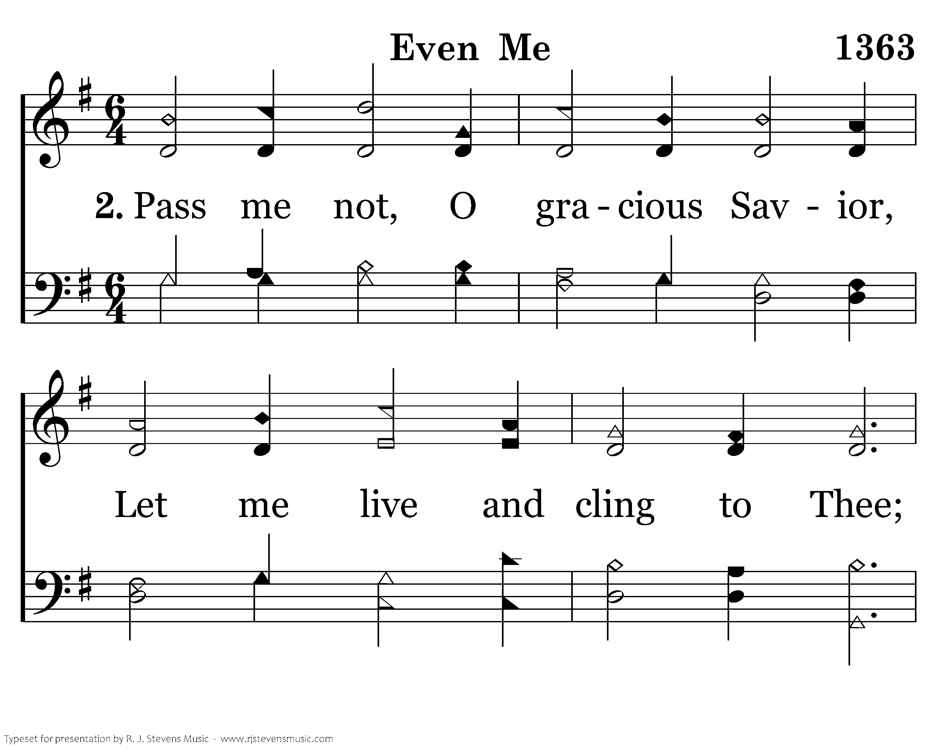 Pass me not, O gracious Savior, Let me live and cling to Thee; I am longing for Thy favor: Whilst Thou'rt calling, O call me. Even me, Even me, Whilst Thou'rt calling, O call me.