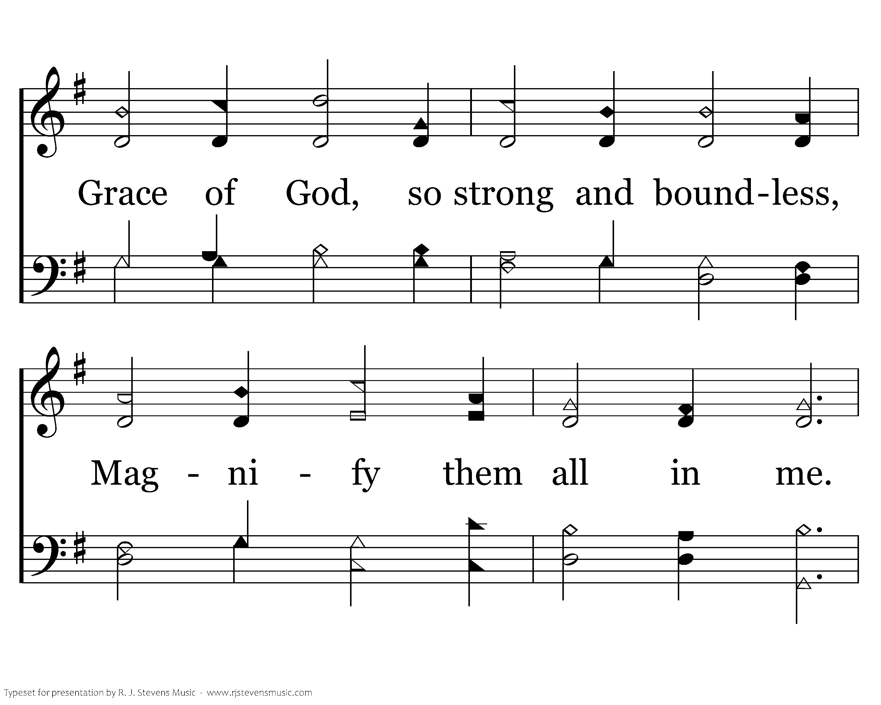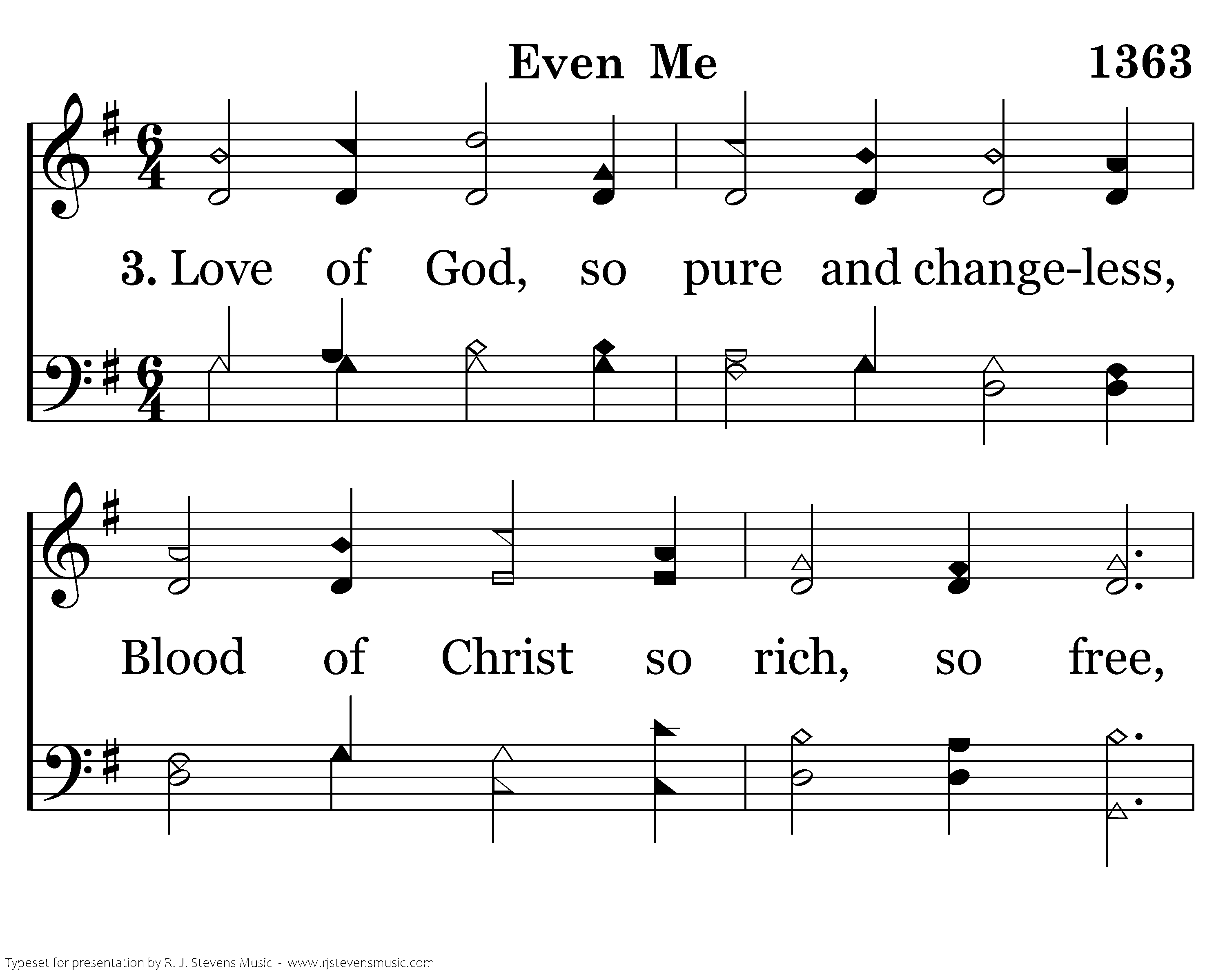 Love of God, so pure and changeless, Blood of Christ so rich, so free, Grace of God, so strong and boundless, Magnify them all in me. Even me, Even me, Magnify them all in me.