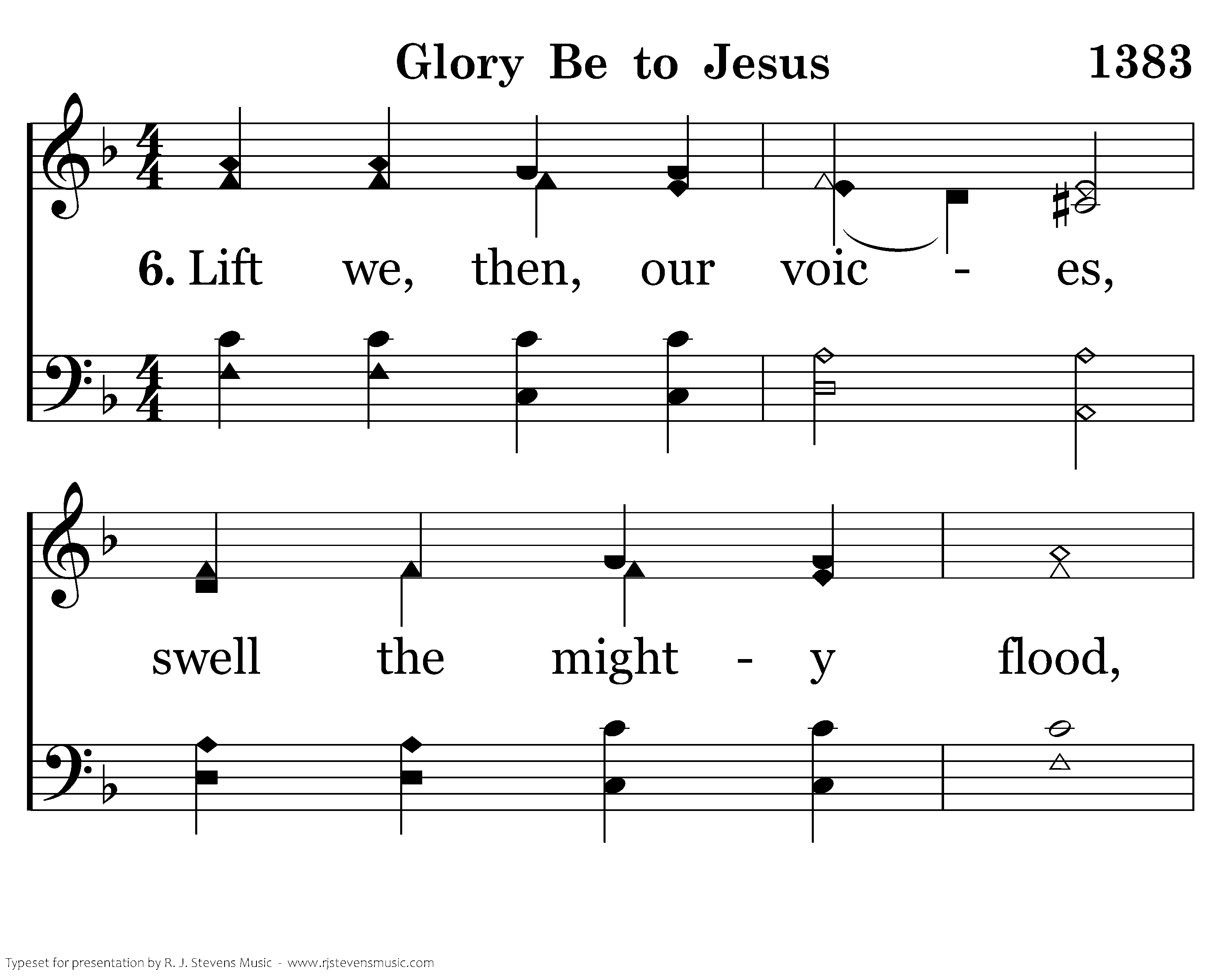 Lift we, then, our voices, swell the mighty flood, Louder still and louder praise the precious blood!