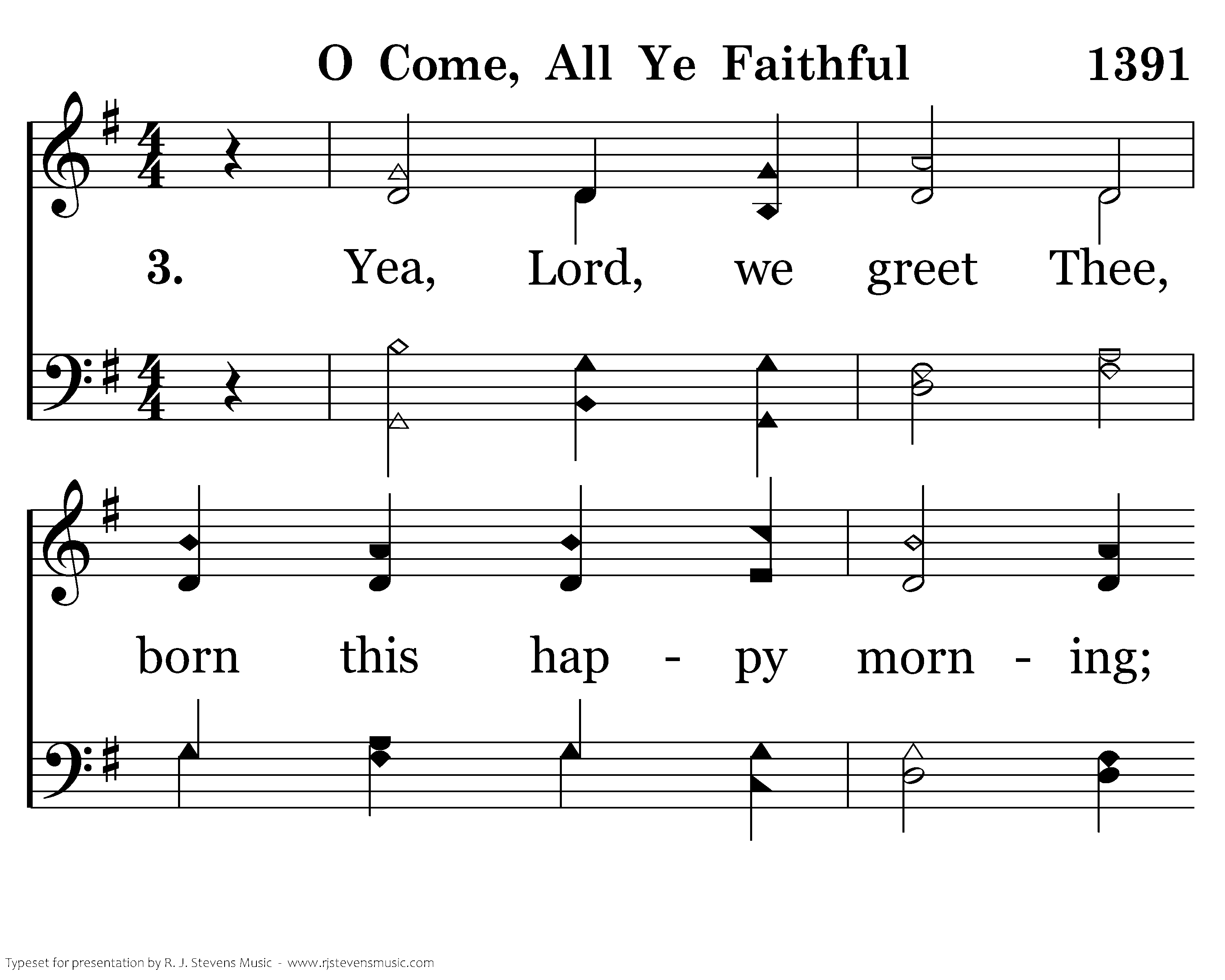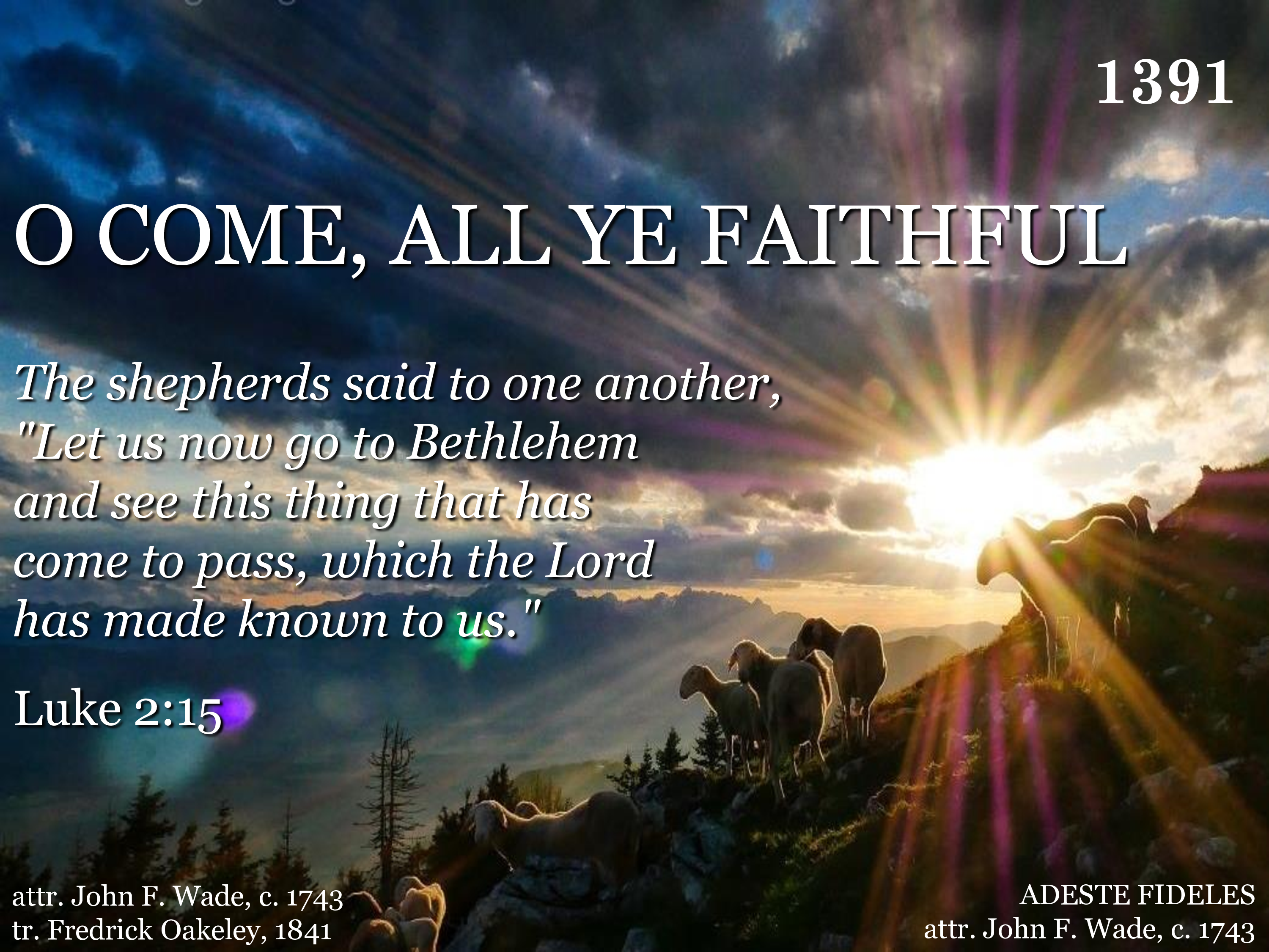 O come, all ye faithful, joyful and triumphant, O come ye, O come ye to Bethlehem; Come and behold Him, born the King of angels;