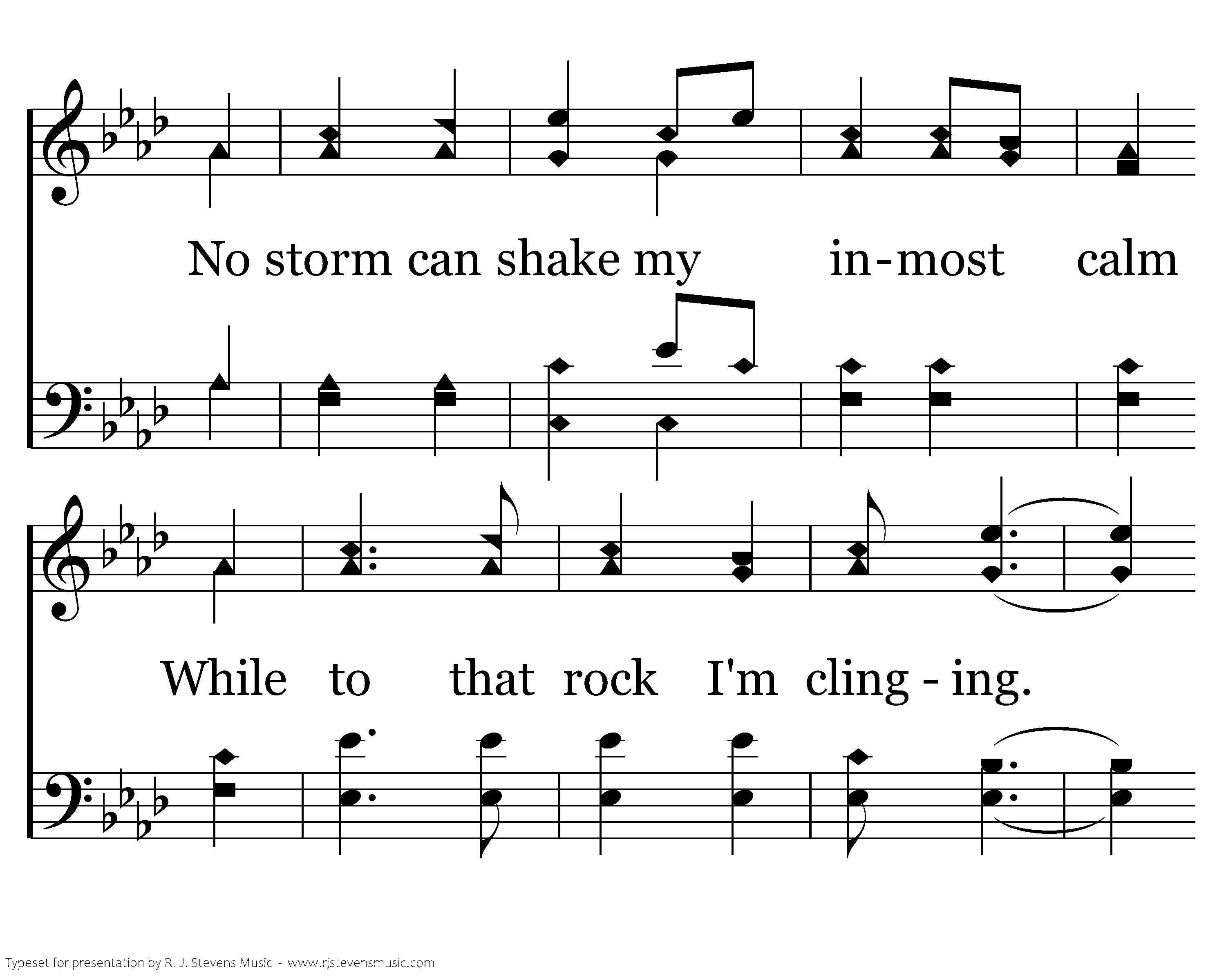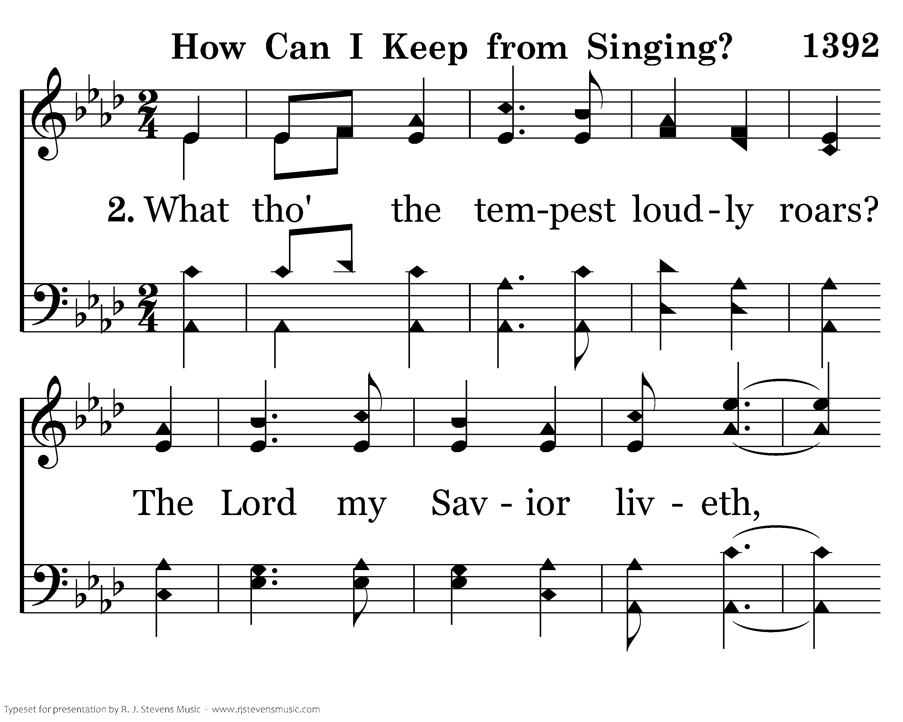 What tho' the tempest loudly roars? The Lord my Savior liveth, And tho' the darkness 'round me close, Songs in the night He giveth. No storm can shake my inmost calm While to that rock I'm clinging. Since Christ is Lord of heav'n and earth, How can I keep from singing?