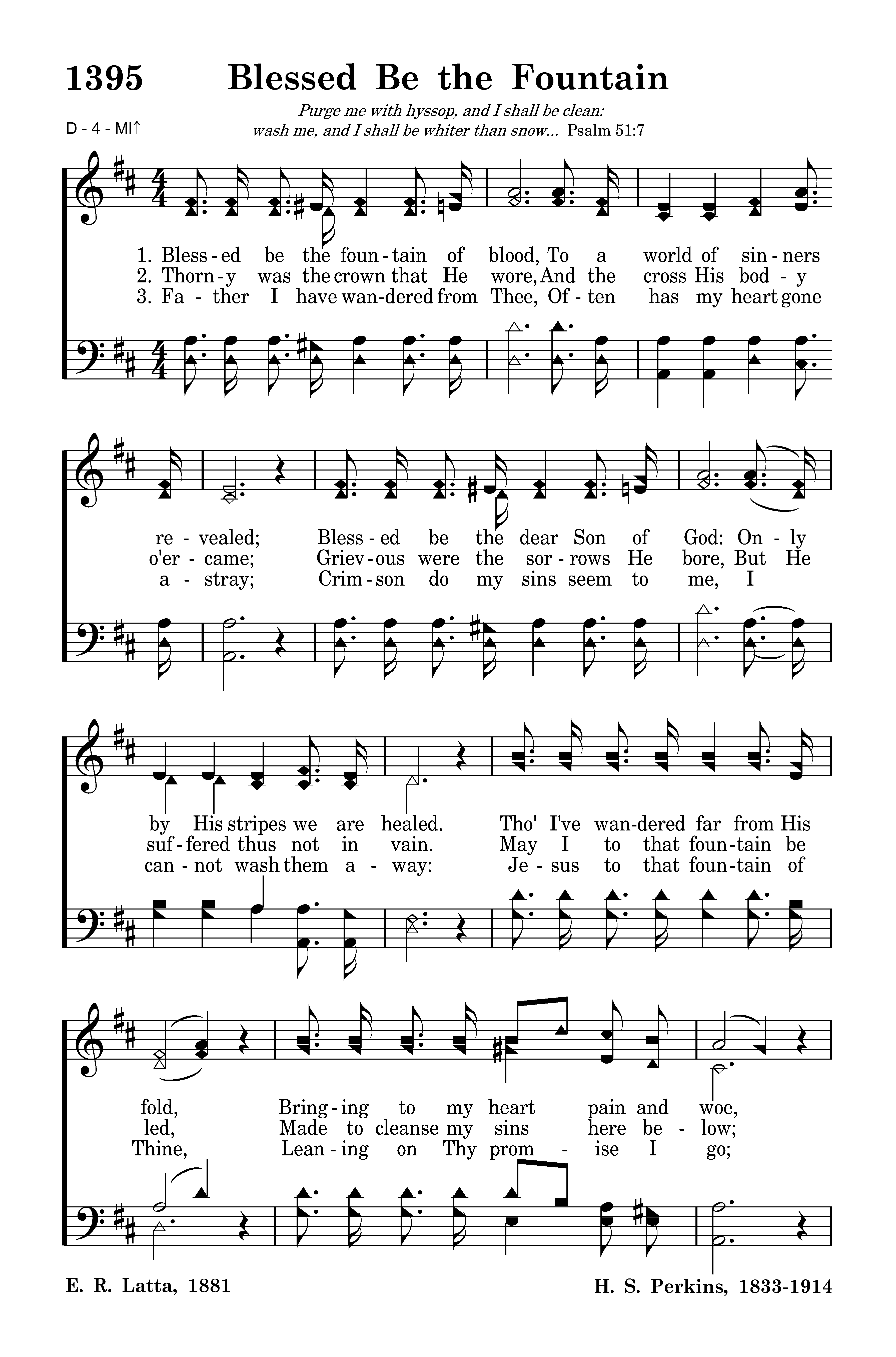 Blessed be the fountain of blood, To a world of sinners revealed; Blessed be the dear Son of God: Only by His stripes we are healed. Tho' I've wandered far from His fold, Bringing to my heart pain and woe, Wash me in the blood of the Lamb.