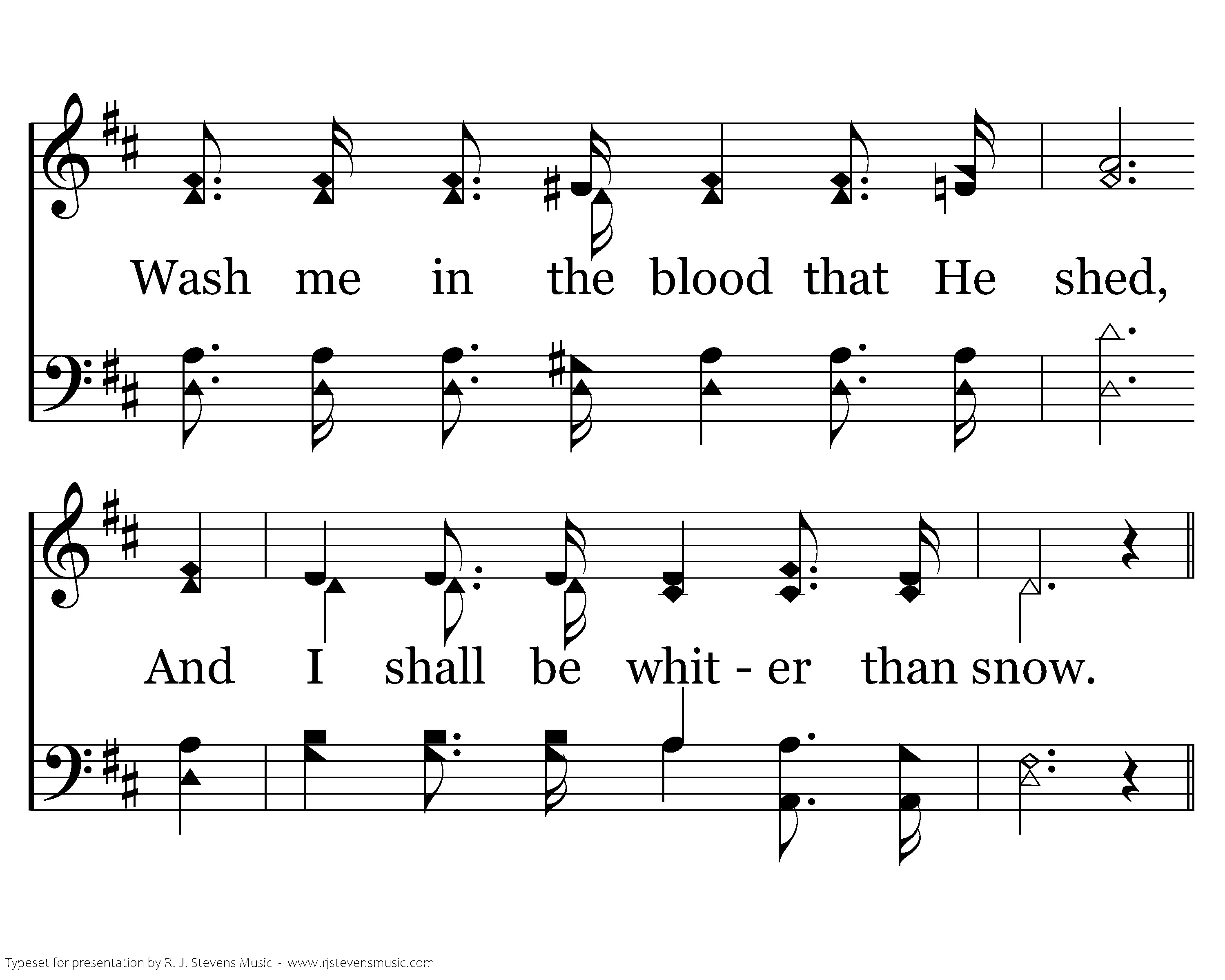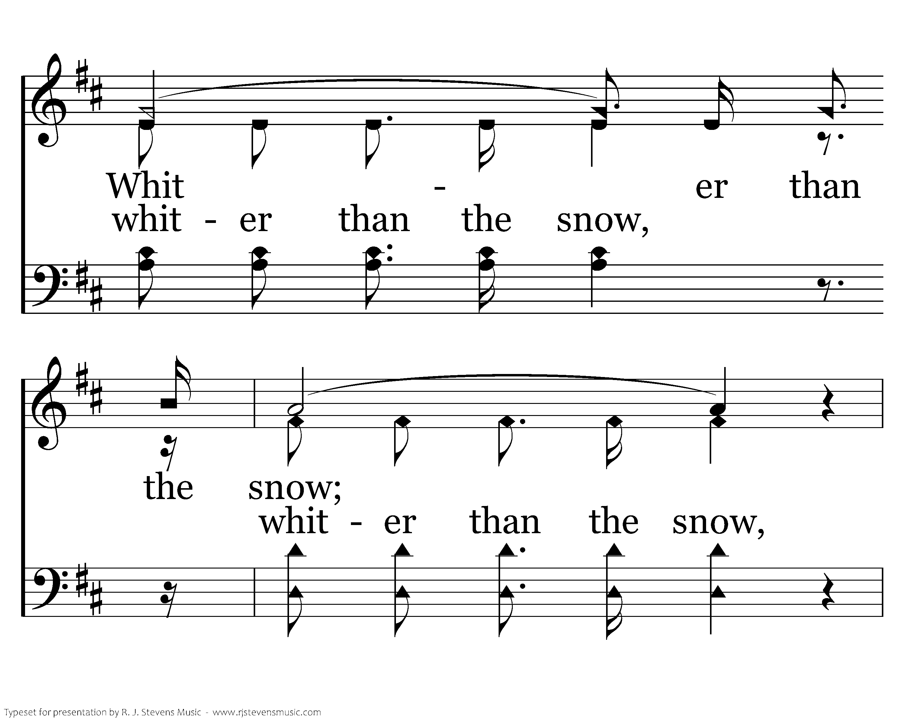 Whiter than the snow, Whiter than the snow; Wash me in the blood of the Lamb, And I shall be whiter than snow.