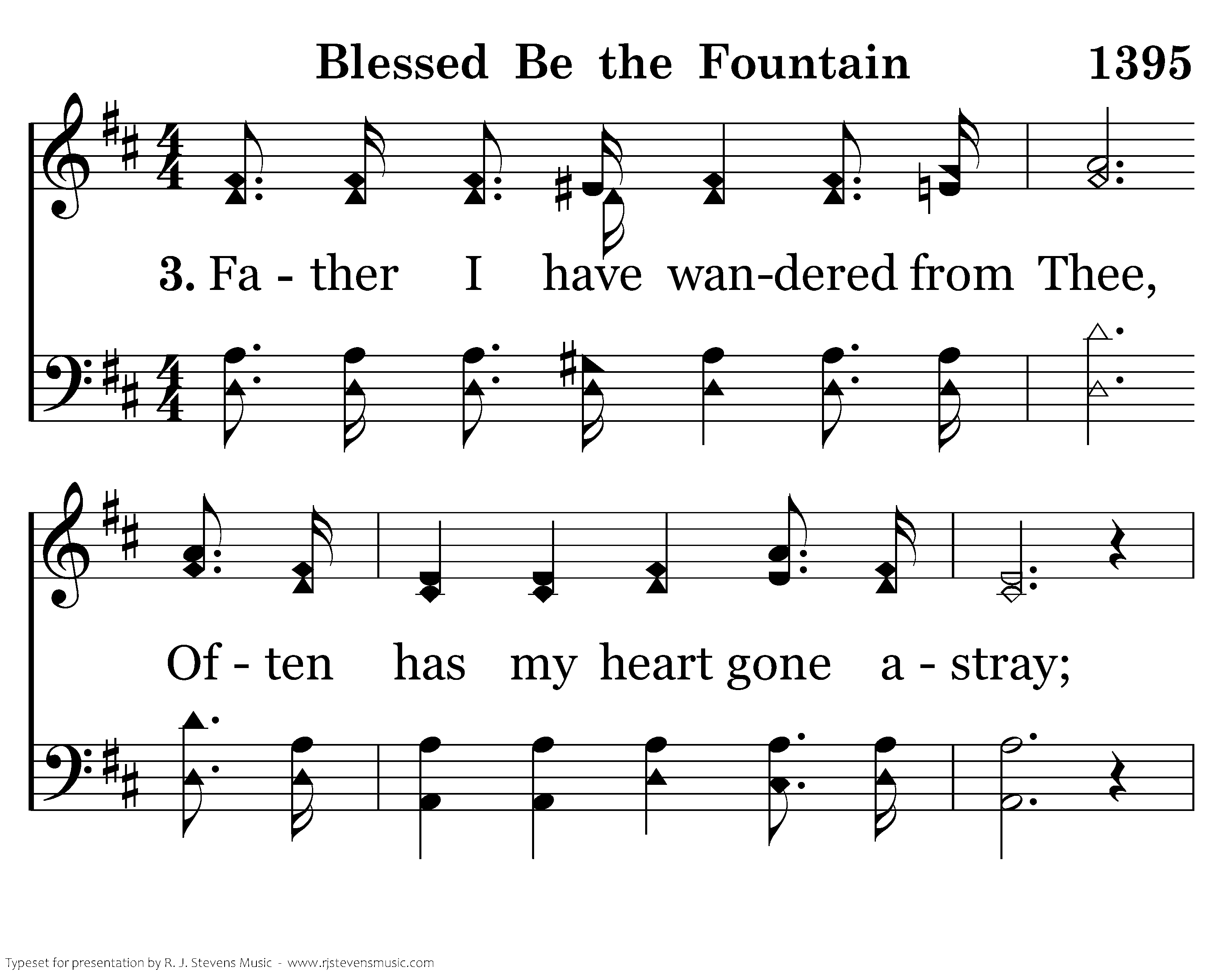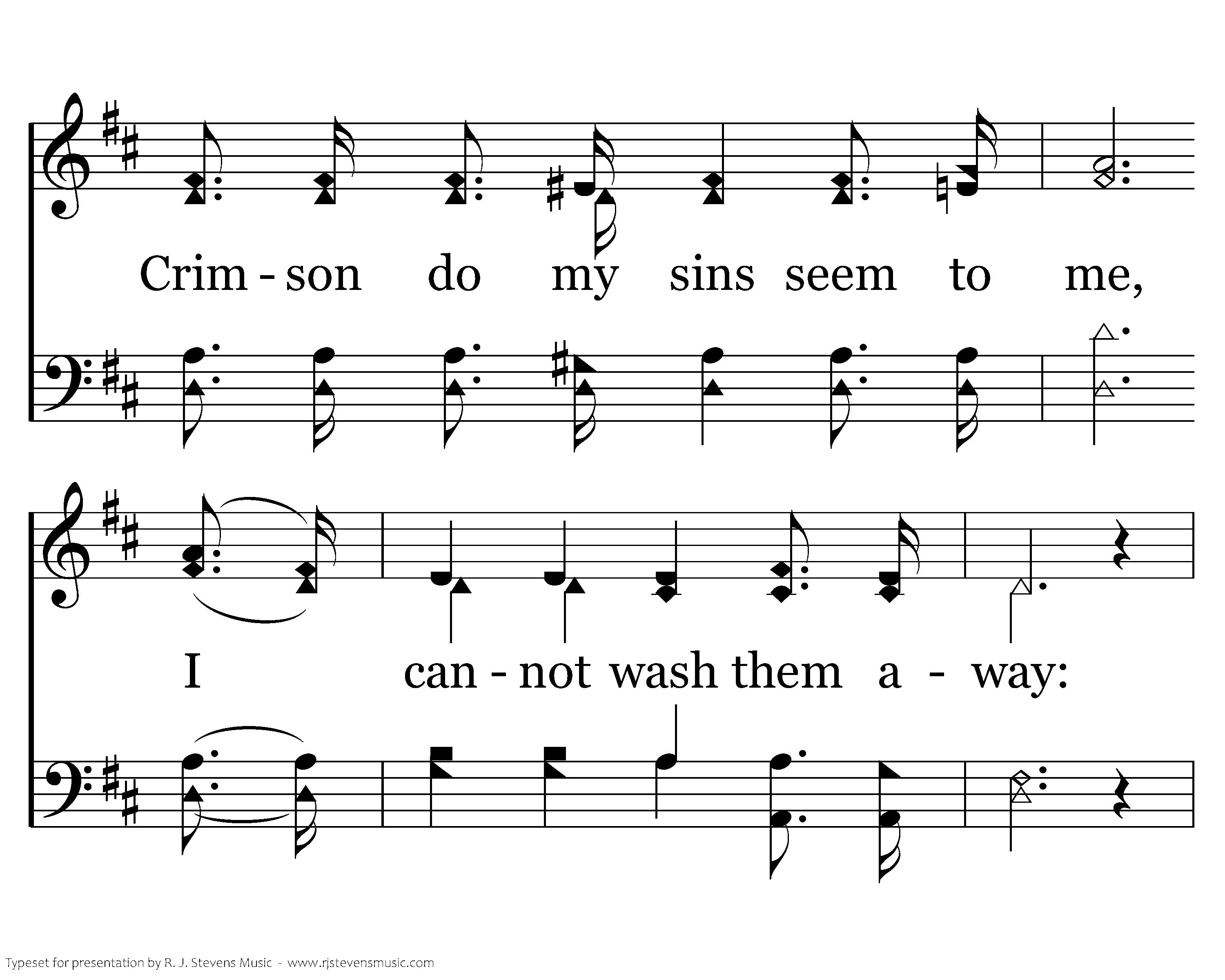 Father I have wandered from Thee, Often has my heart gone astray; Crimson do my sins seem to me, I cannot wash them away: Jesus to that fountain of Thine, Leaning on Thy promise I go; Cleanse me by Thy washing divine,