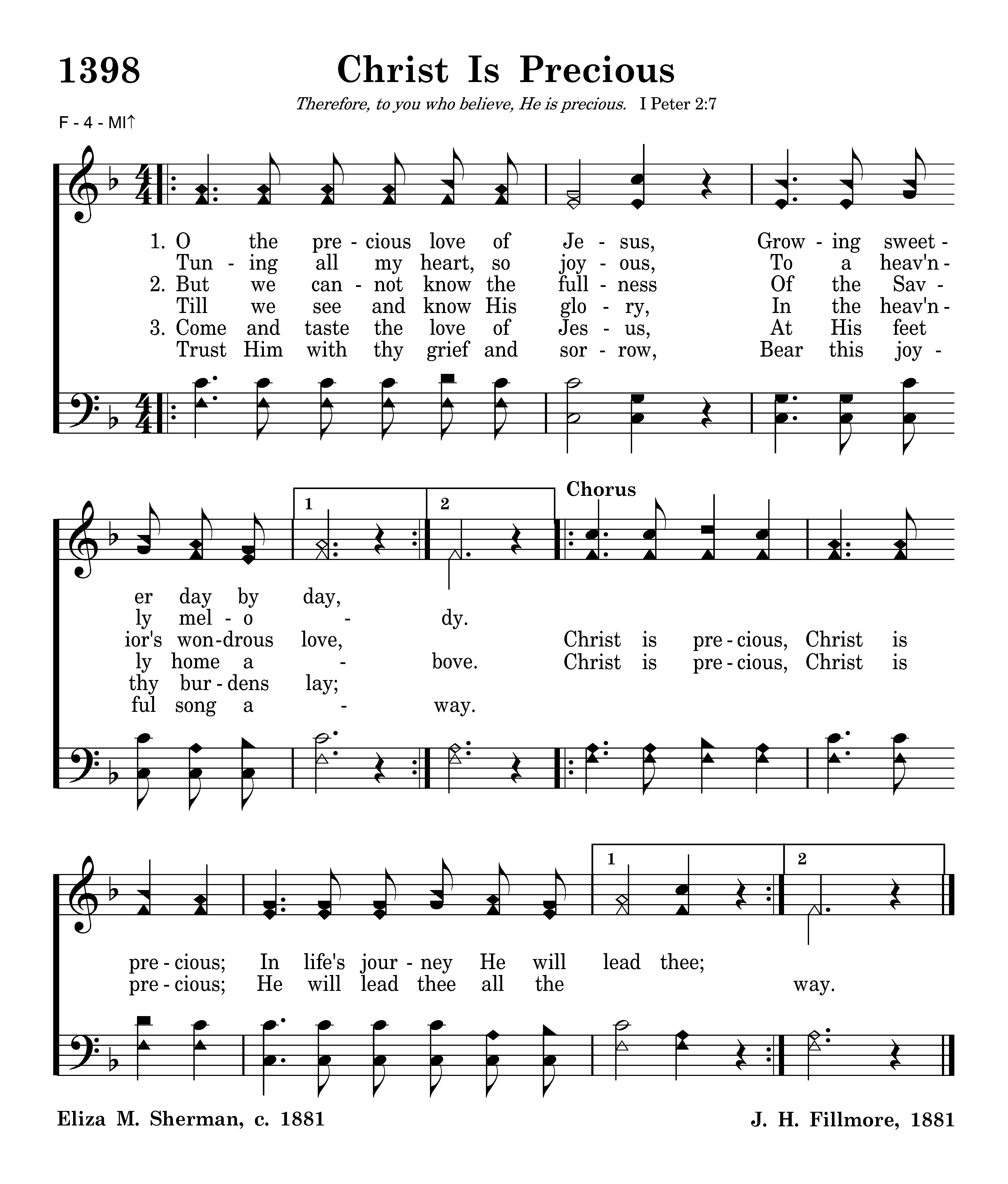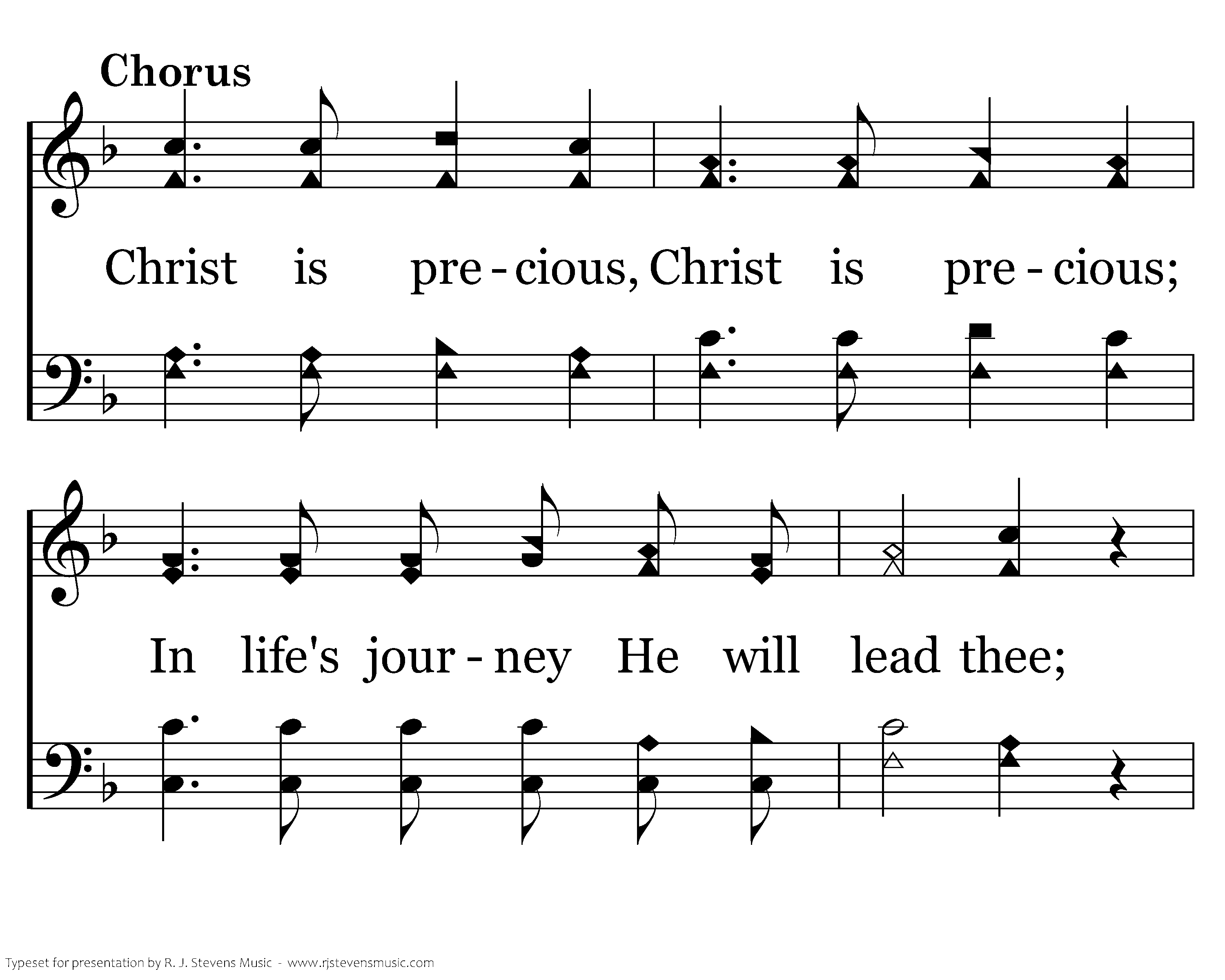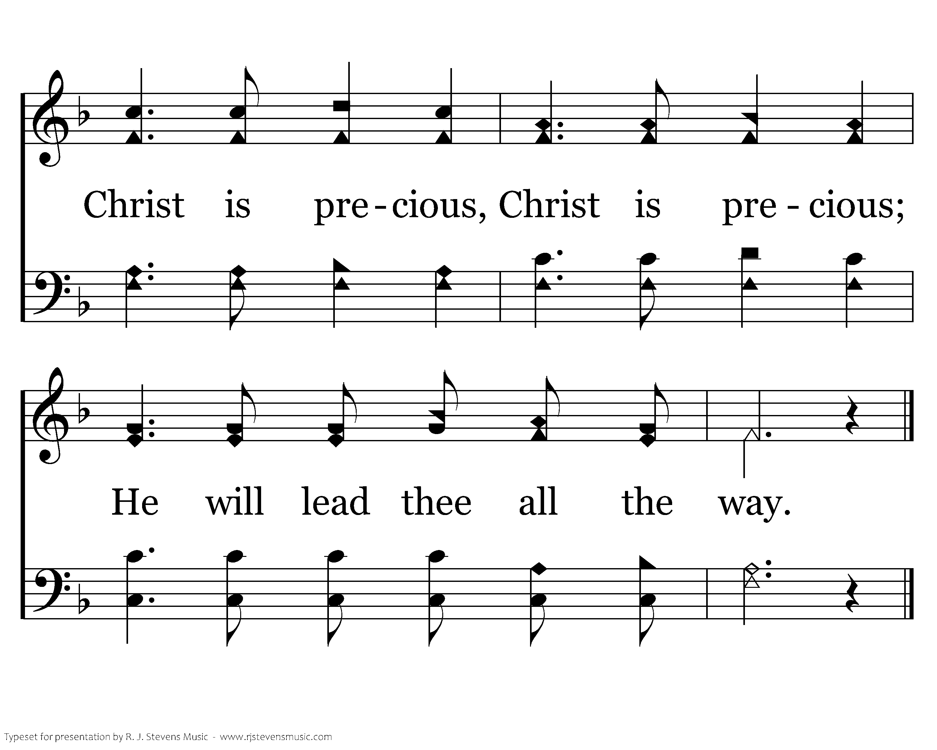 Christ is precious, Christ is precious; In life's journey He will lead thee; Christ is precious, Christ is precious; He will lead thee all the way.