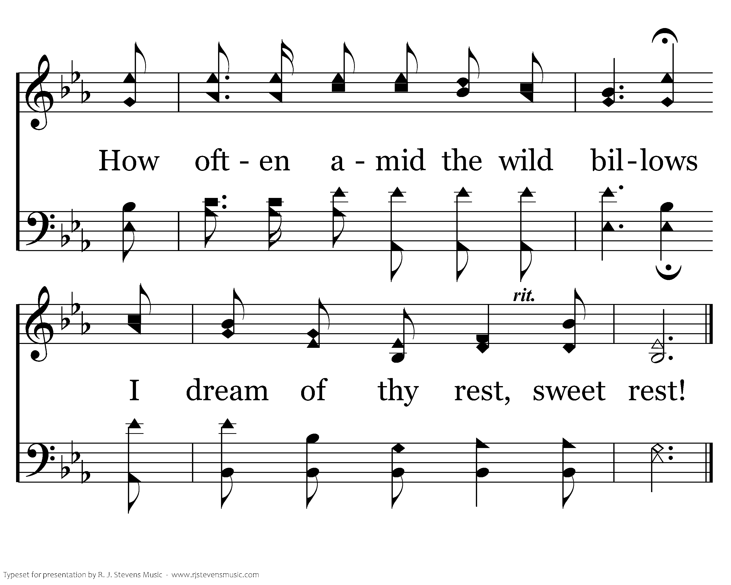 Beautiful valley of Eden, Home of the pure and blest, How often amid the wild billows I dream of thy rest, sweet rest!