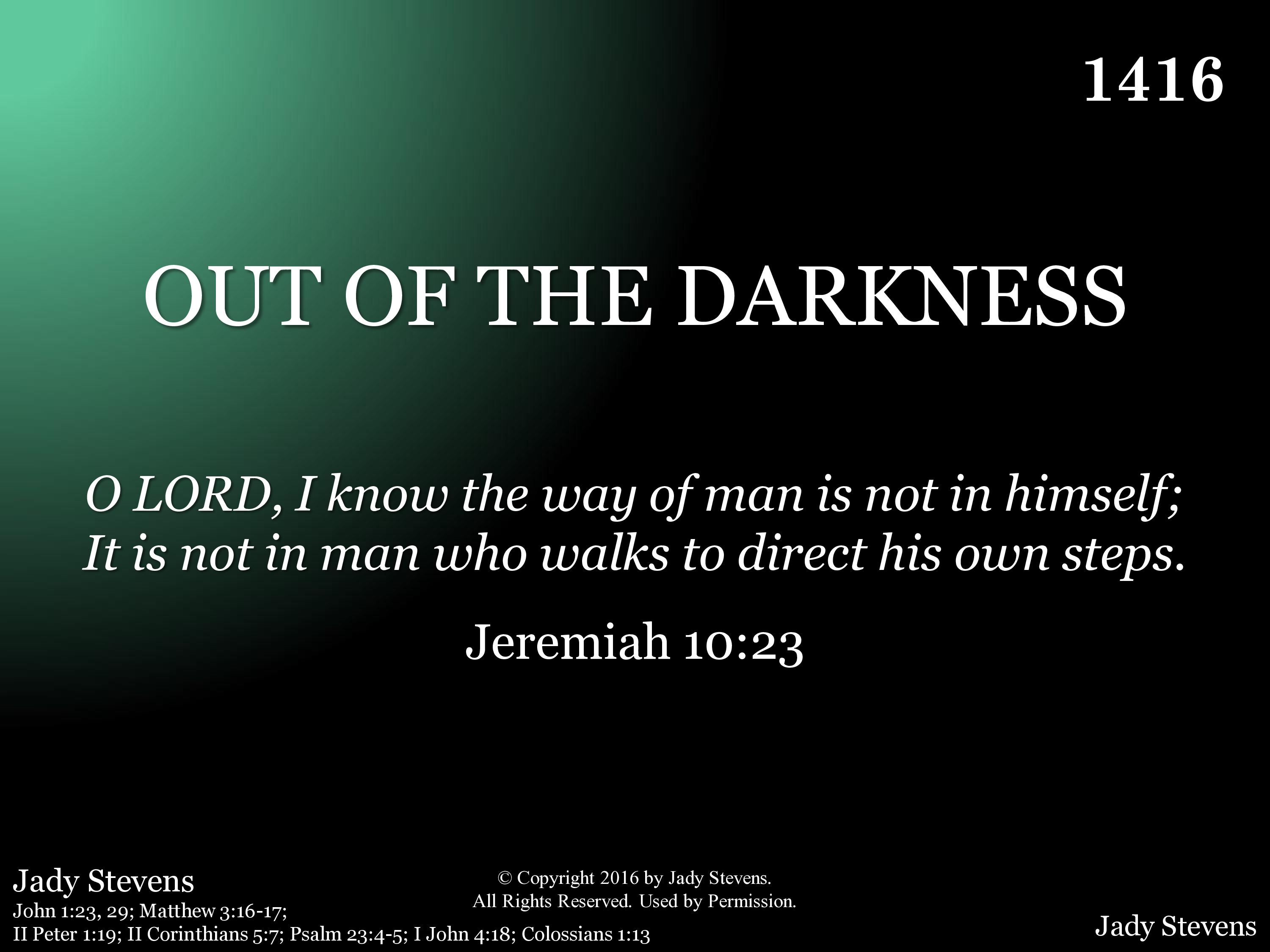 In the wilderness, wand'ring, I was swallowed by night. Ev'ry step made me stumble. I was walking by sight. With no map to direct me, Nor a compass to guide, I fled on thru the darkness, Led along by my pride.