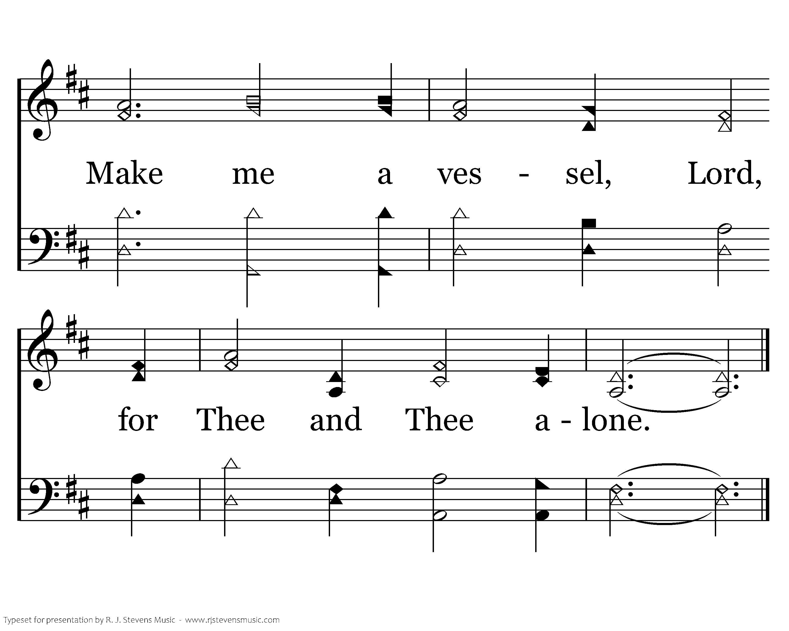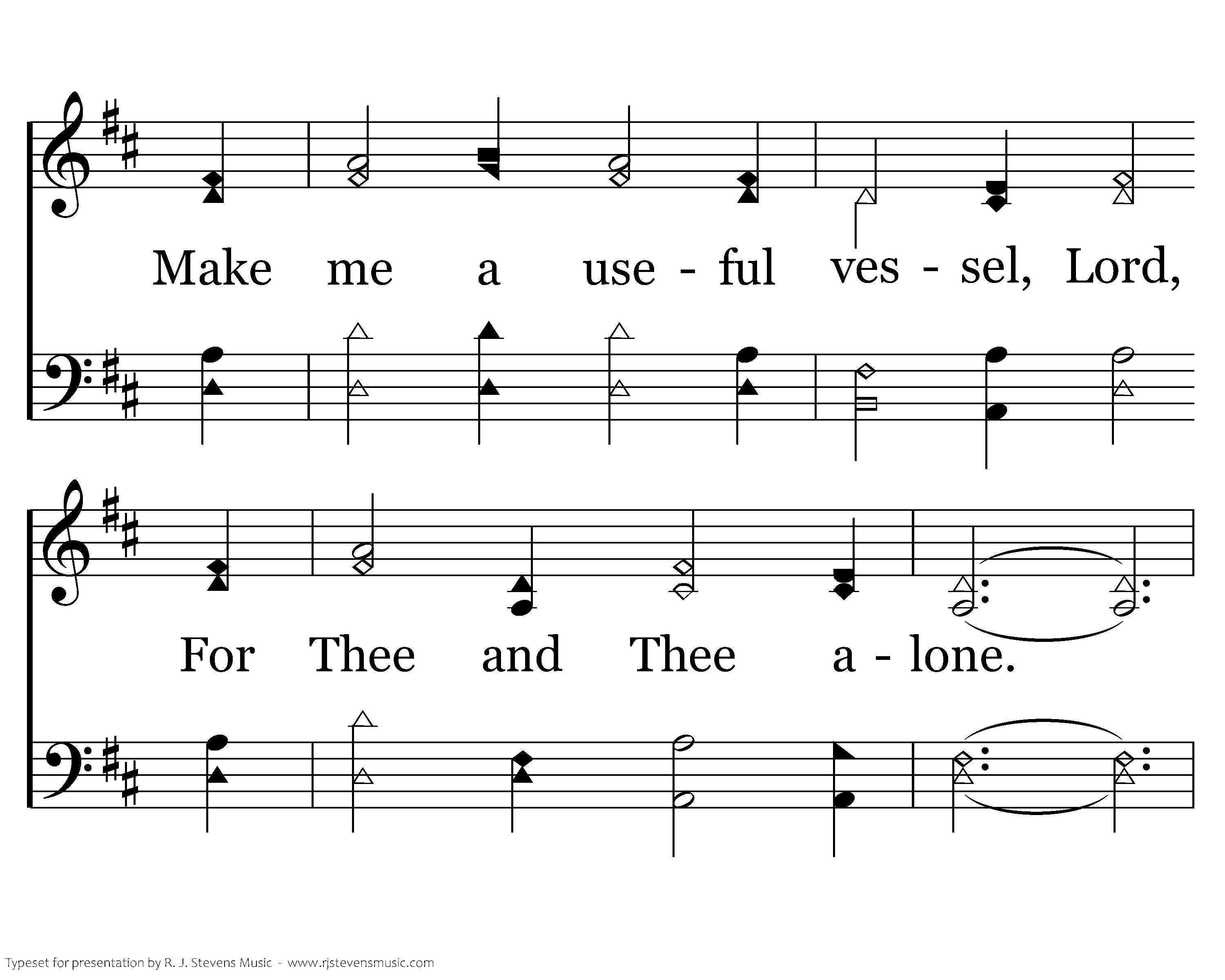 Take me into Thy hands, O Lord, And shape me for Thine own. Make me a useful vessel, Lord, For Thee and Thee alone. Make me a vessel, Lord, for Thee and Thee alone.