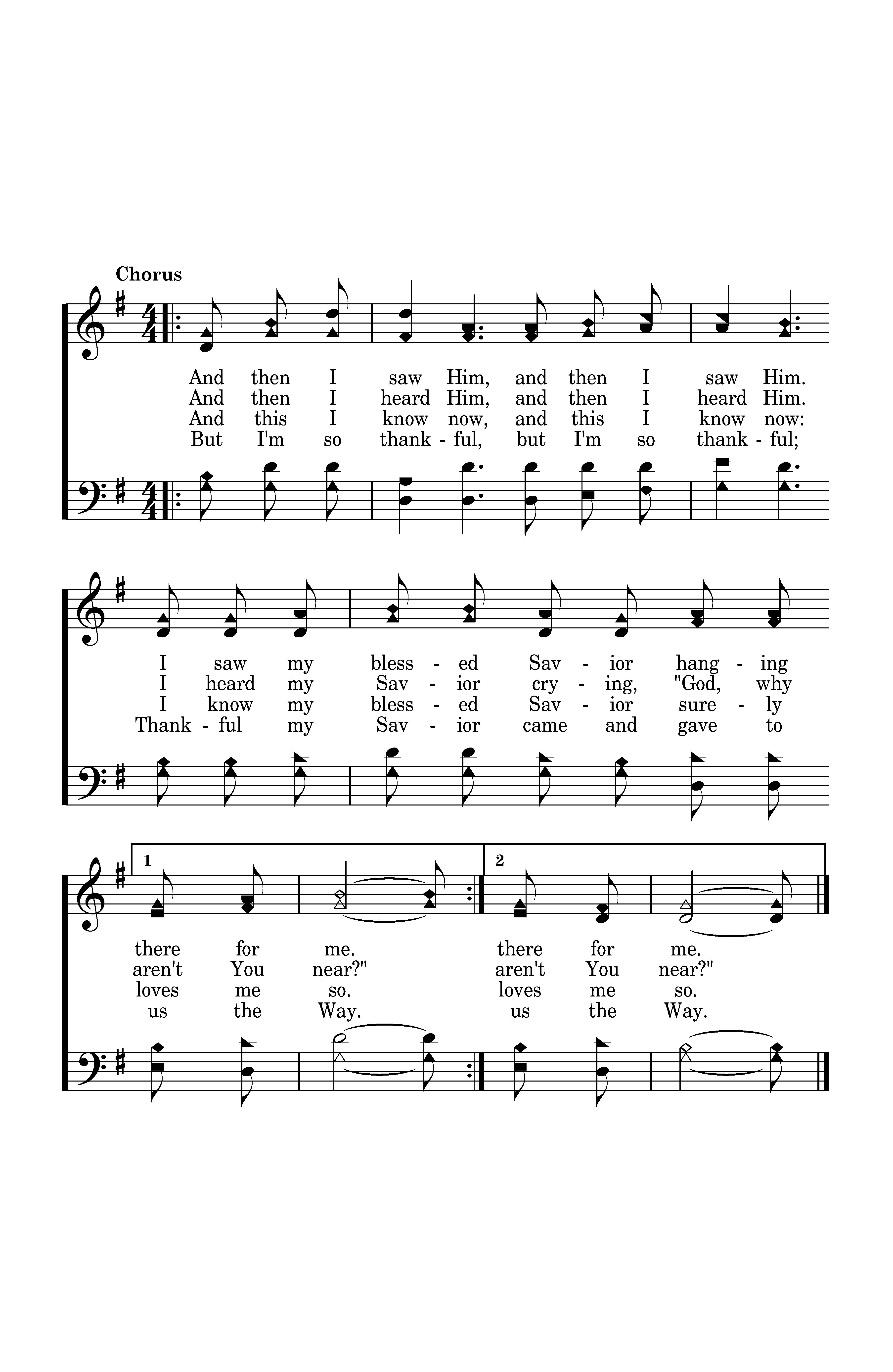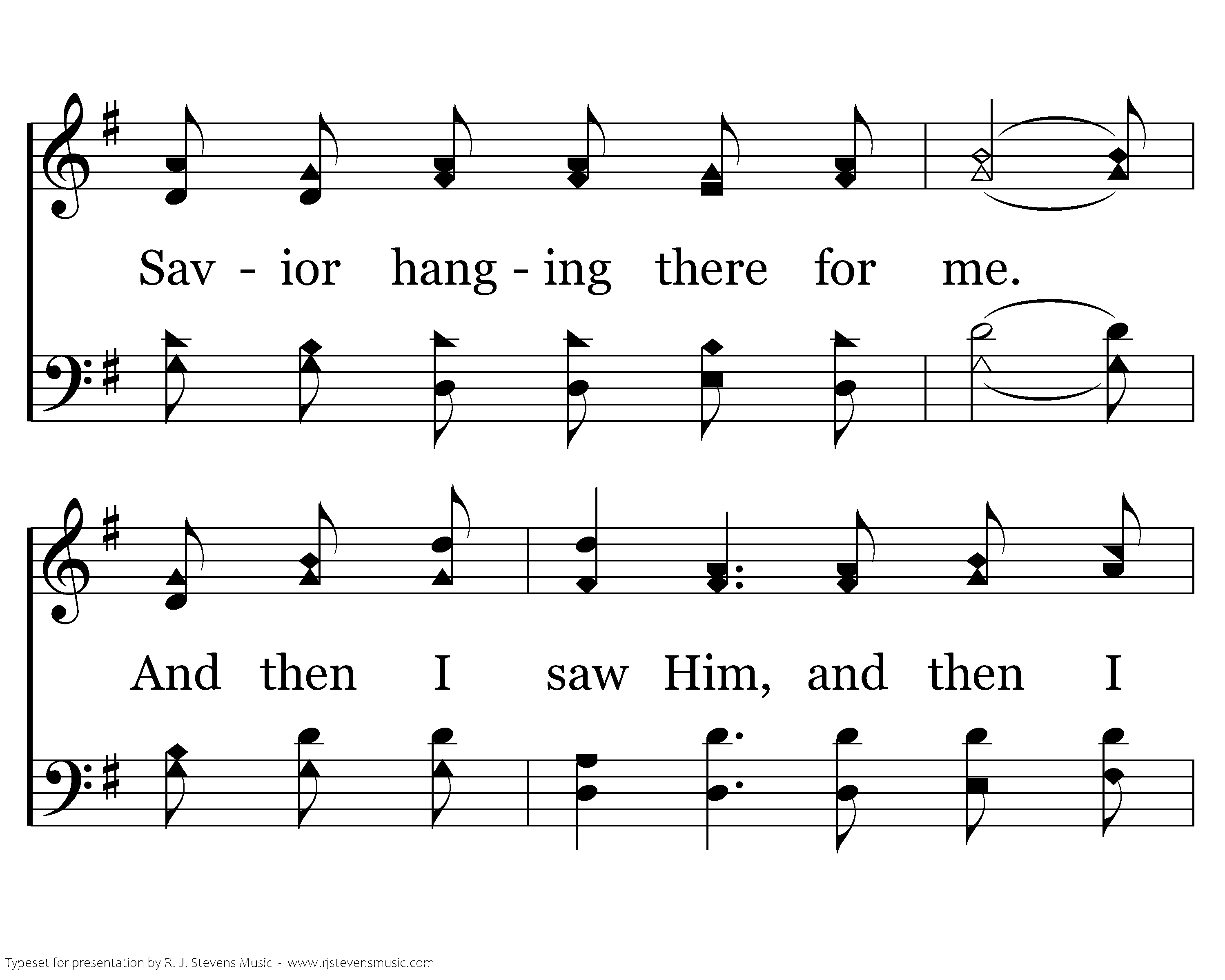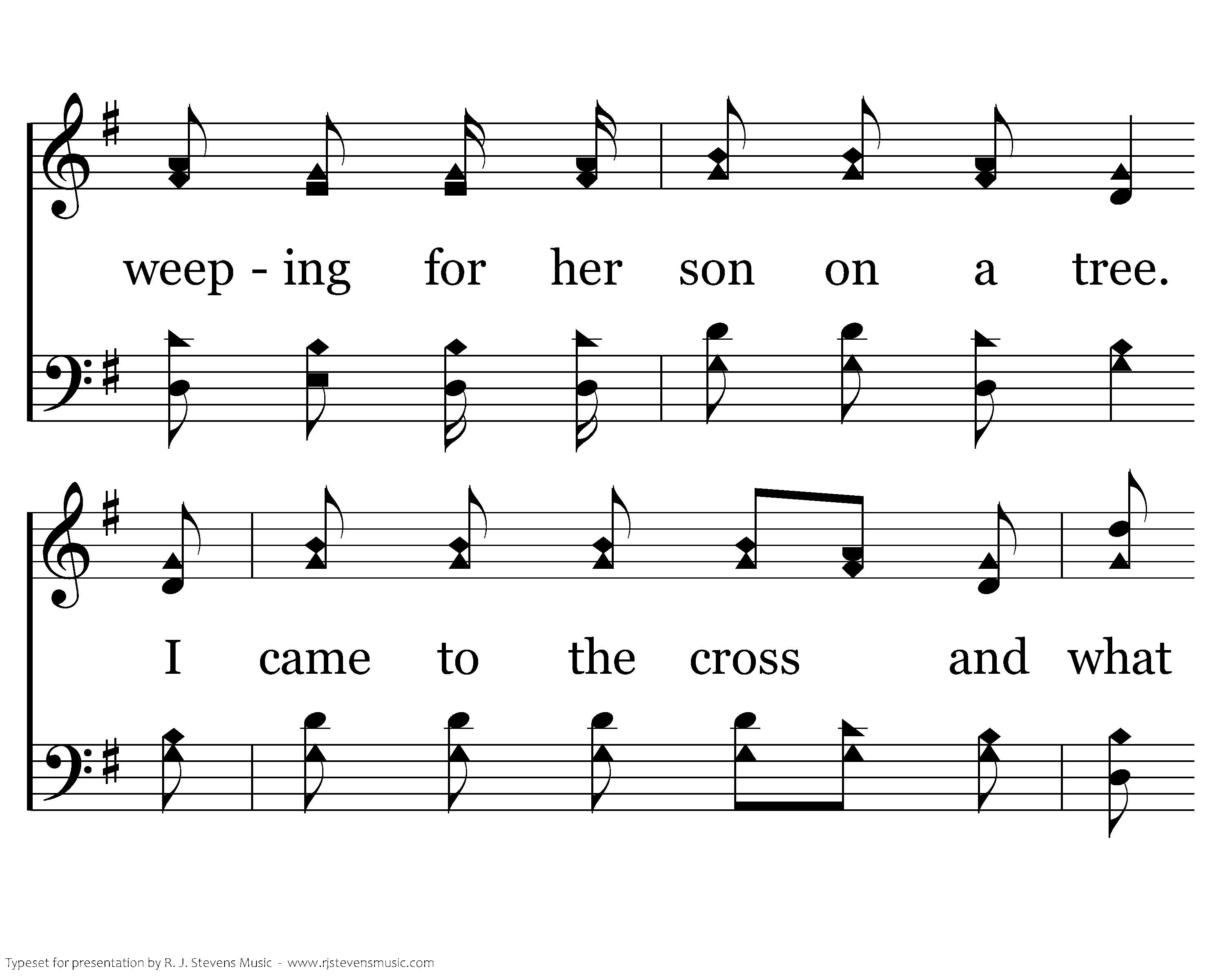 I came to the cross and what did I see? A mother there weeping for her son on a tree. I came to the cross and what did I see? A soldier there bowing who knew this was He. And then I saw Him, and then I saw Him. I saw my blessed Savior hanging there for me.
