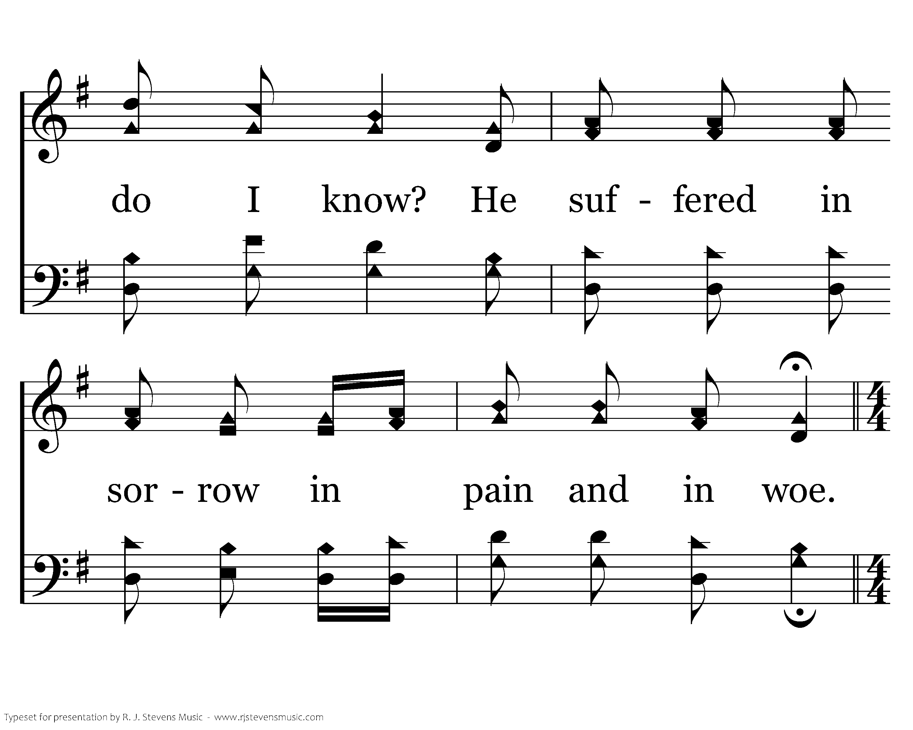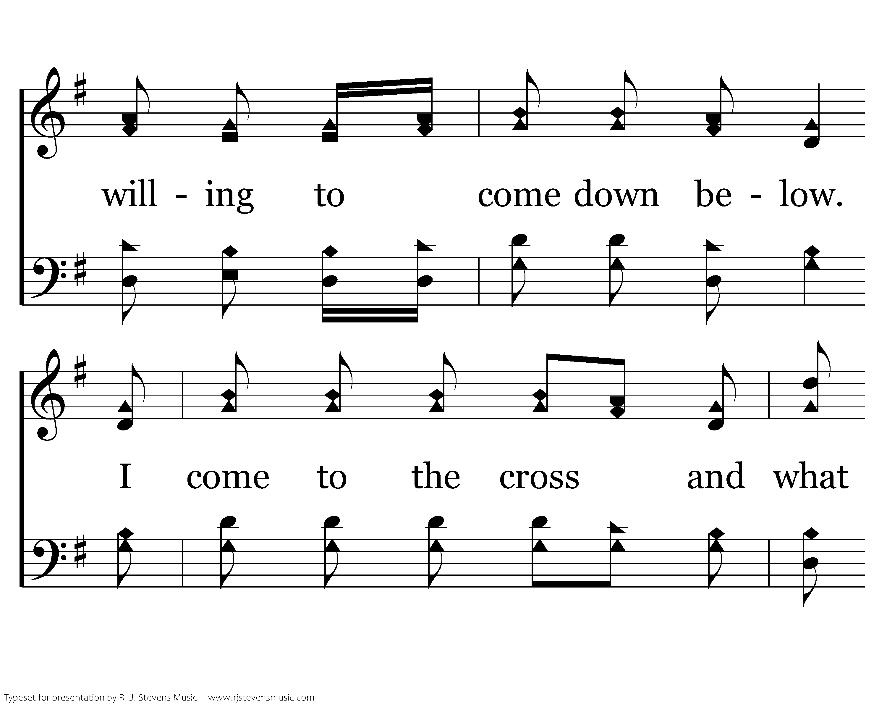 I come to the cross and what do I know? That Jesus was willing to come down below. I come to the cross and what do I know? He suffered in sorrow in pain and in woe. And this I know now, and this I know now: I know my blessed Savior surely loves me so.