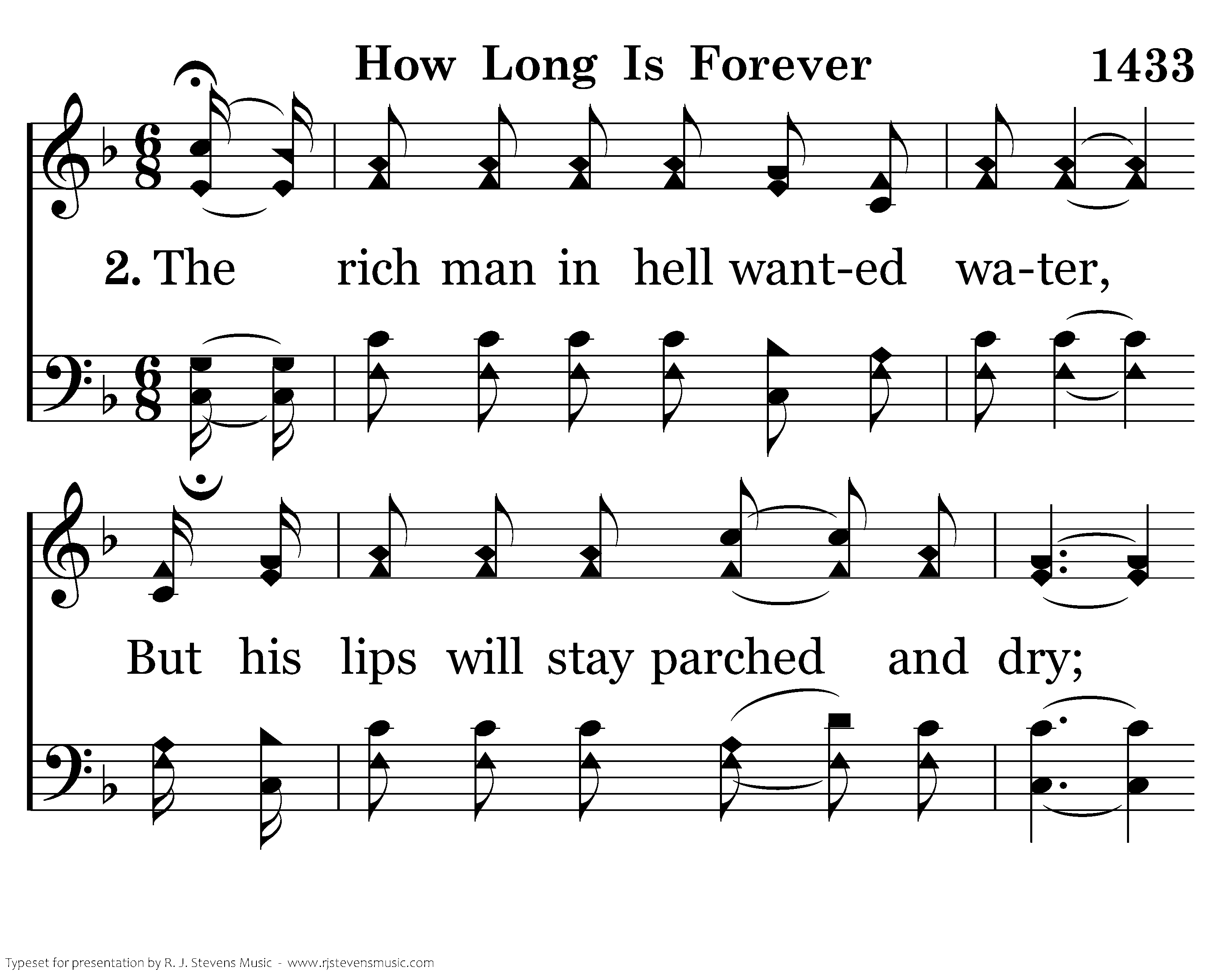 The rich man in hell wanted water, But his lips will stay parched and dry; He could have obeyed while here on earth, But he let his chances pass by.
