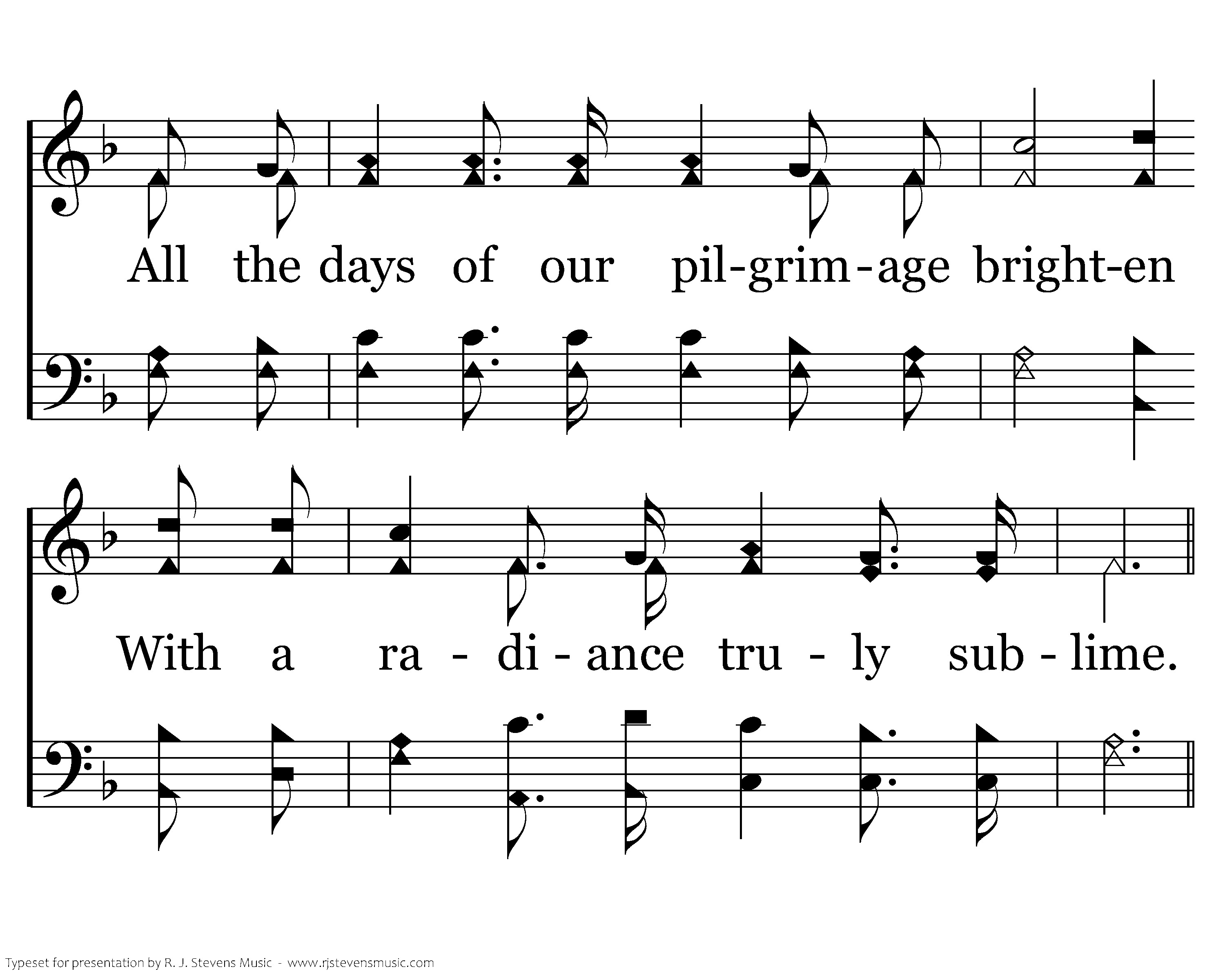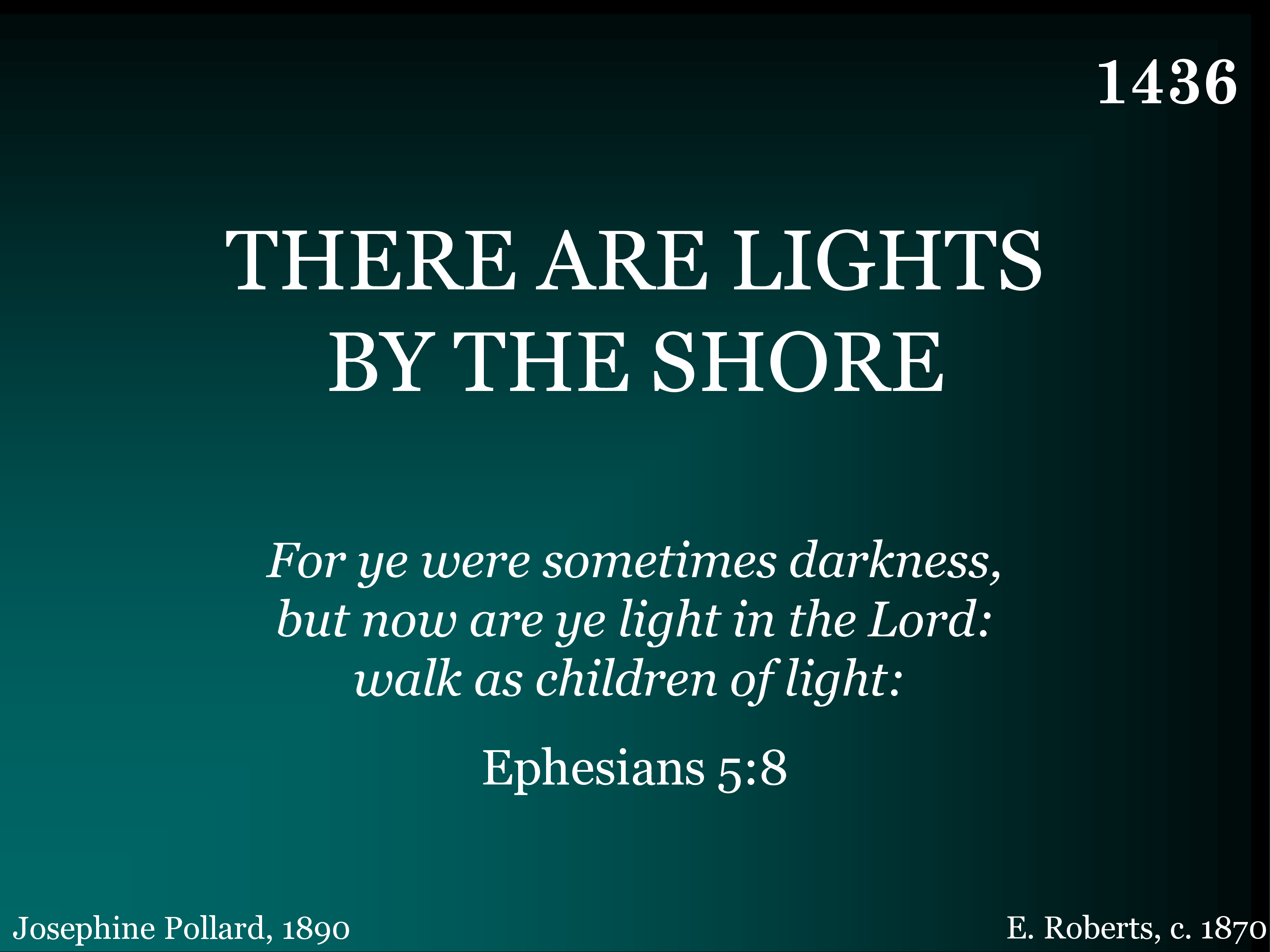 There are lights by the shore as we journey, As we float down the river of time; All the days of our pilgrimage brighten With a radiance truly sublime.