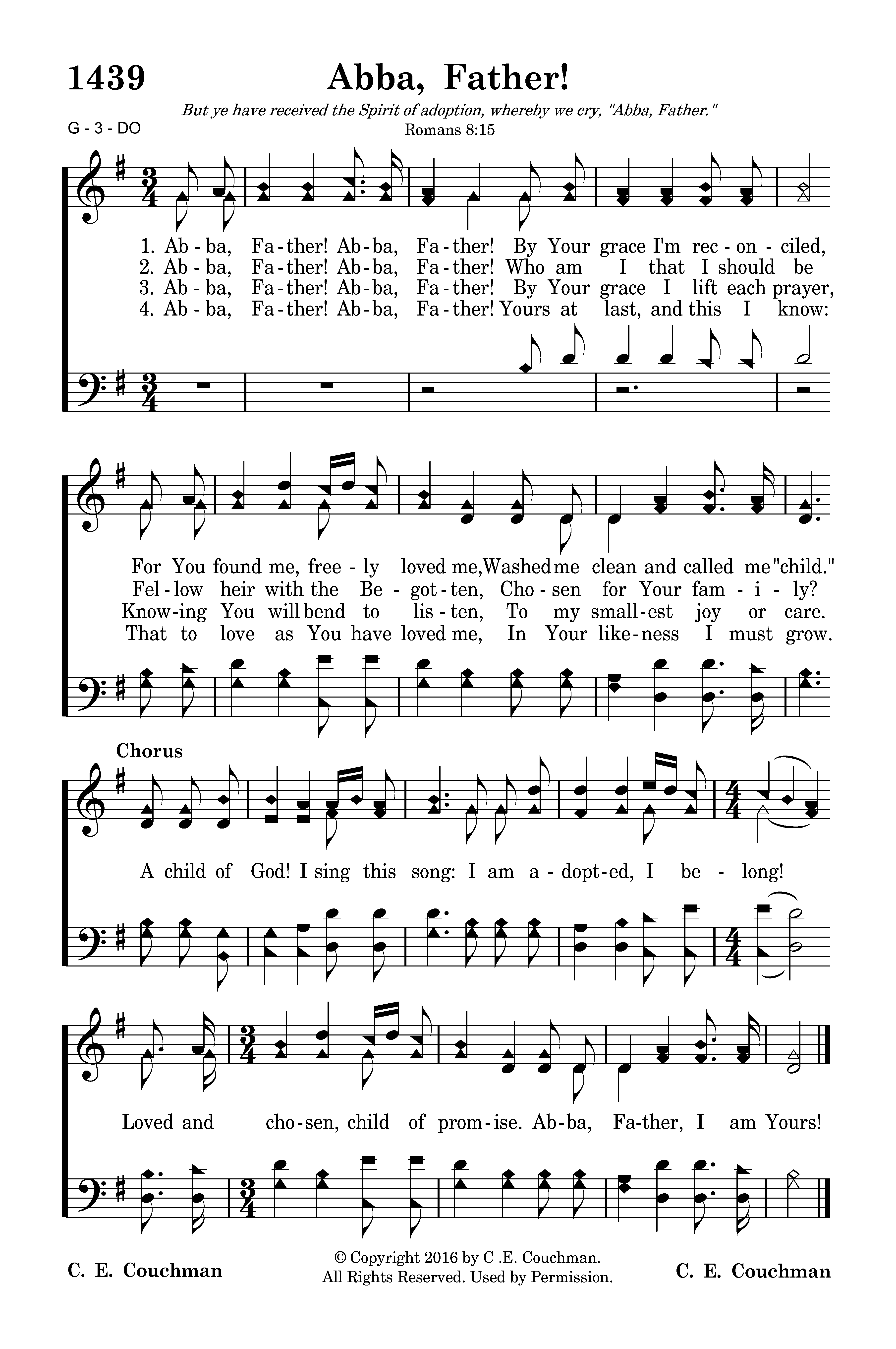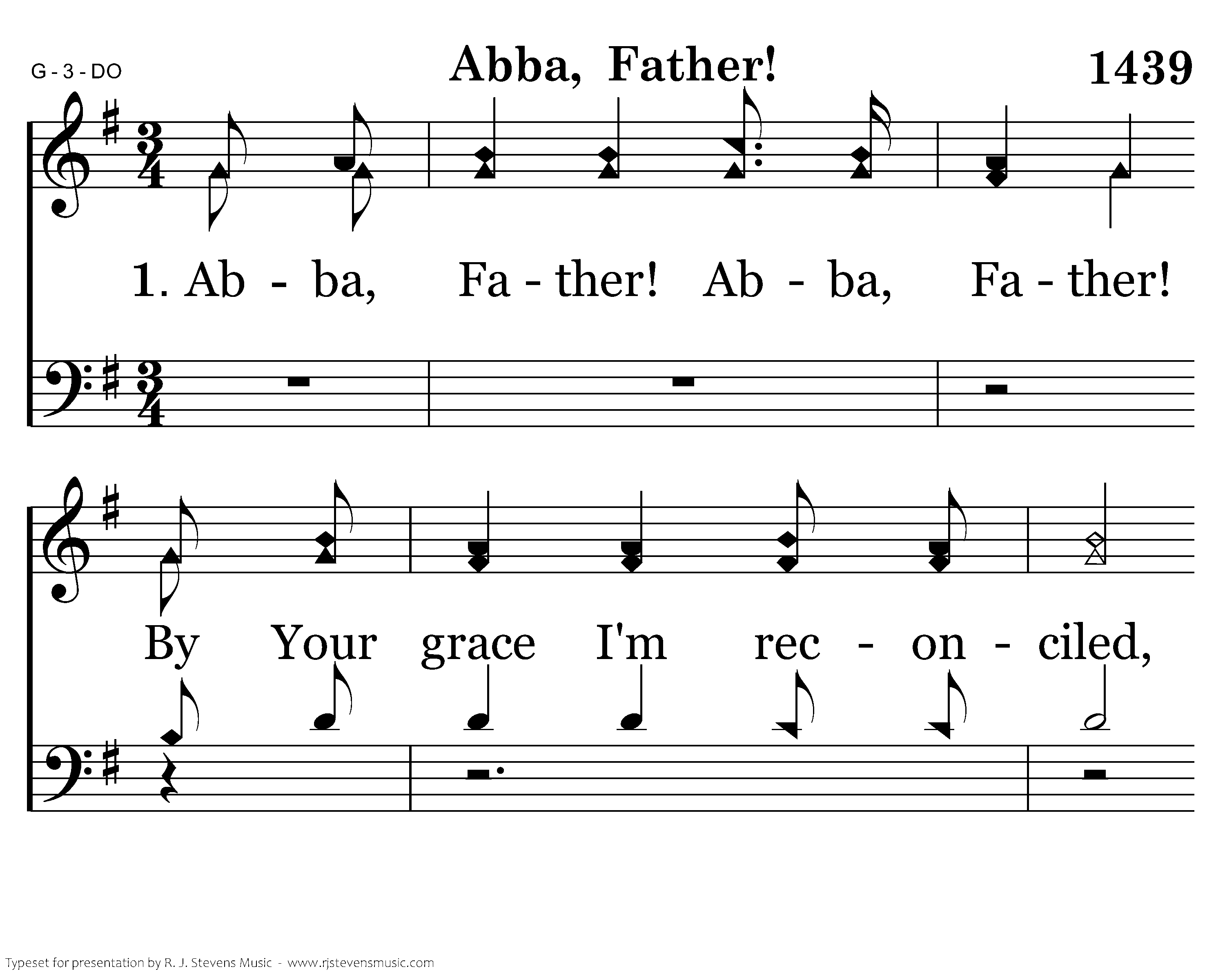 Abba, Father! Abba, Father! By Your grace I'm reconciled, For You found me, freely loved me, Washed me clean and called me "child."