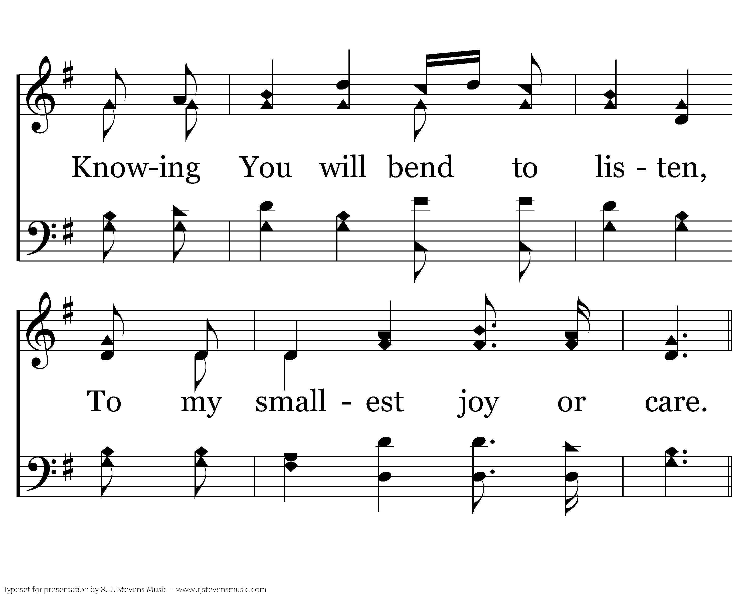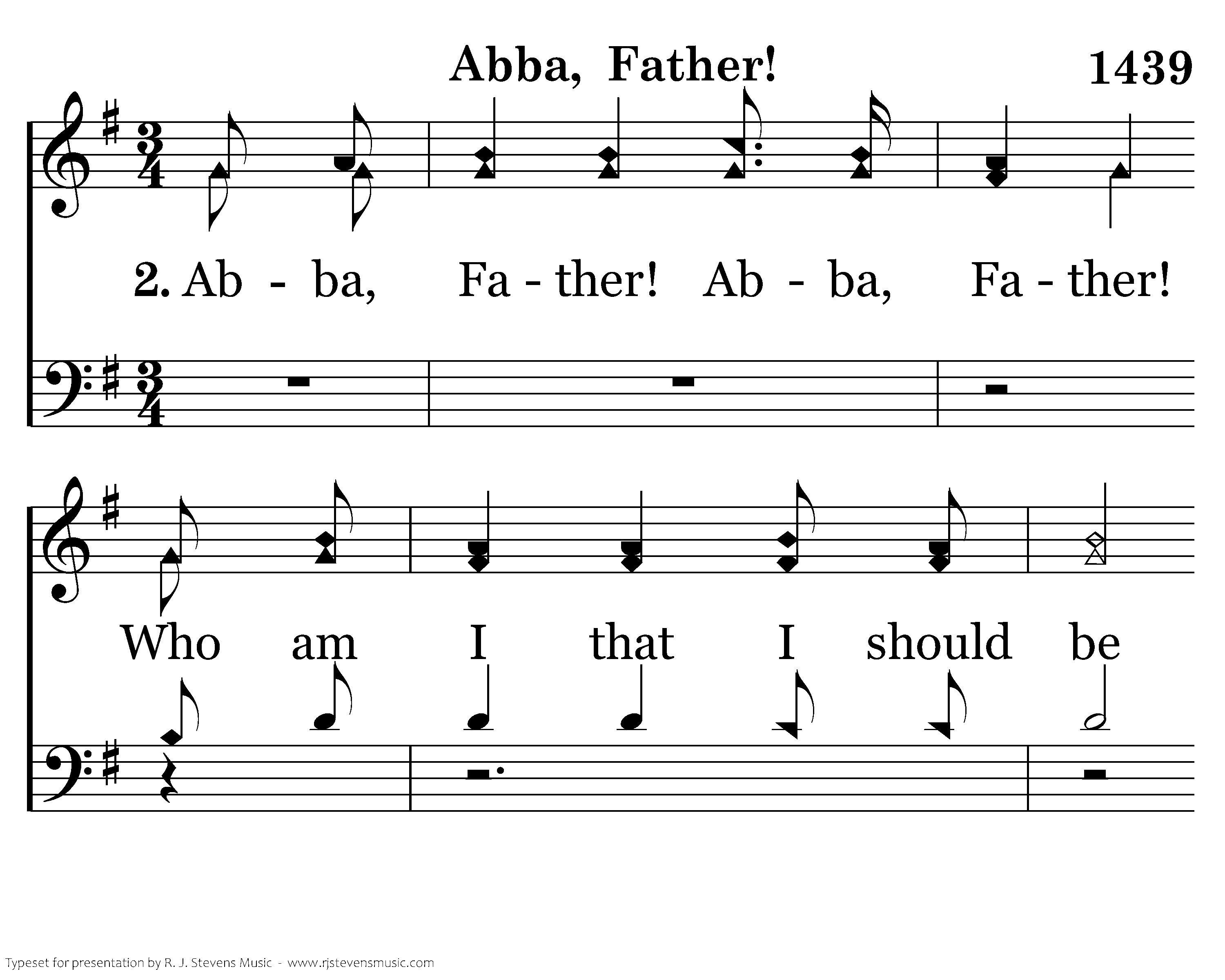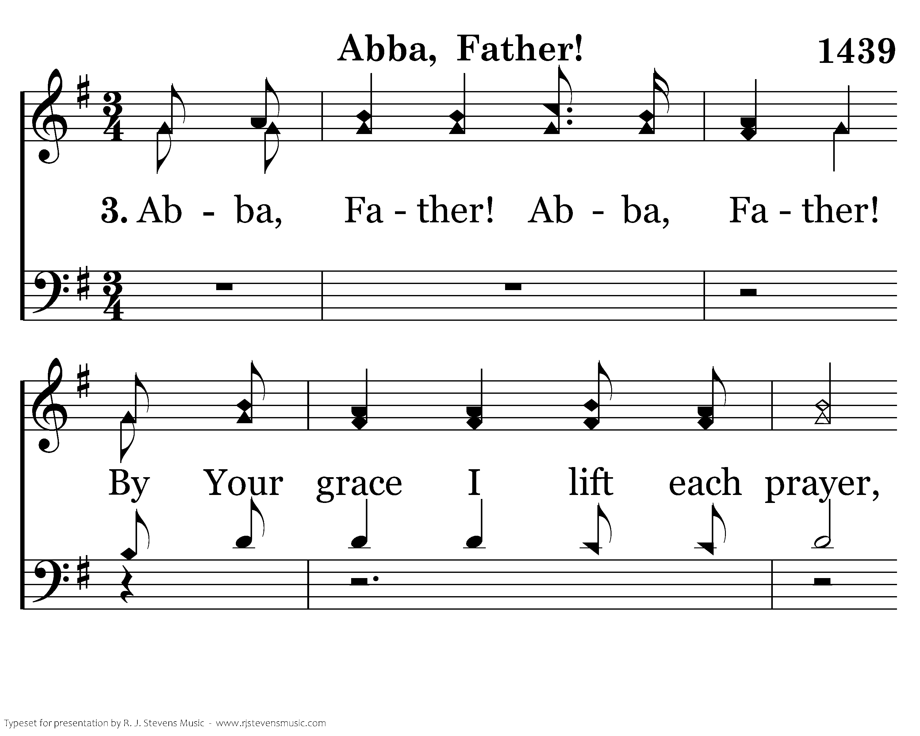 Abba, Father! Abba, Father! By Your grace I lift each prayer, Knowing You will bend to listen, To my smallest joy or care.