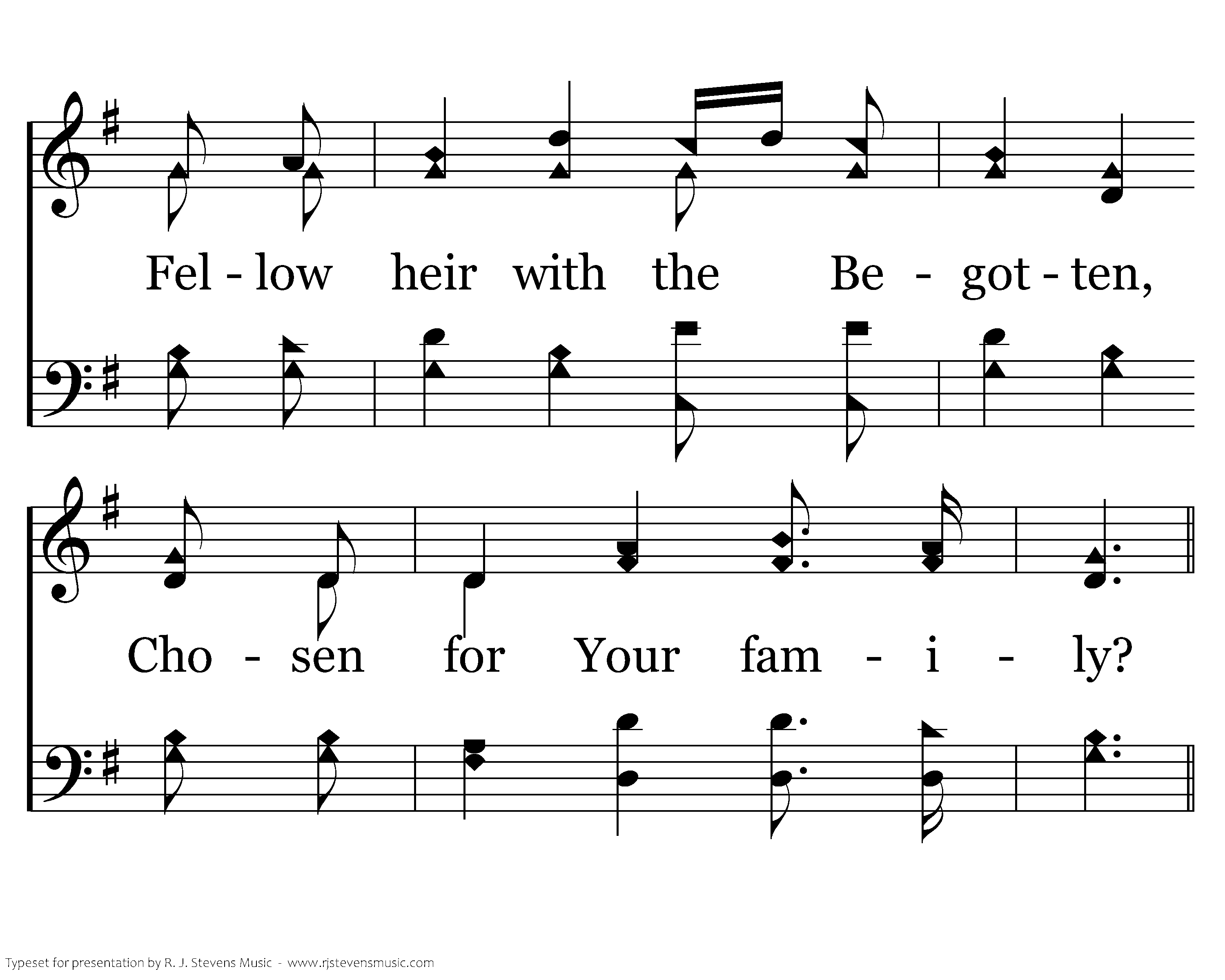 Abba, Father! Abba, Father! Who am I that I should be Fellow heir with the Begotten, Chosen for Your family?