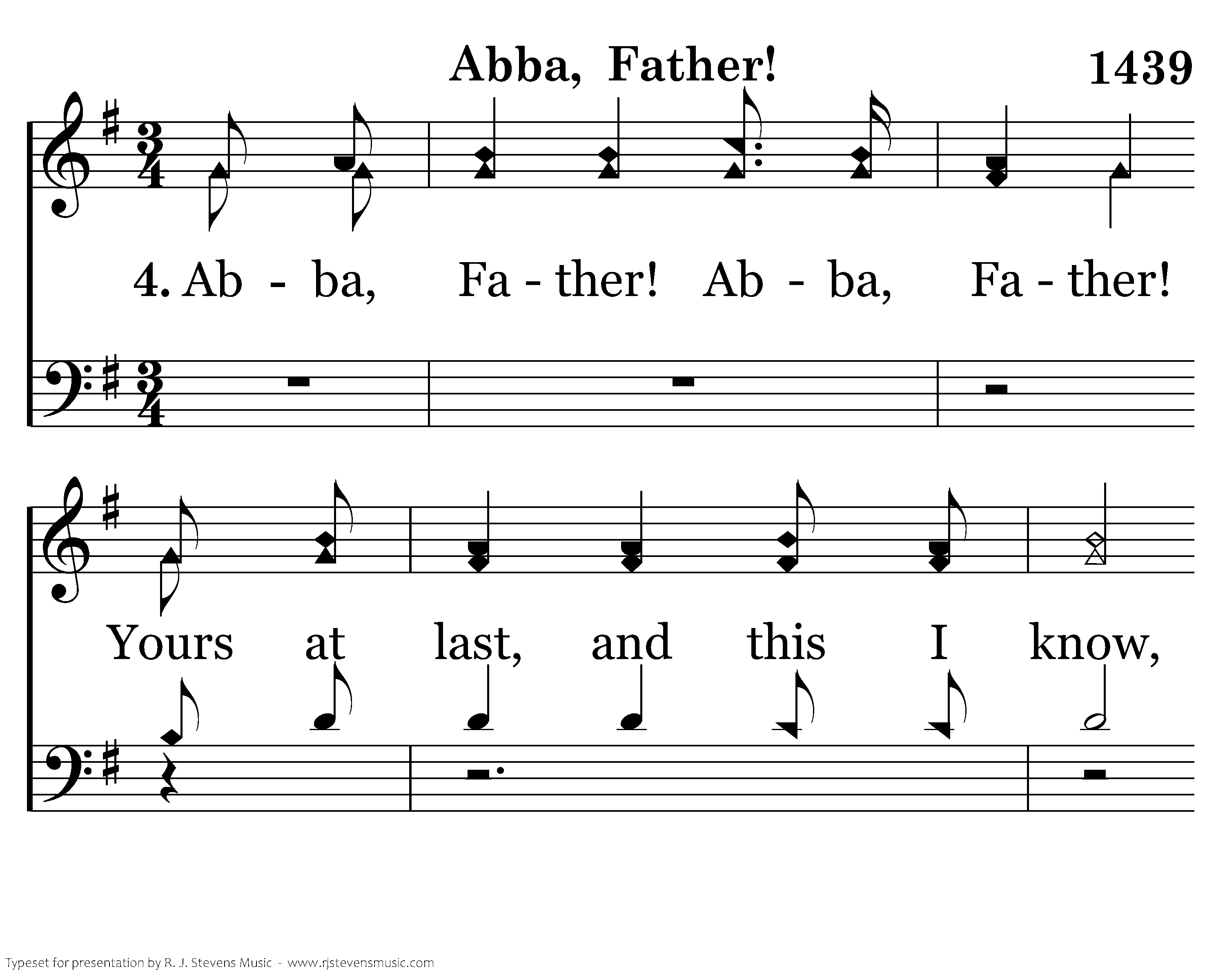 Abba, Father! Abba, Father! Yours at last, and this I know: That to love as You have loved me, In Your likeness I must grow.