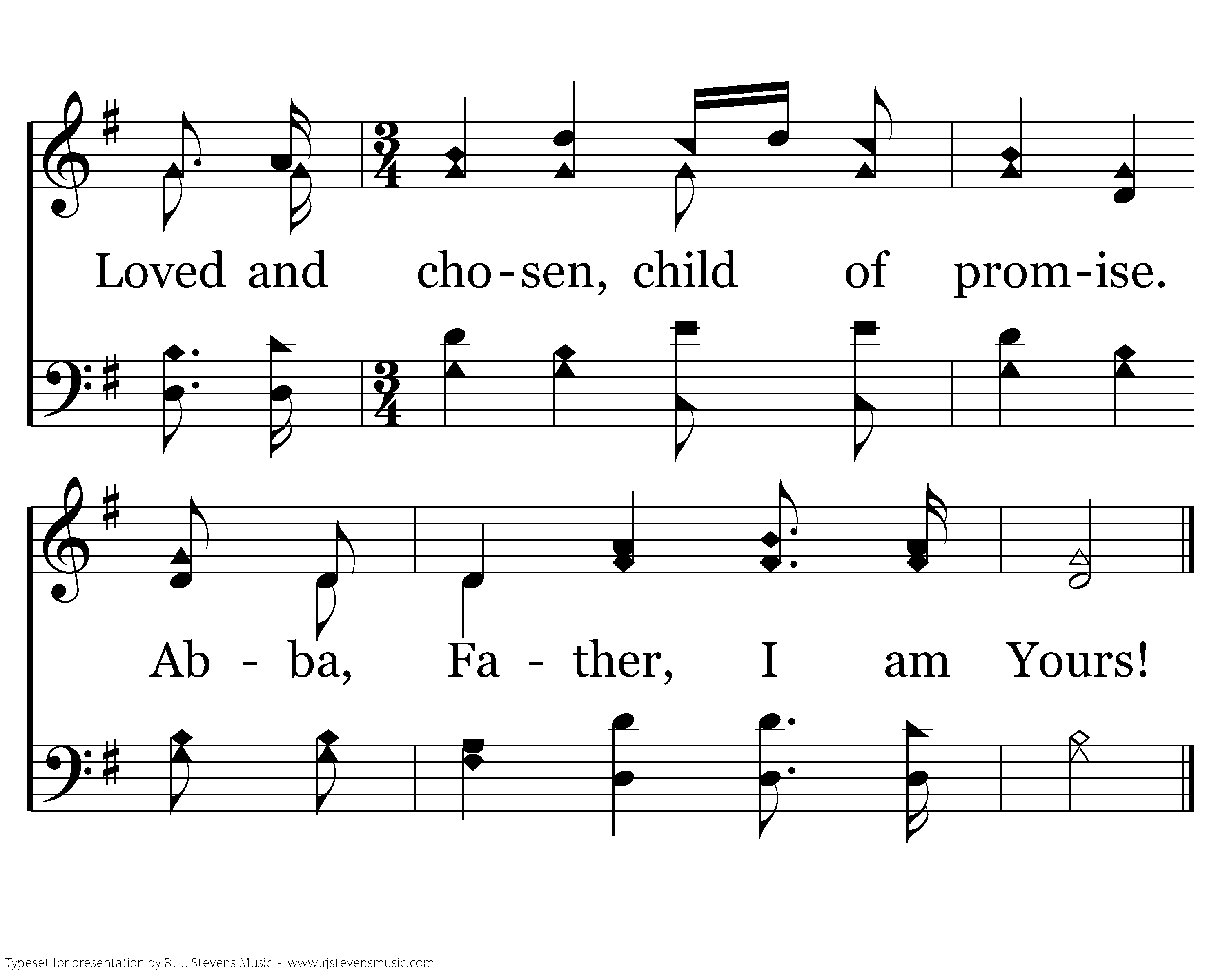 A child of God! I sing this song: I am adopted, I belong! Loved and chosen, child of promise. Abba, Father, I am Yours!