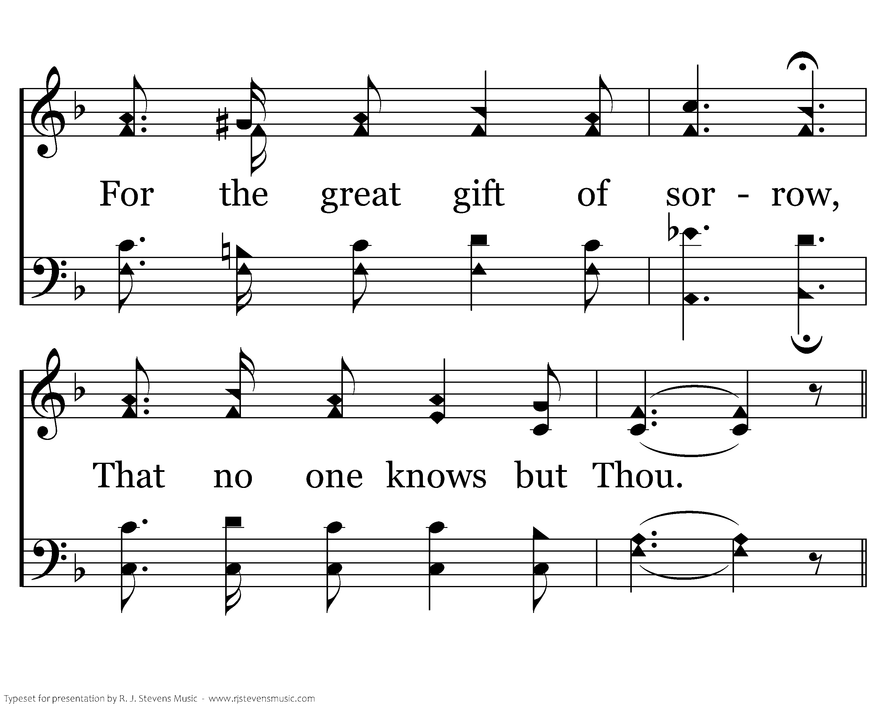 Nobody knows but Jesus; My Lord I bless Thee now For the great gift of sorrow, That no one knows but Thou.