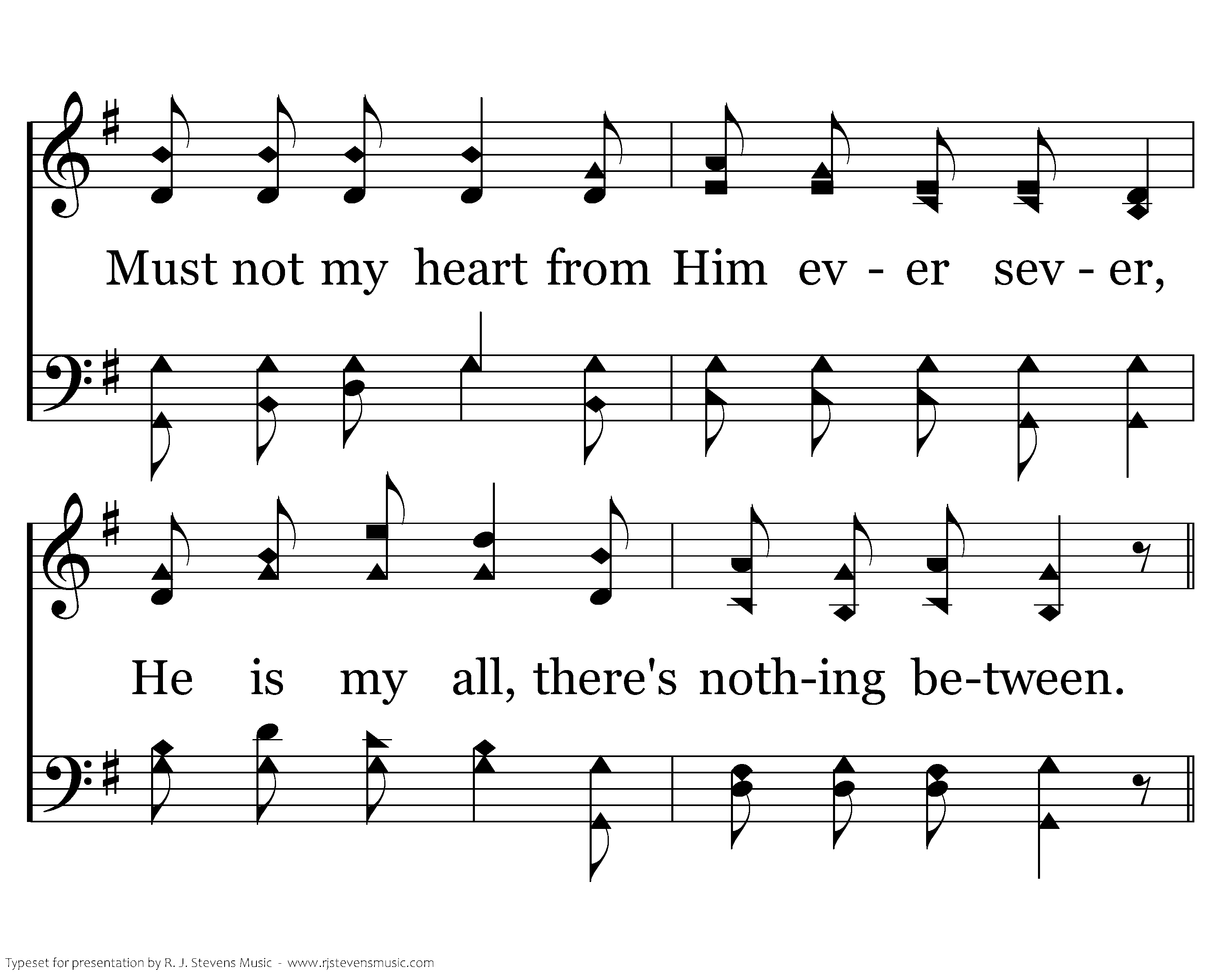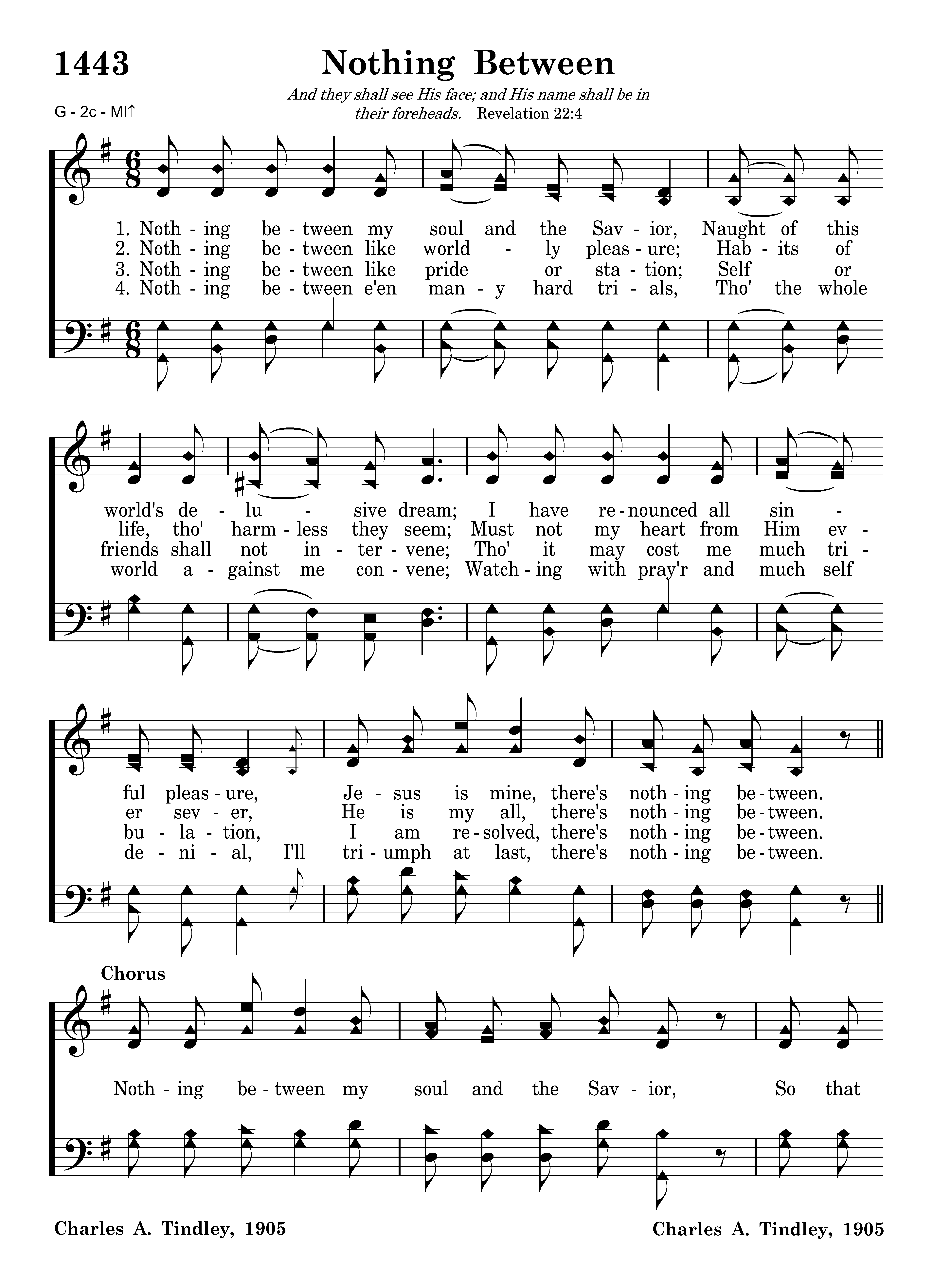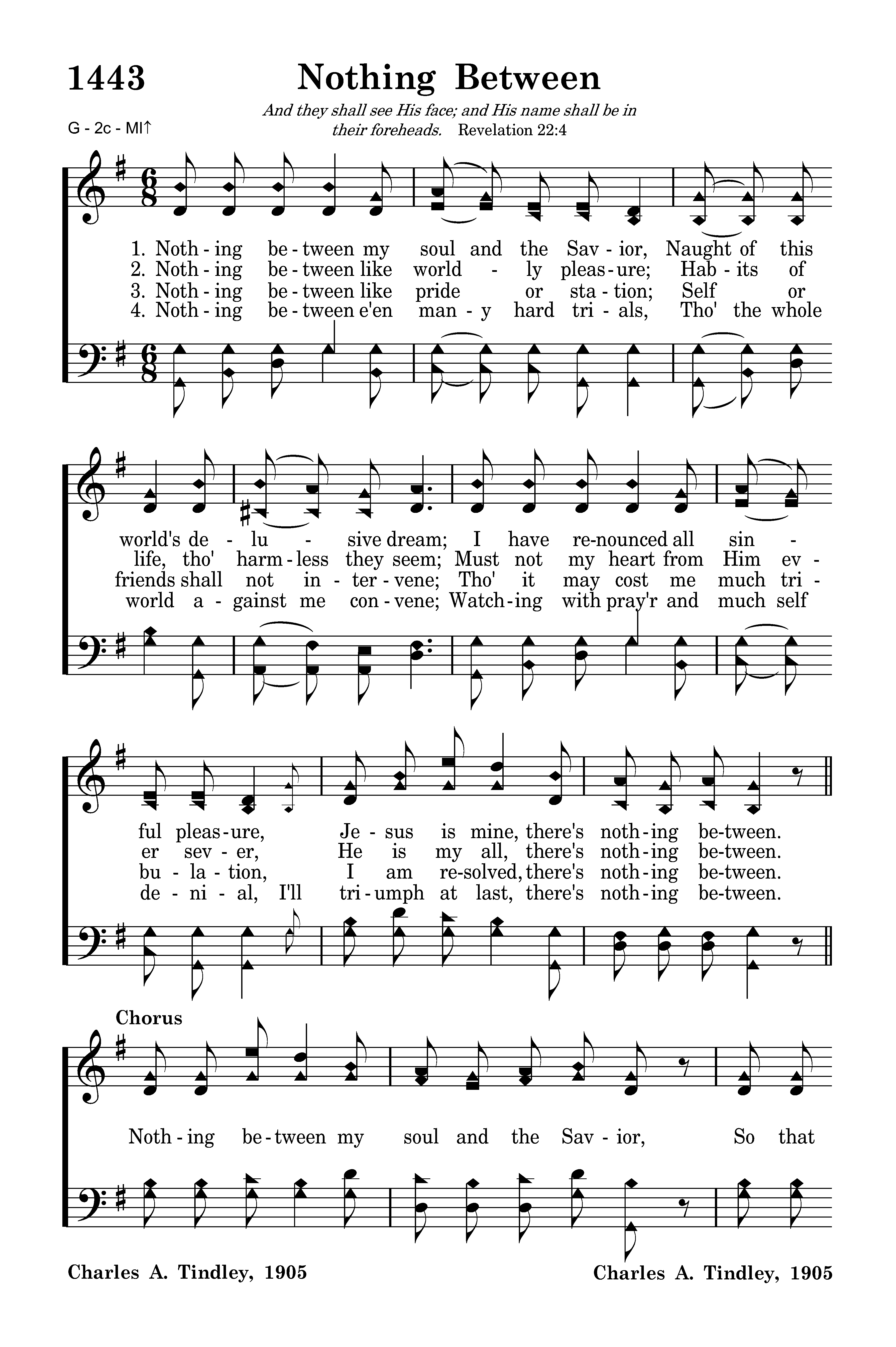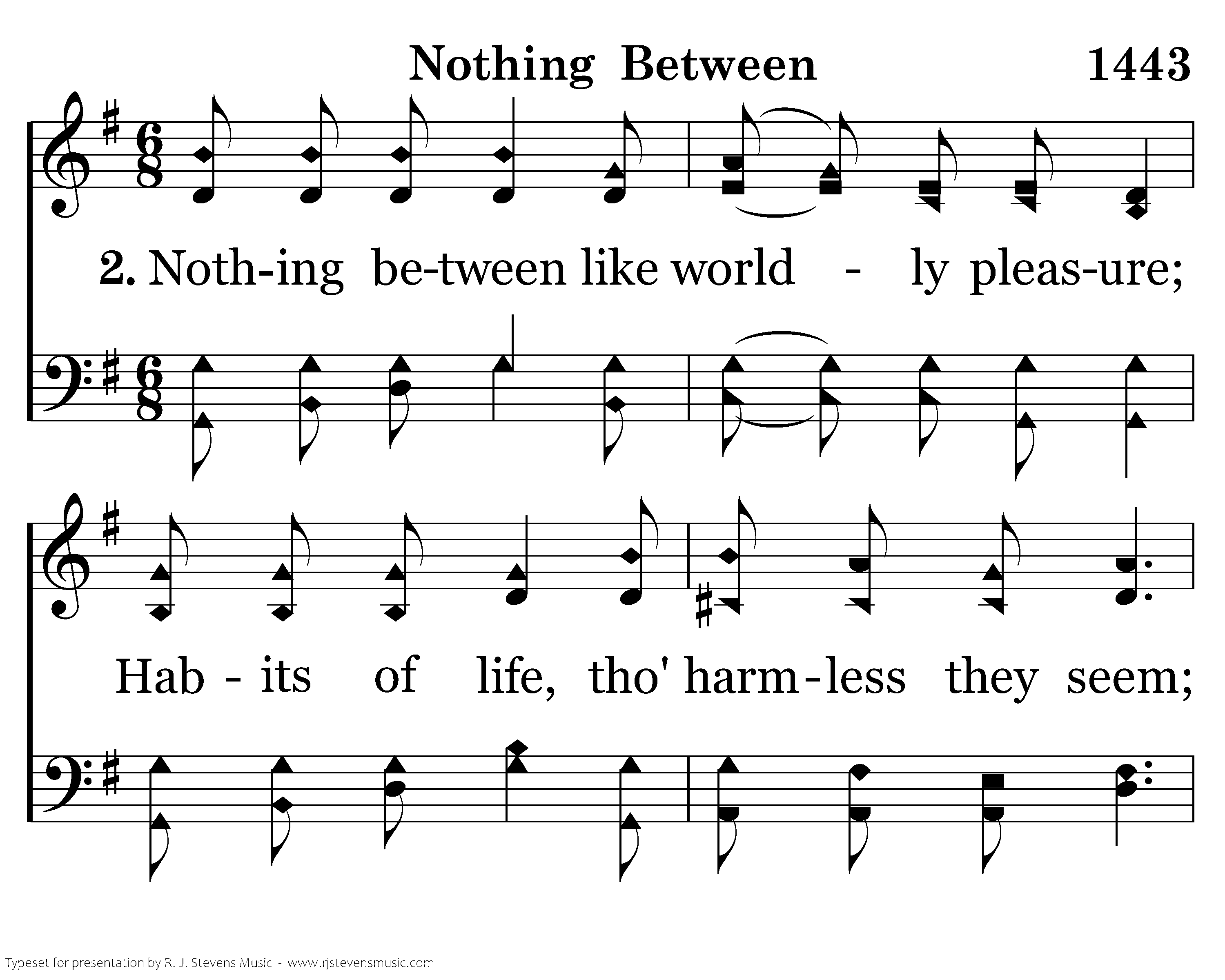 Nothing between like worldly pleasure; Habits of life, tho' harmless they seem; Must not my heart from Him ever sever, He is my all, there's nothing between.
