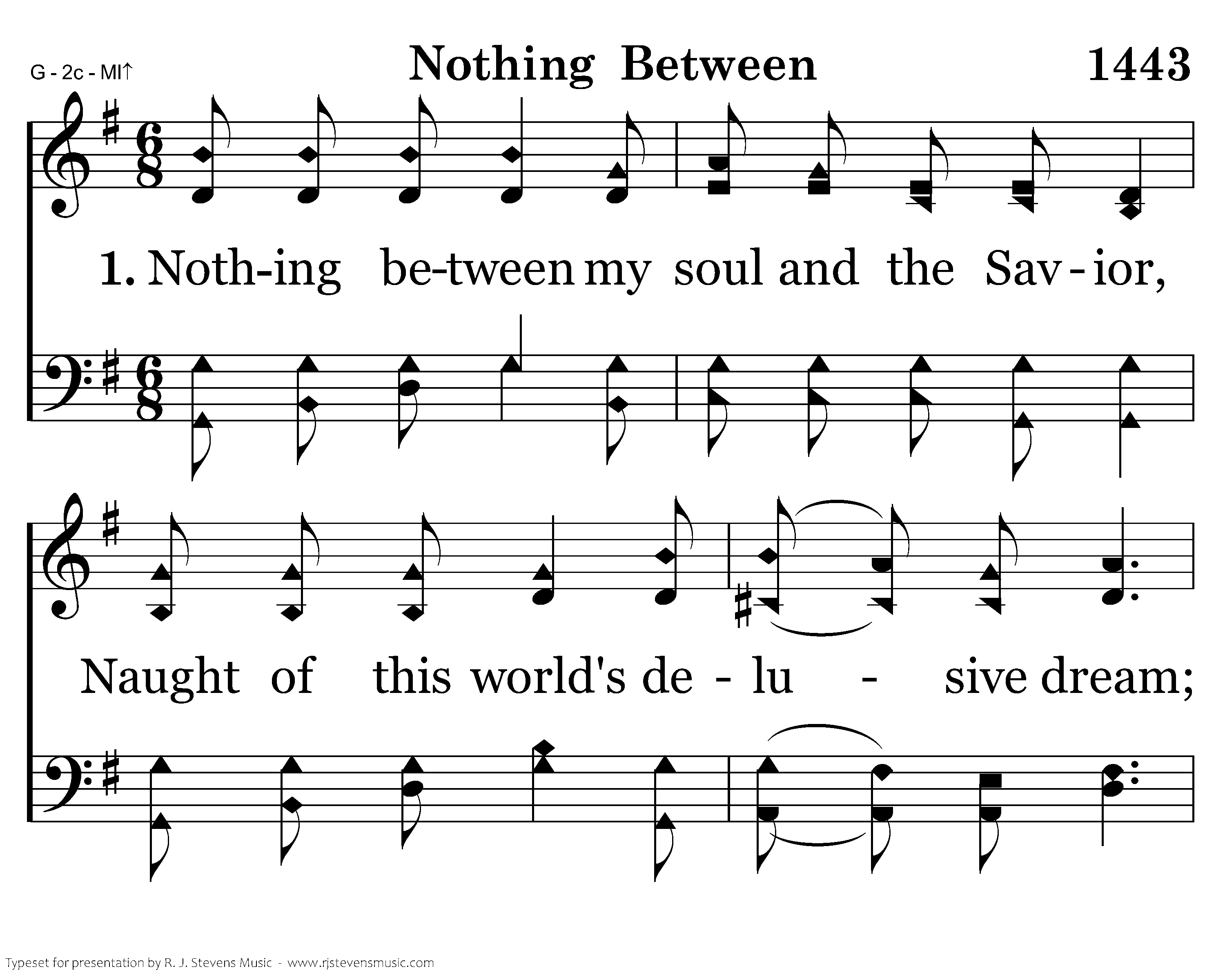 Nothing between my soul and the Savior, Naught of this world's delusive dream; I have renounced all sinful pleasure, Jesus is mine, there's nothing between.