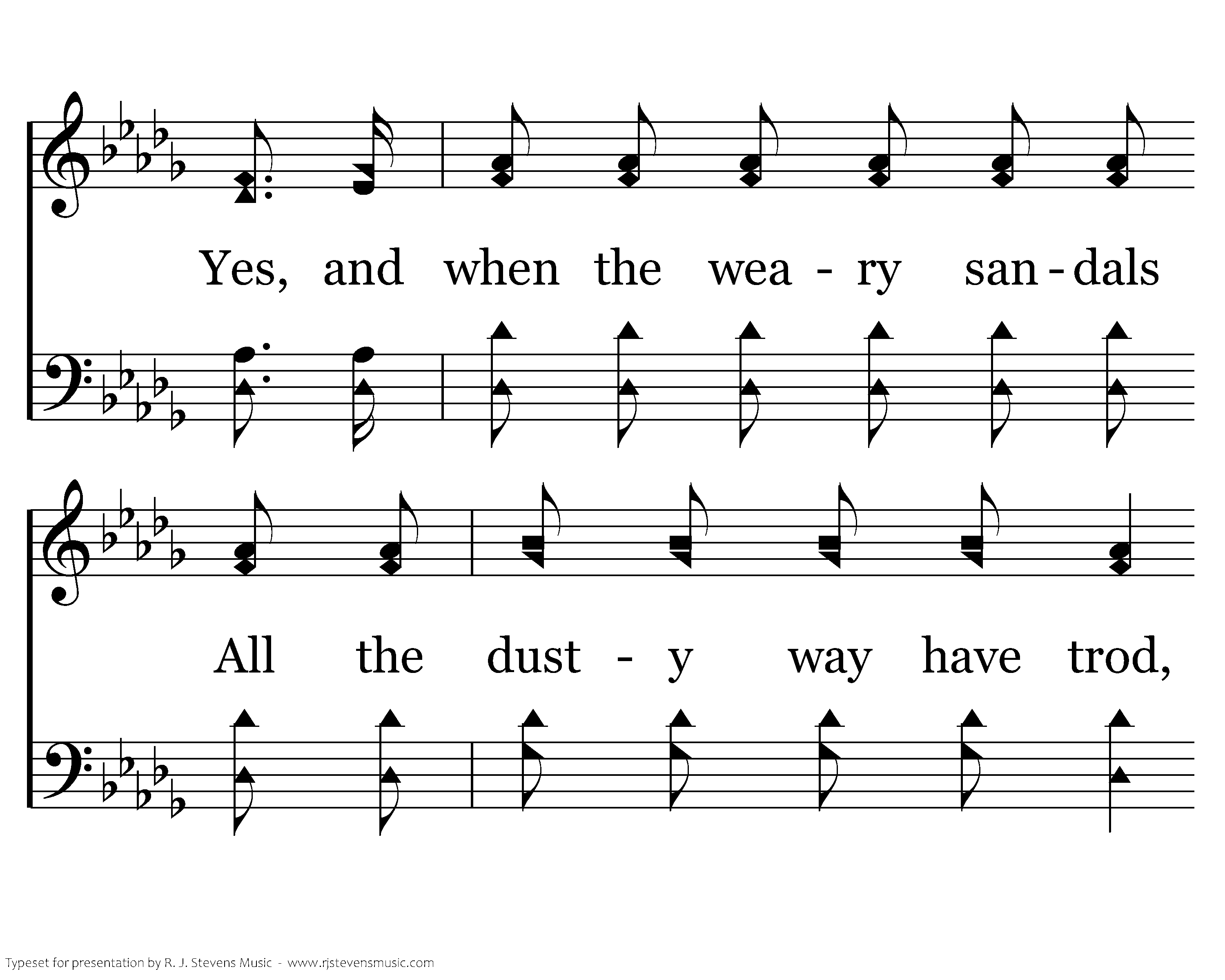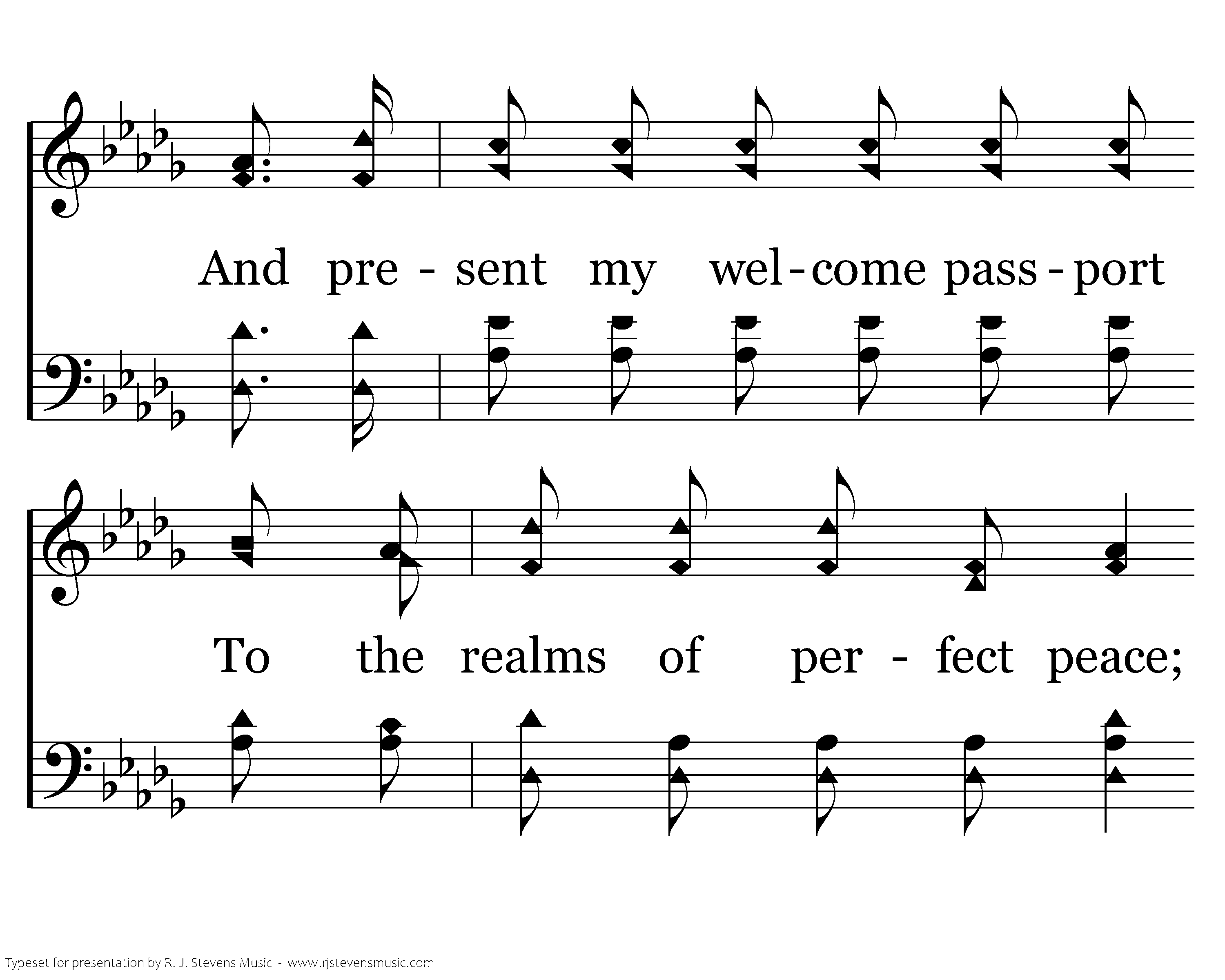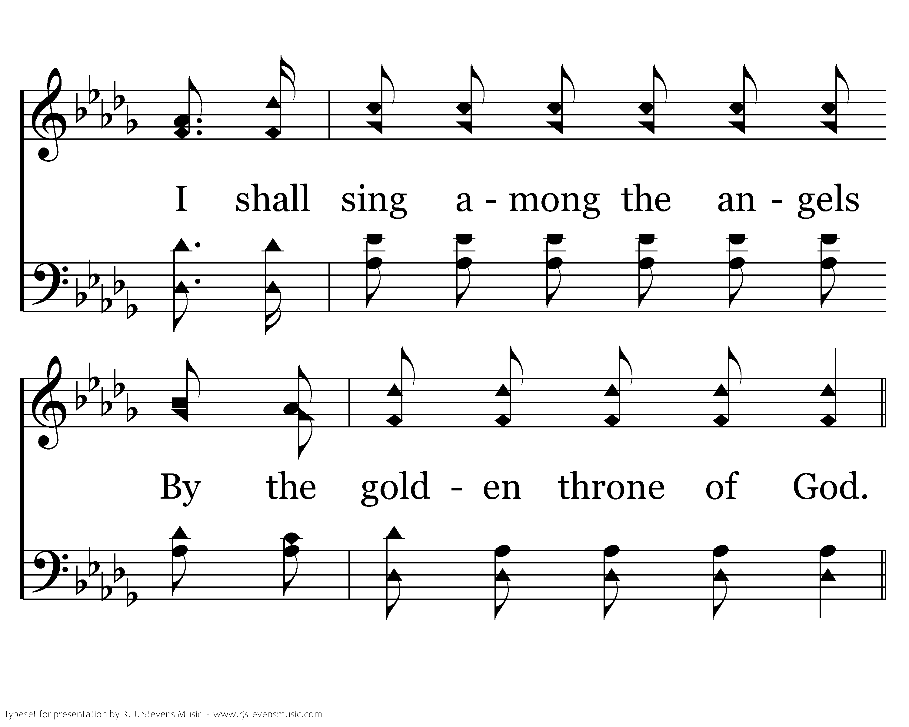 I am waiting for the signal that shall speak my full release, And present my welcome passport To the realms of perfect peace; Yes, and when the weary sandals All the dusty way have trod, I shall sing among the angels By the golden throne of God.