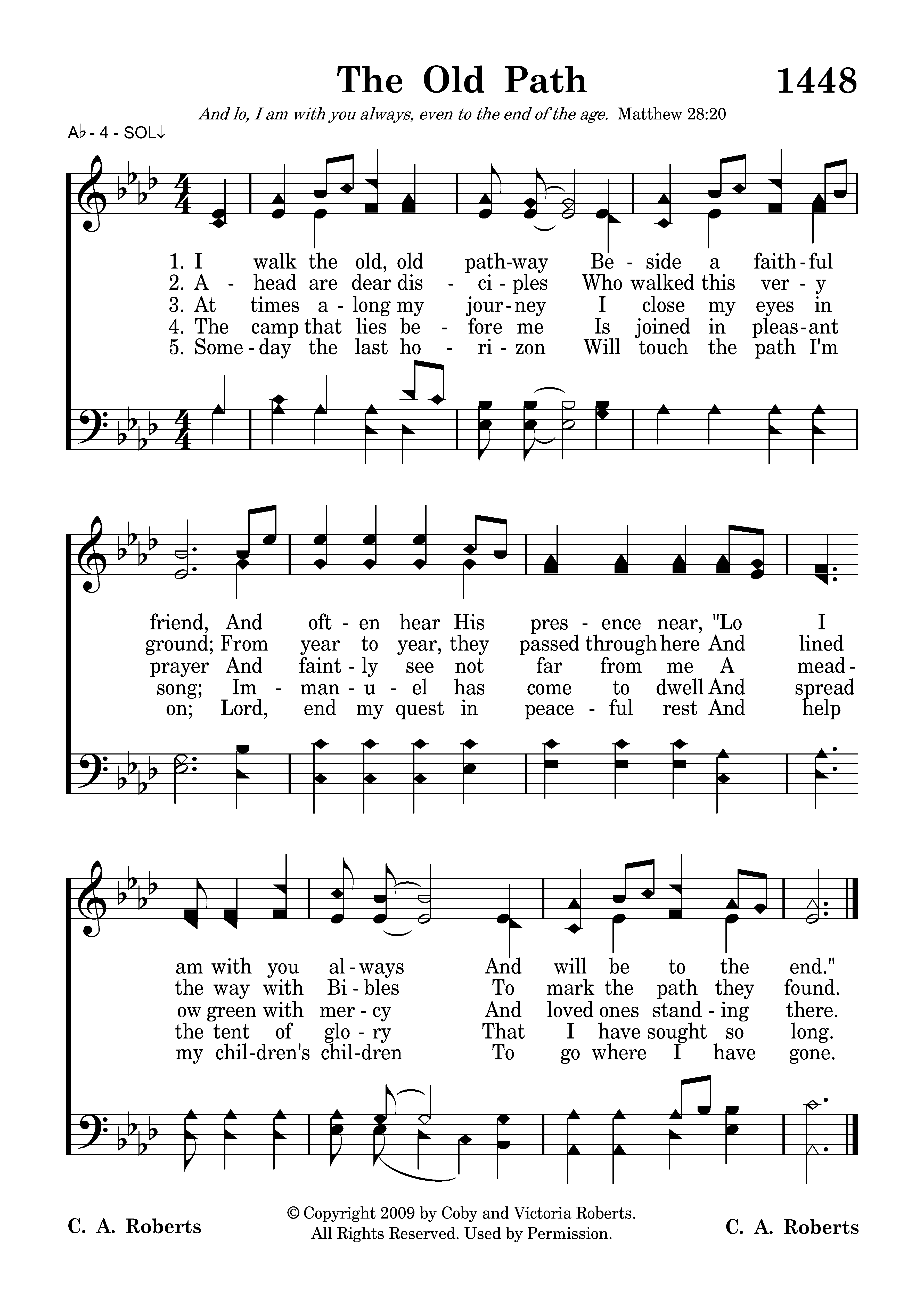 I walk the old, old pathway Beside a faithful friend, And often hear His presence near, "Lo I am with you always And will be to the end."