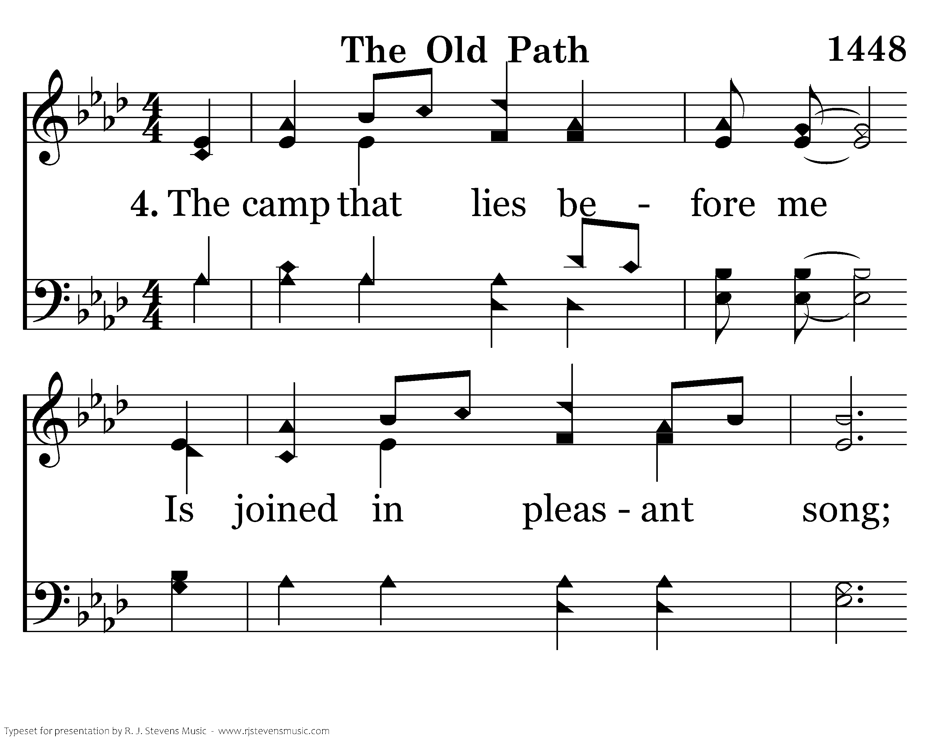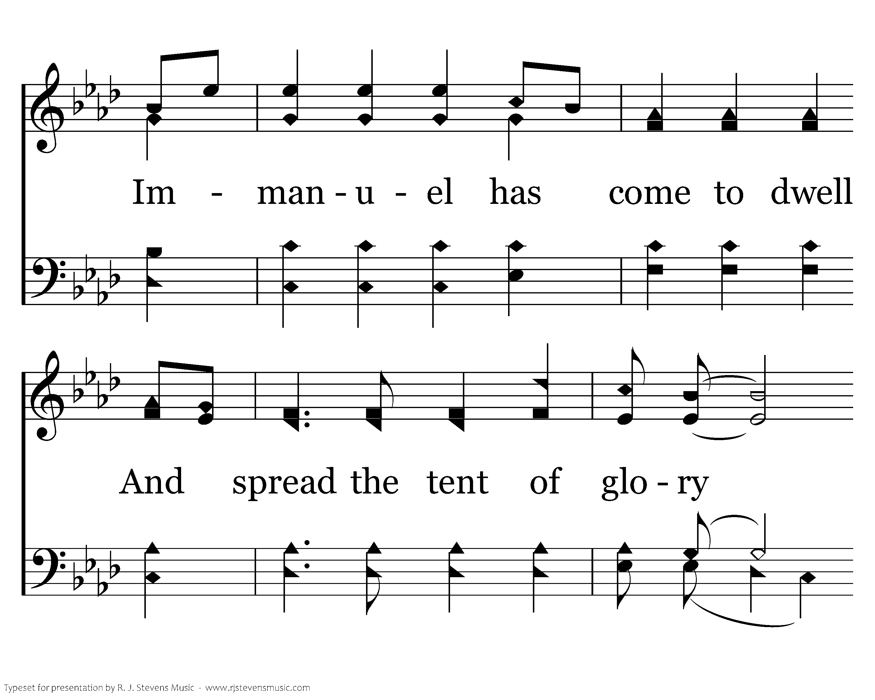 The camp that lies before me Is joined in pleasant song; Immanuel has come to dwell And spread the tent of glory That I have sought so long.
