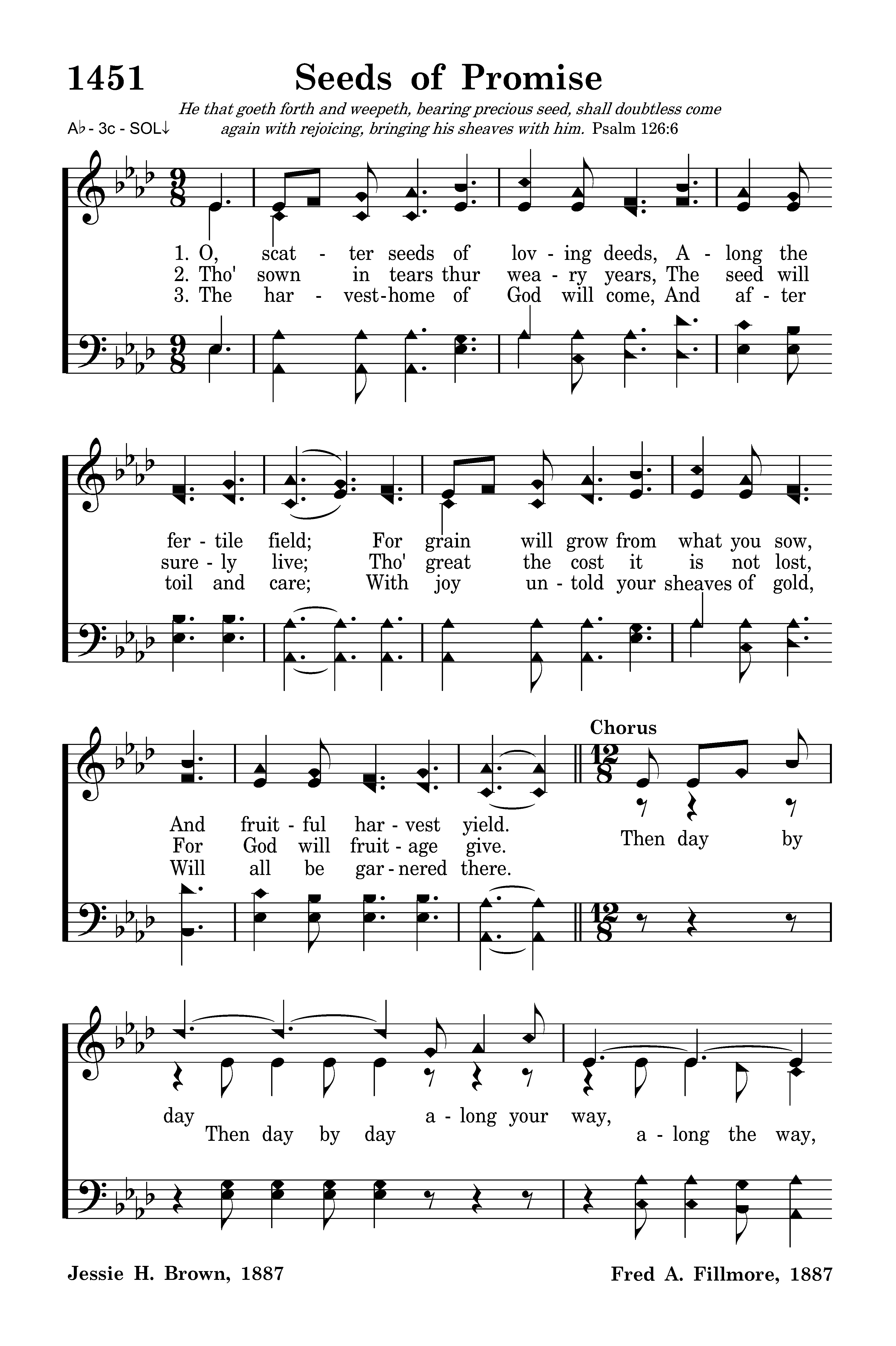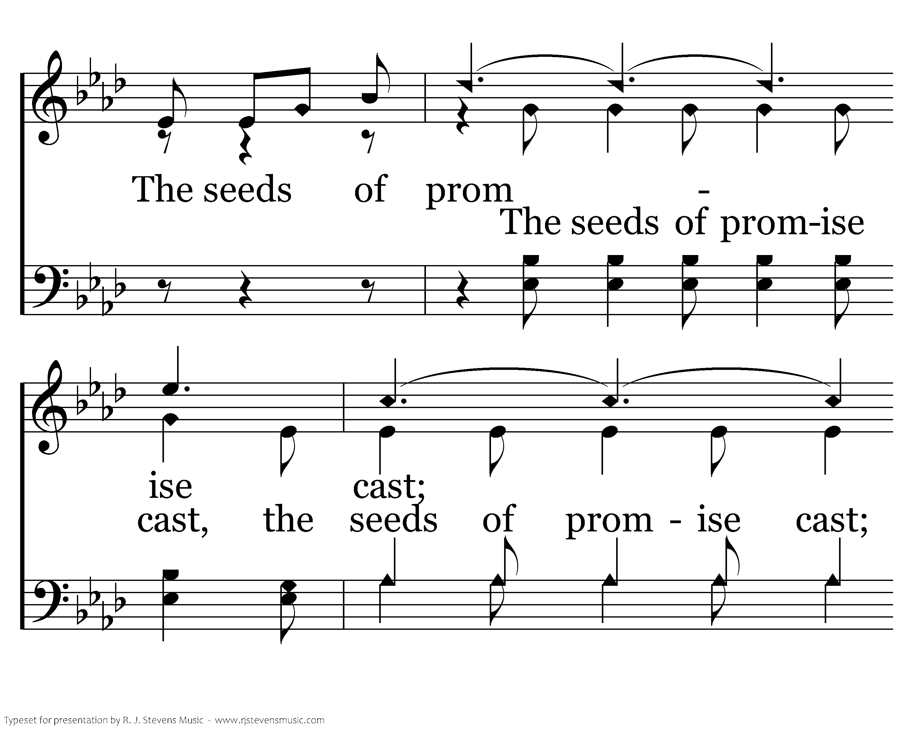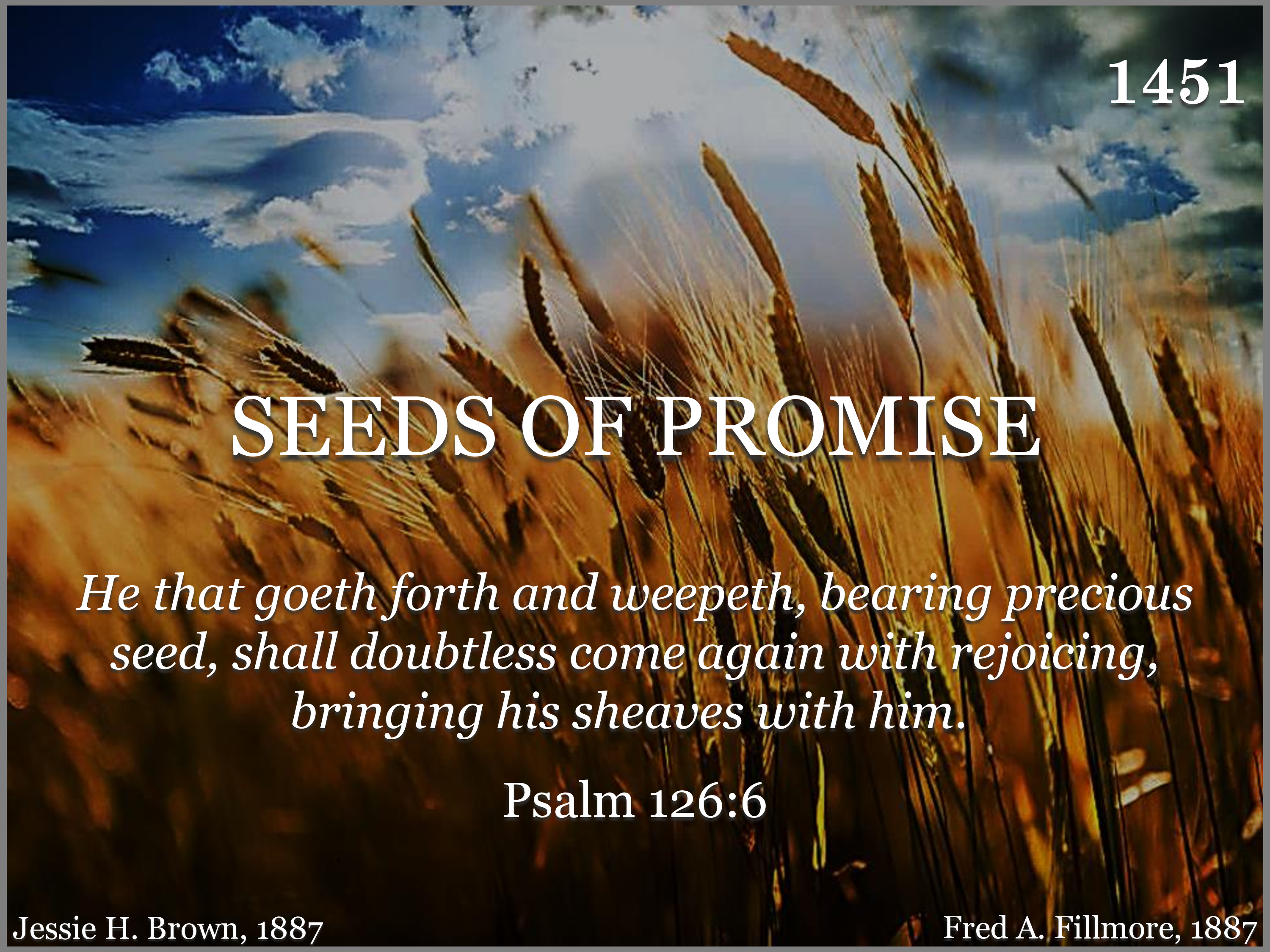 O, scatter seeds of loving deeds, Along the fertile field; For grain will grow from what you sow, And fruitful harvest yield.