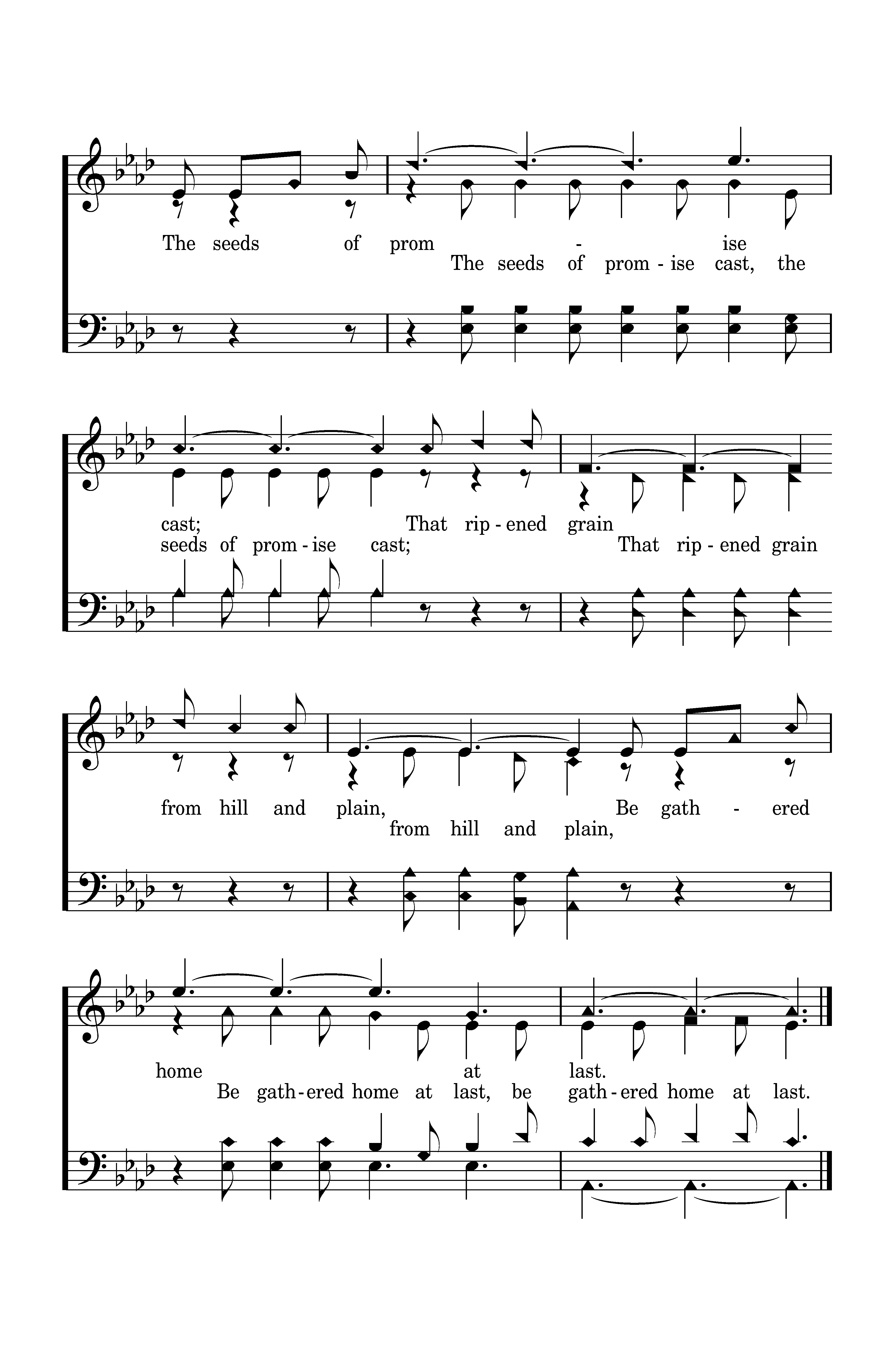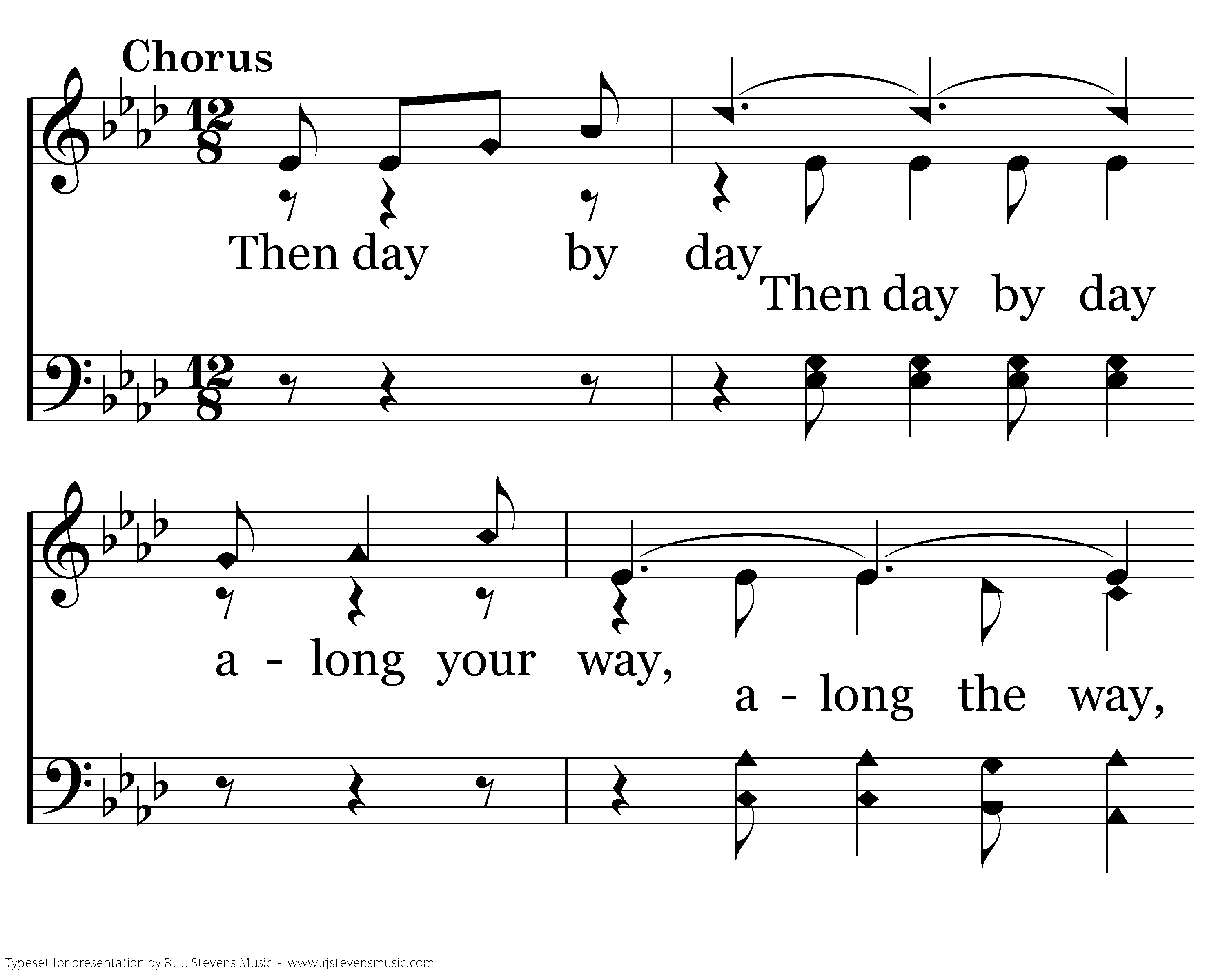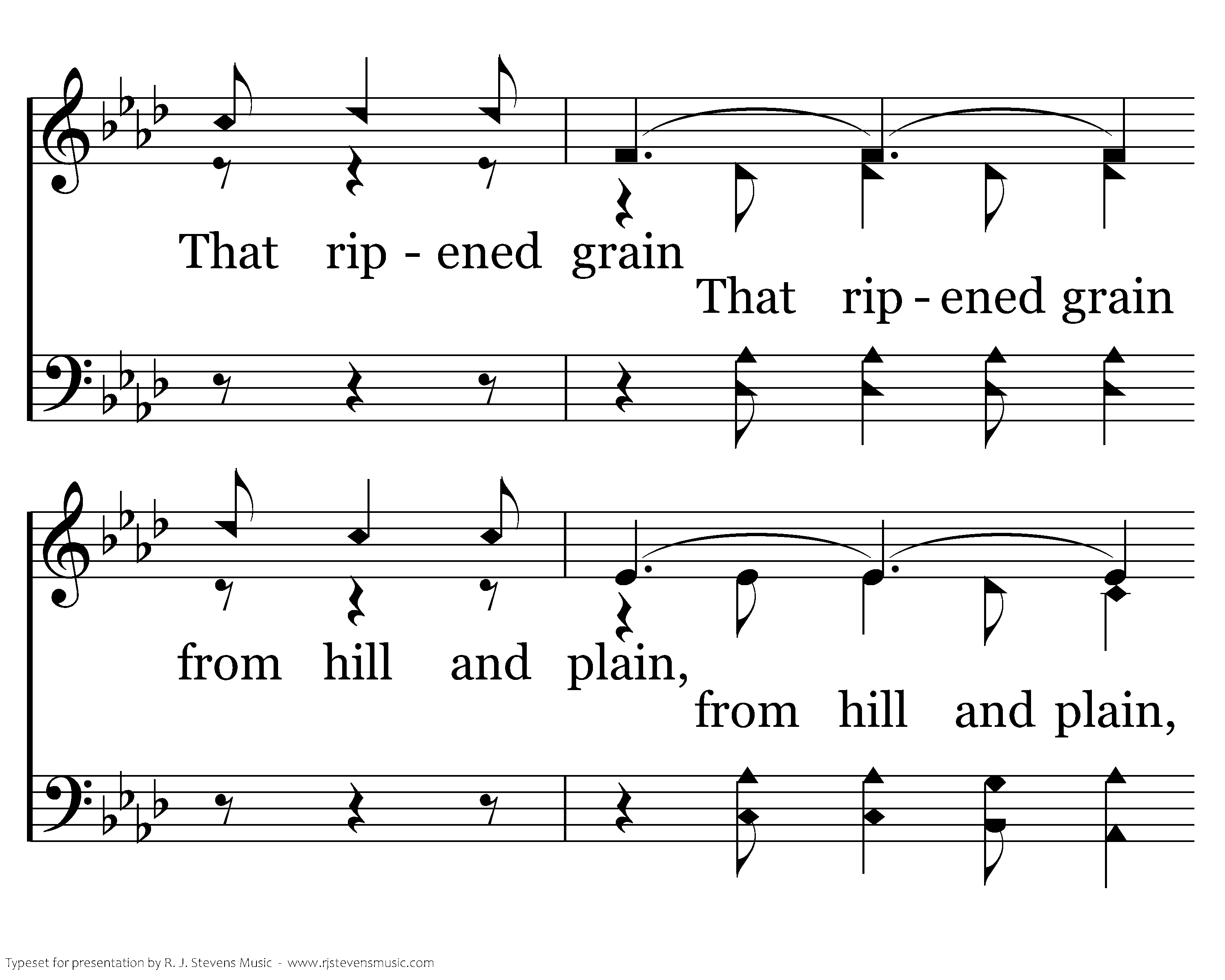 O, scatter seeds of loving deeds, Along the fertile field; For grain will grow from what you sow, And fruitful harvest yield.