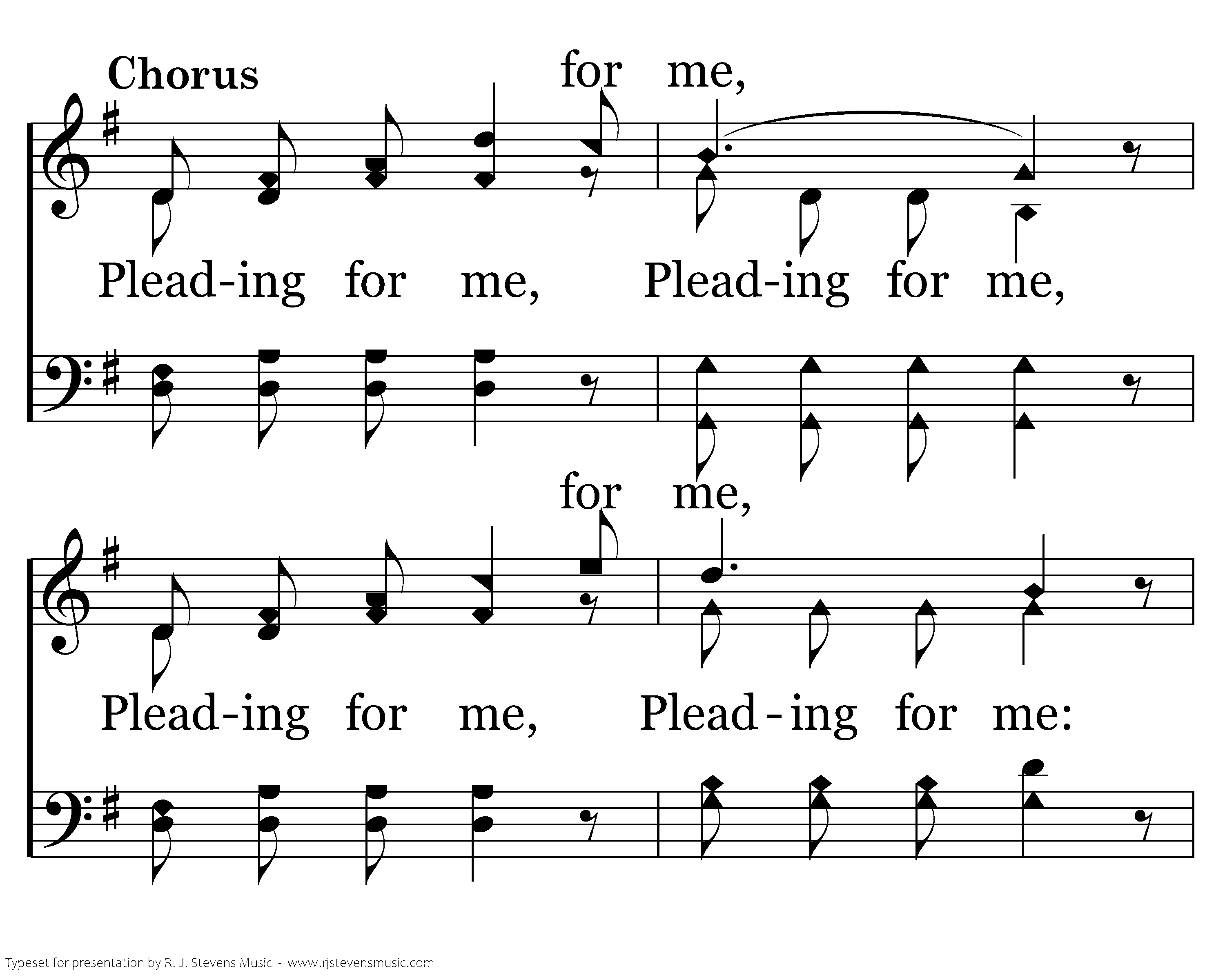 Jesus, my Savior, in mercy and love, Came from the mansions of heaven above, Tenderly pleading for sinners like me, Pleading for me, for me: Pleading for me, Pleading for me, Pleading for me, Pleading for me: Tenderly pleading for sinners like me, Pleading for me, for me.