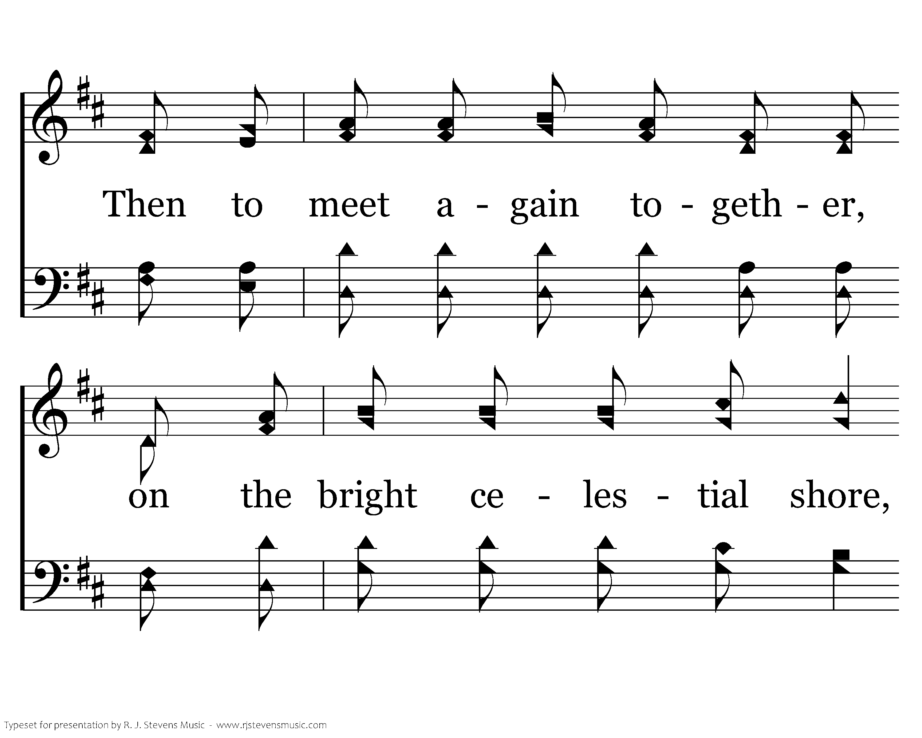When the angel of the Lord proclaims earthtime shall be no more, We shall gather, and the saved and ransomed see, Then to meet again together, on the bright celestial shore, What a gath'ring of the faithful that will be!