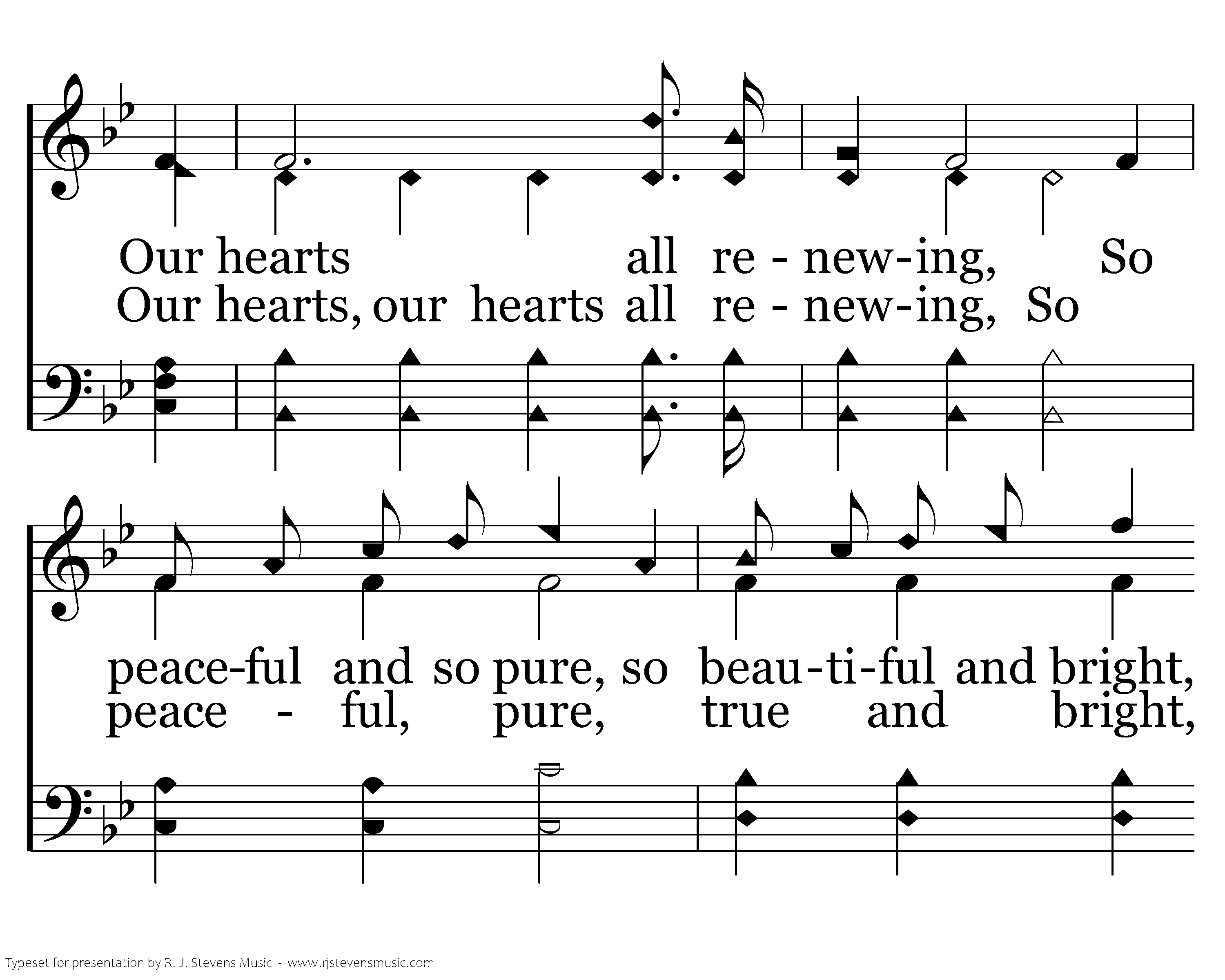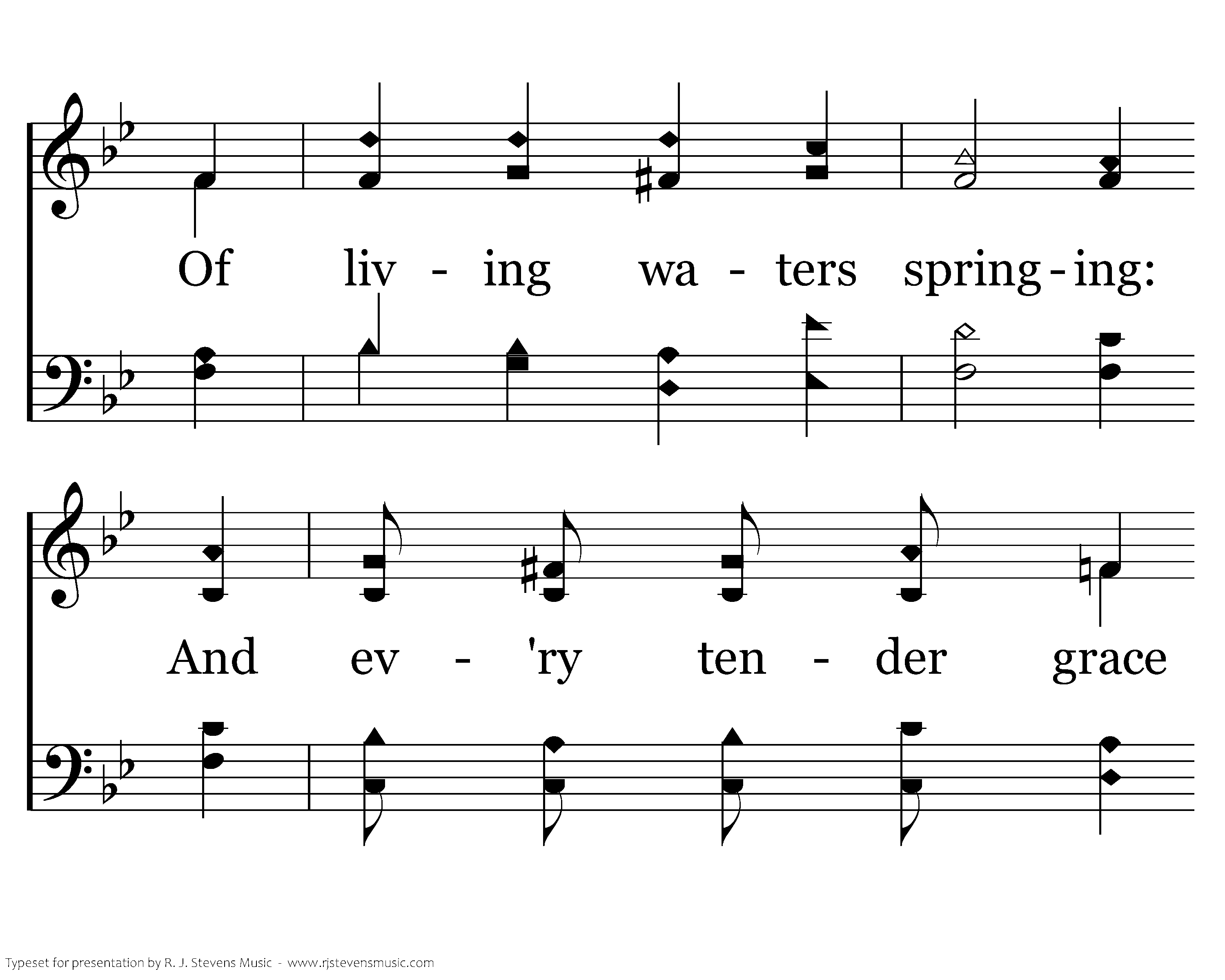 Within our hearts shall be This fountain pure and free Of living waters springing: And ev'ry tender grace Shall flourish in the place While songs of joy are ringing.