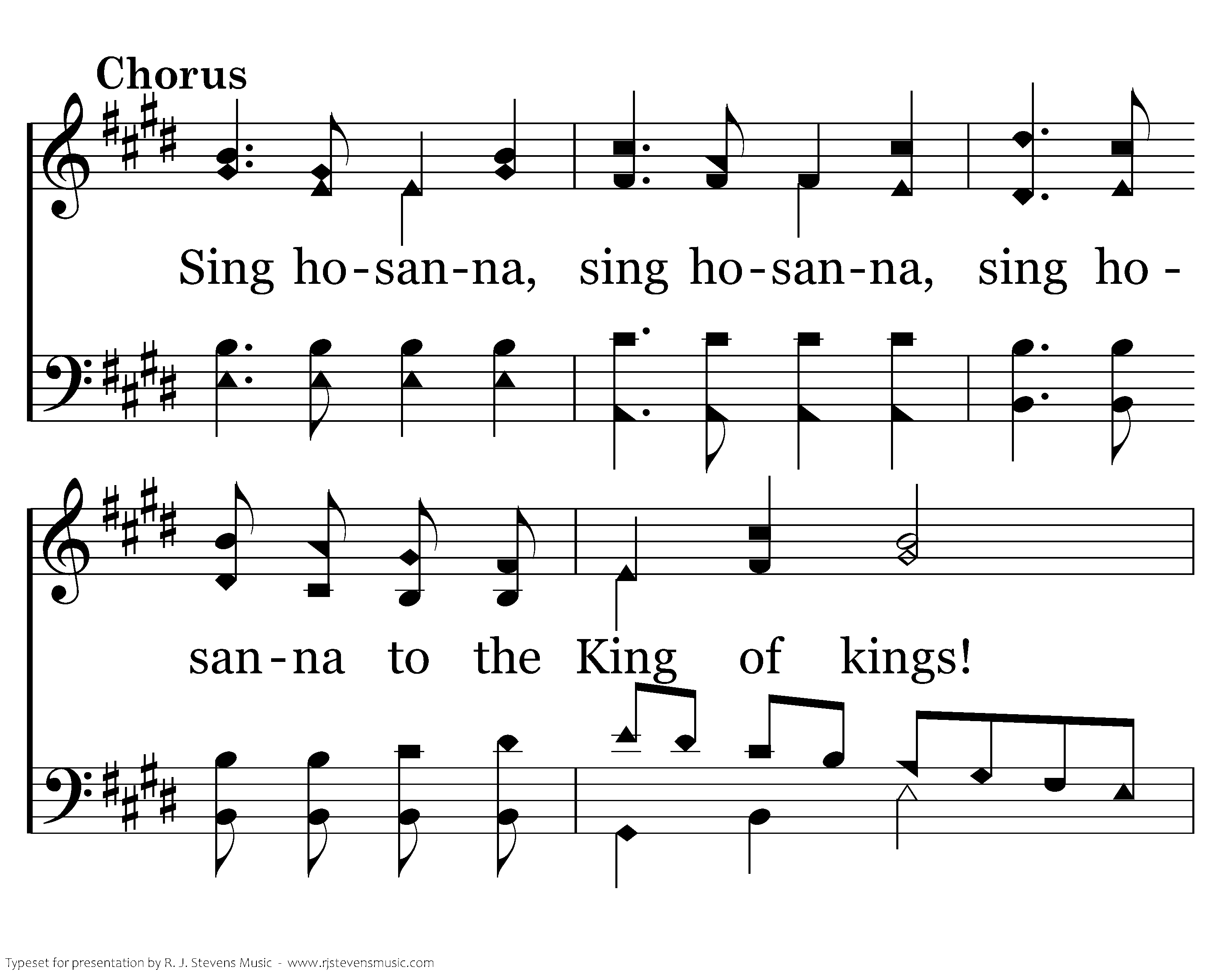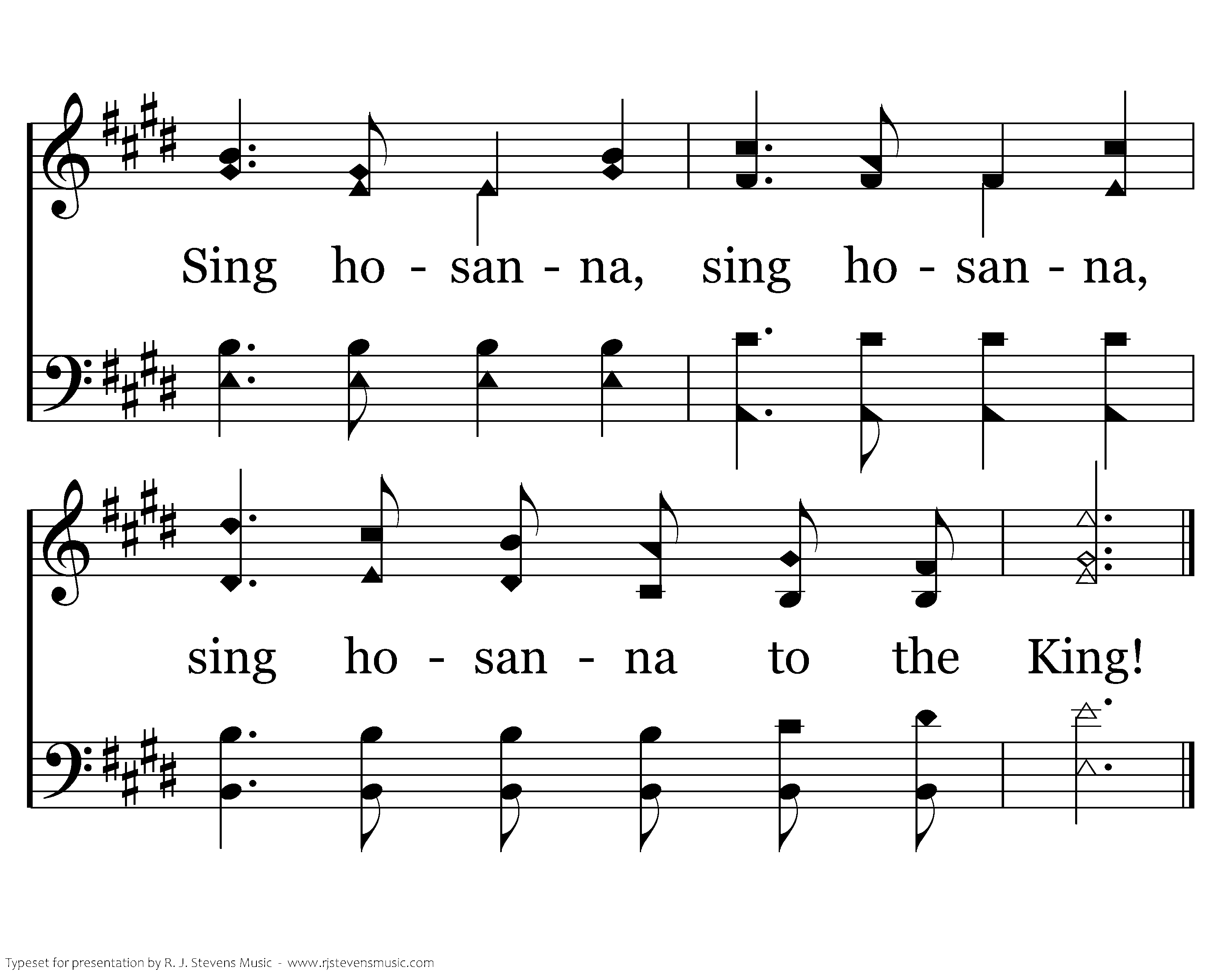 Sing hosanna, sing hosanna, sing hosanna to the King of kings! Sing hosanna, sing hosanna, sing hosanna to the King of kings!