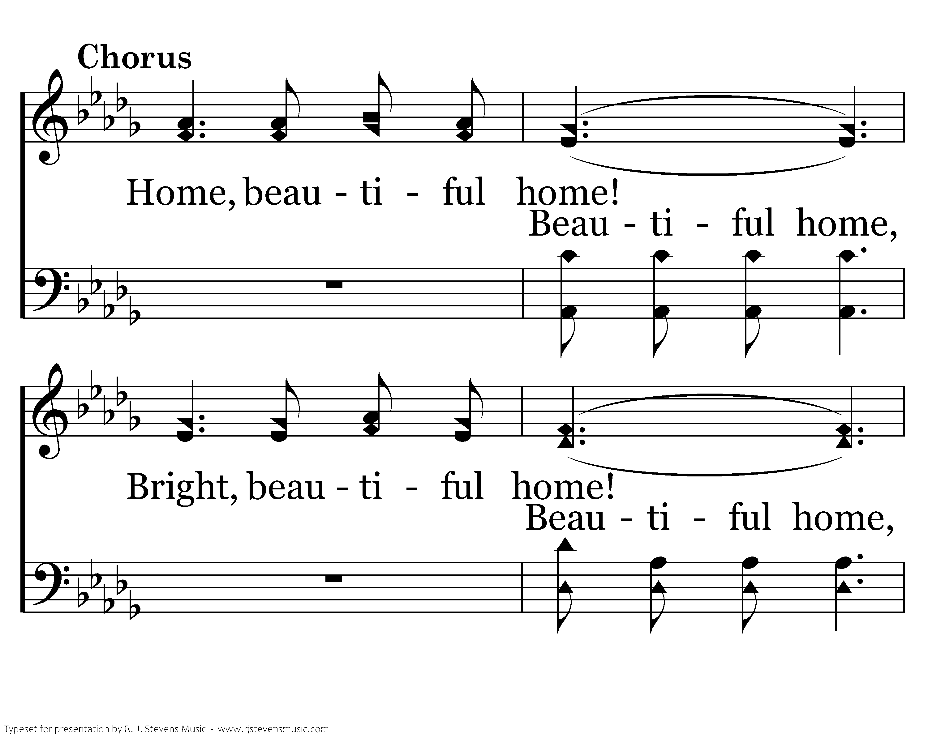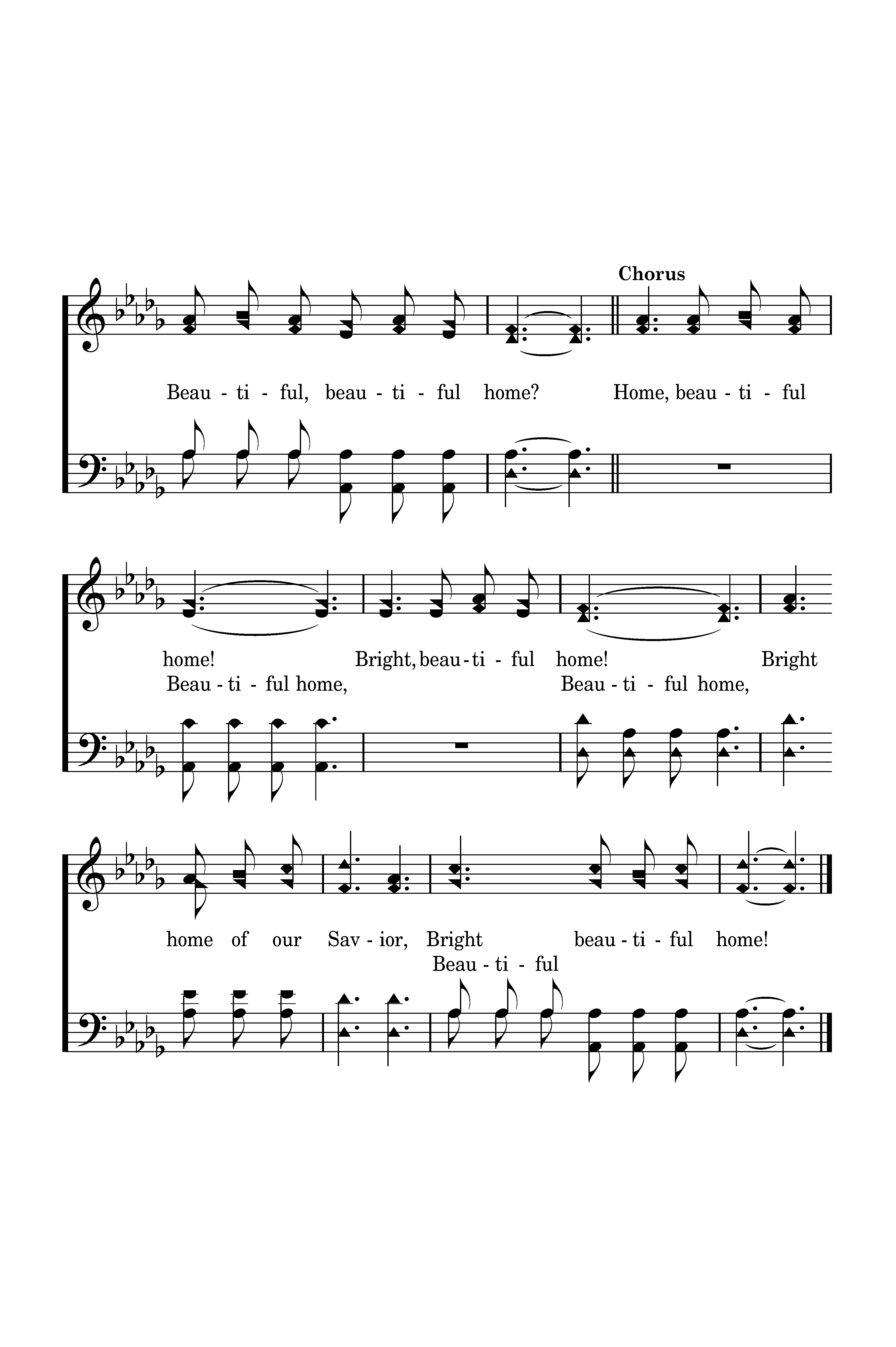 Home, beautiful home! Bright, beautiful home! Bright home of our Savior, Bright beautiful home!