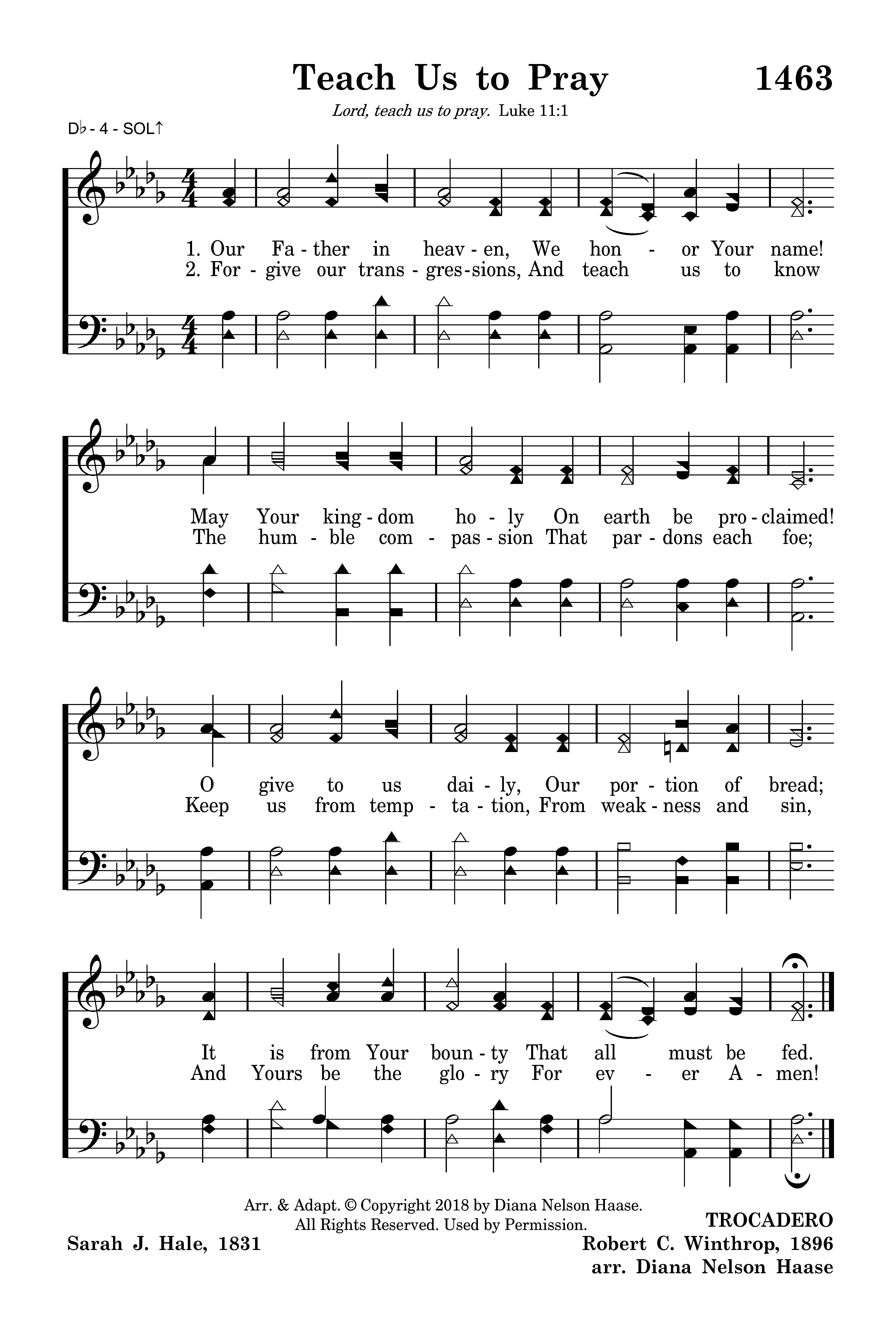 - Arr. Copyright © 2018 by Diana Nelson Haase. All Rights Reserved. Used by Permission.