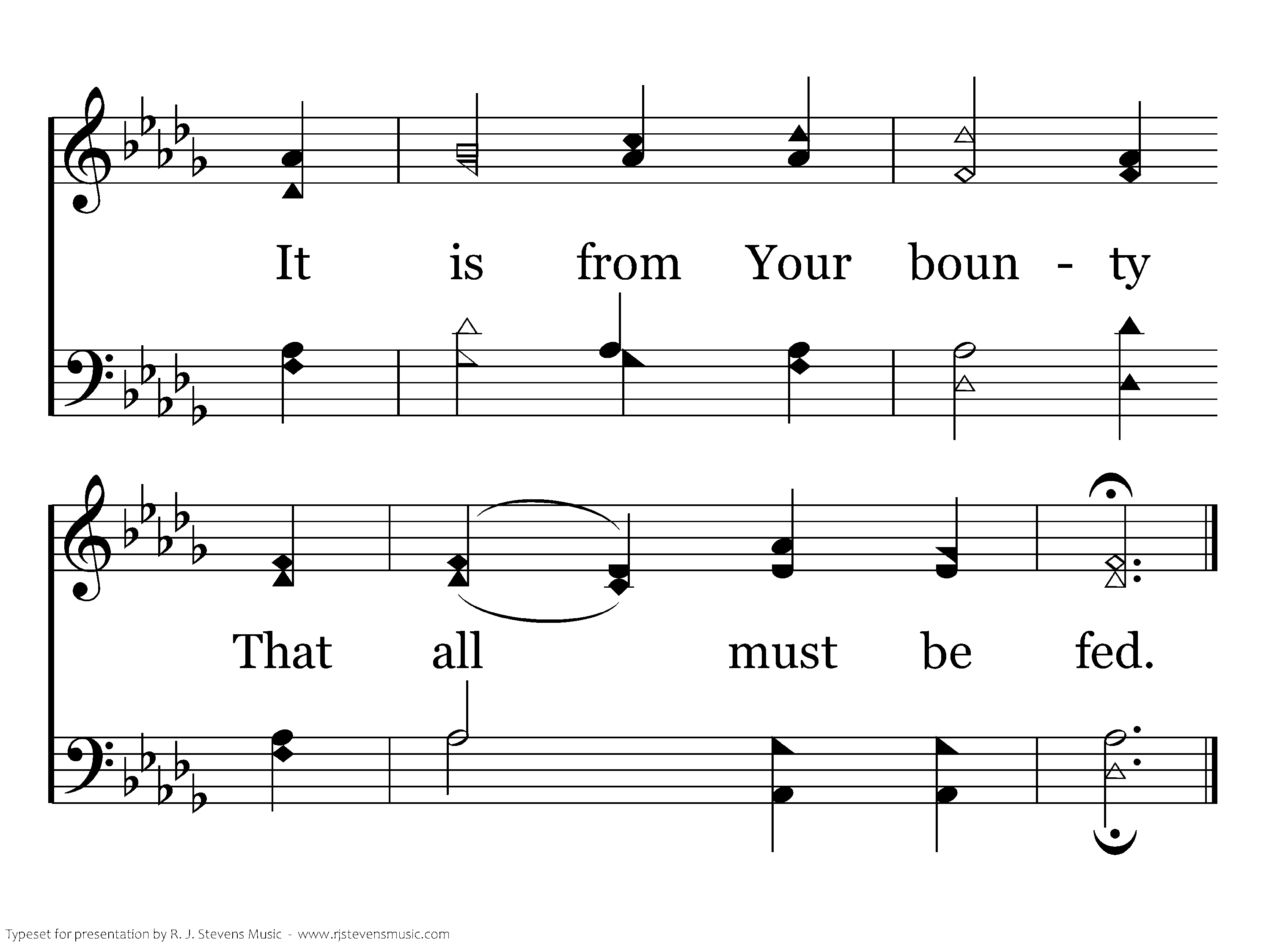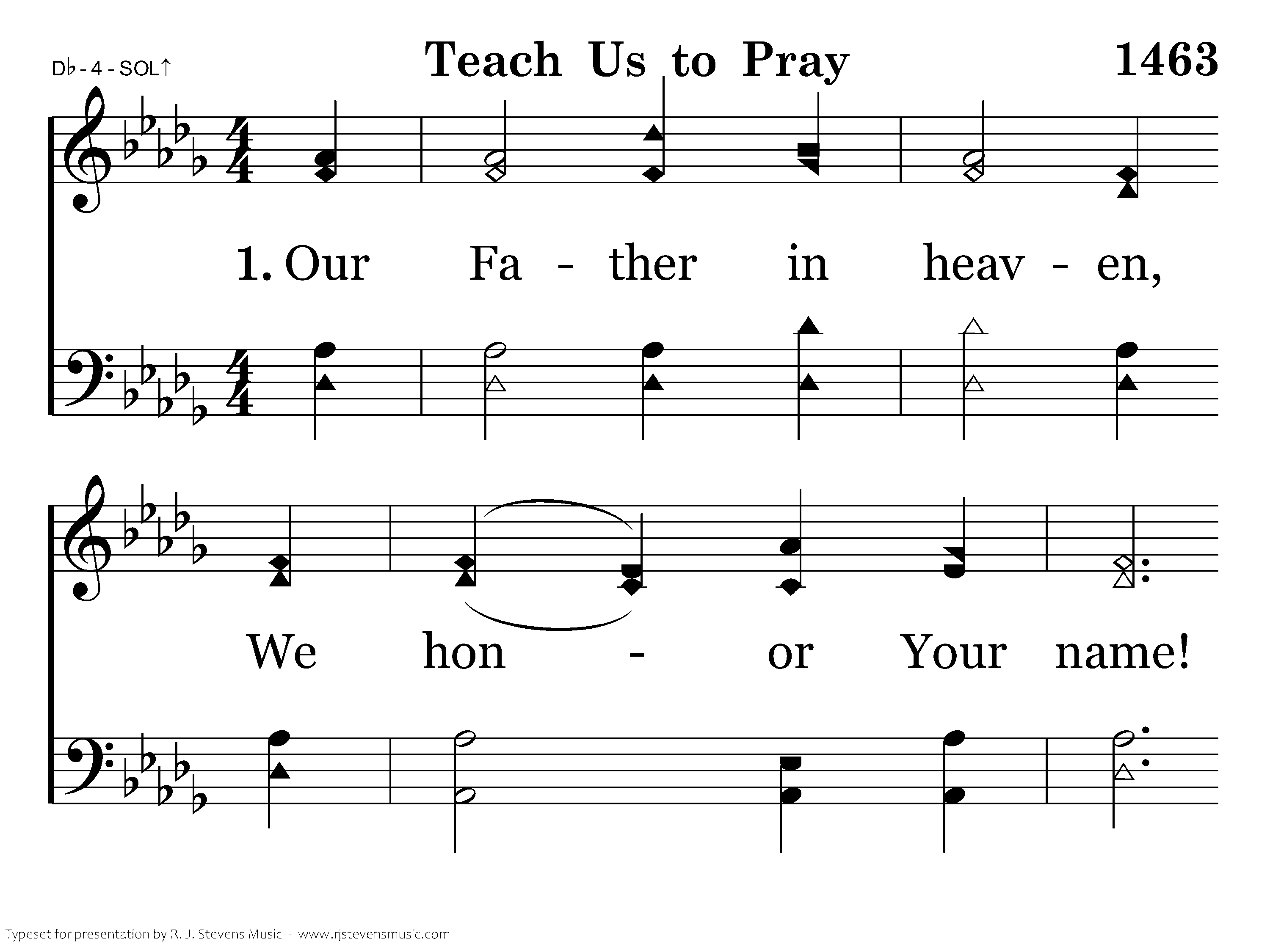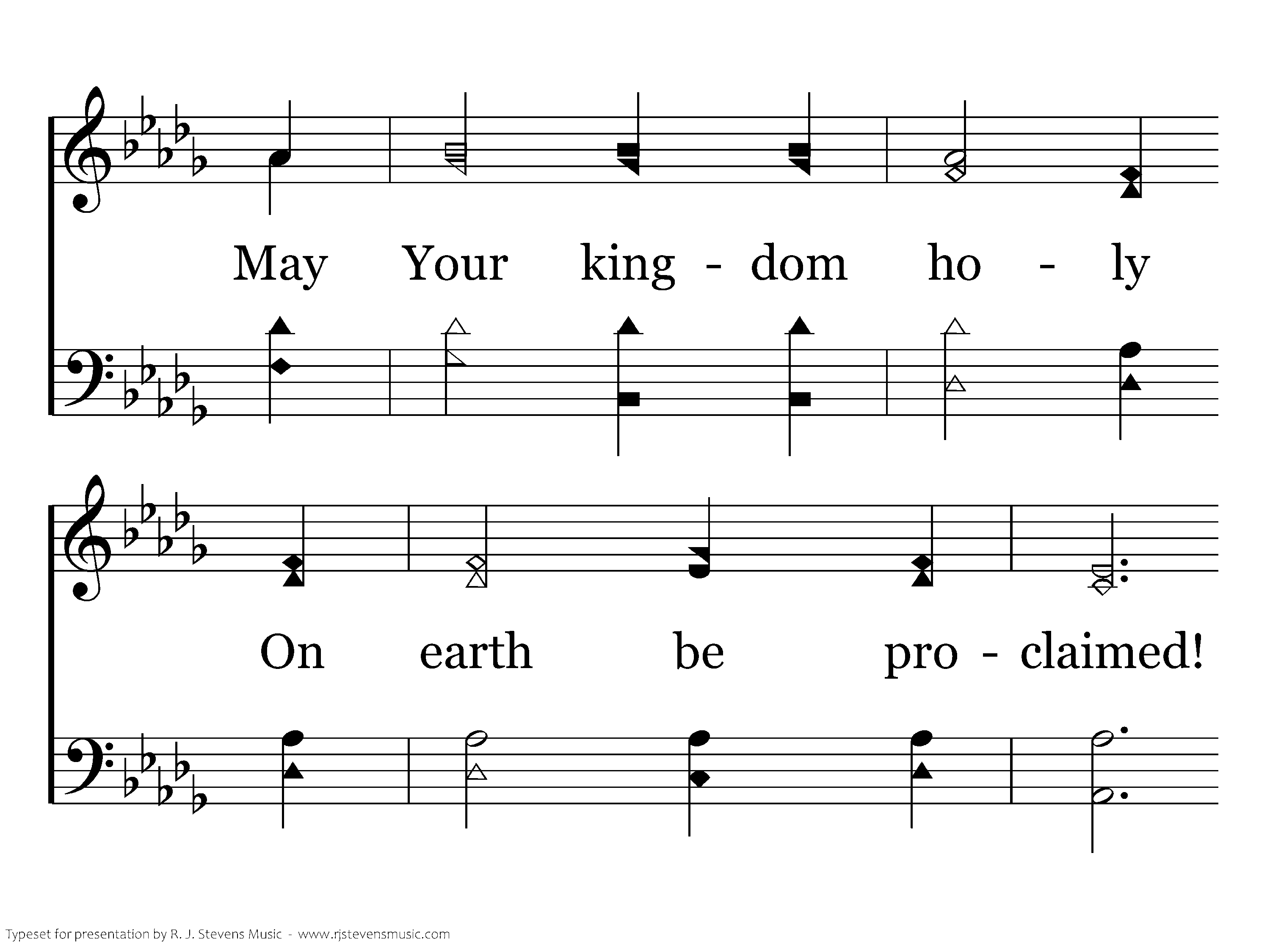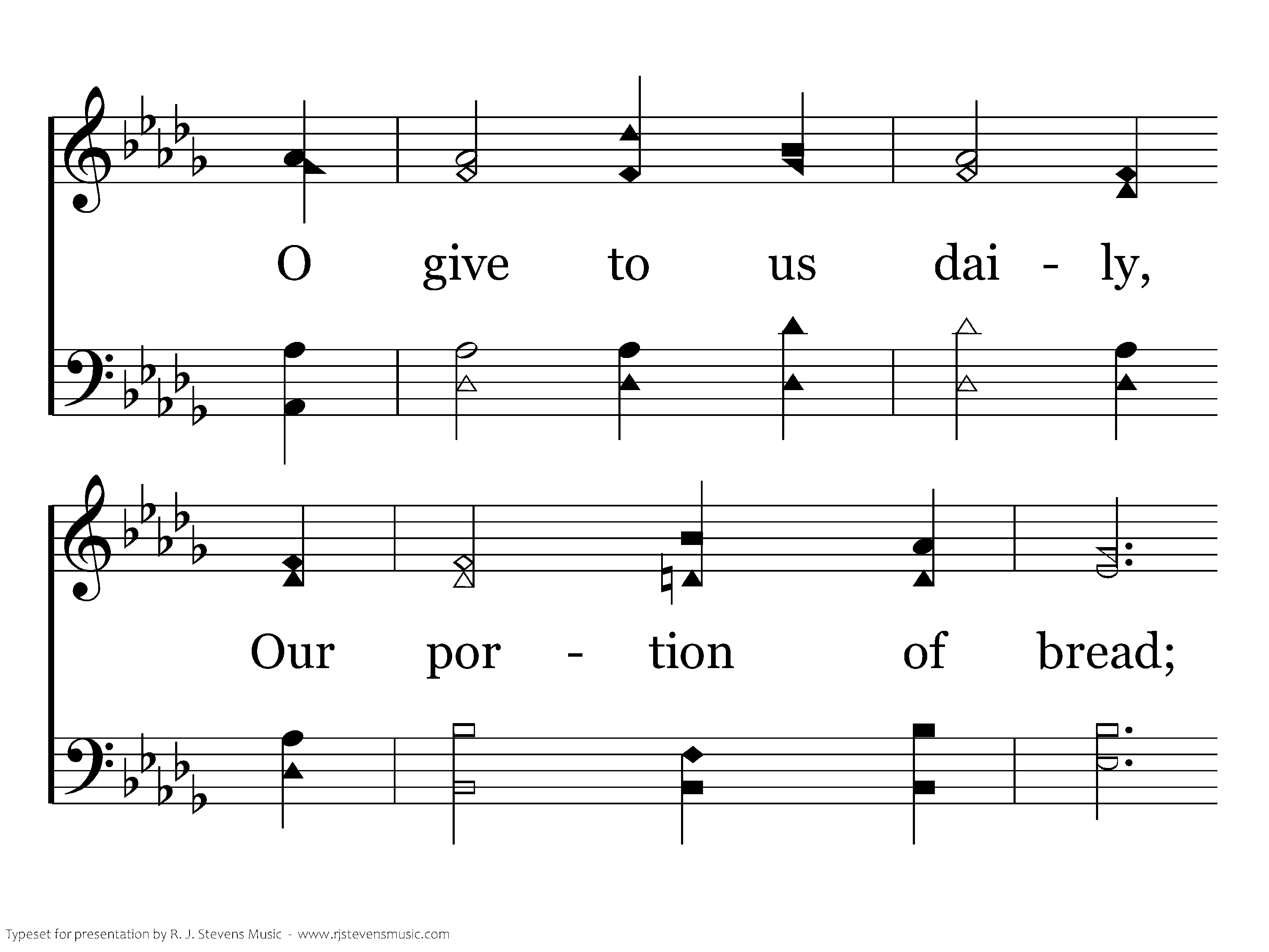 Our Father in heaven, We honor Your name! May Your kingdom holy On earth be proclaimed! O give to us daily, Our portion of bread; It is from Your bounty That all must be fed.