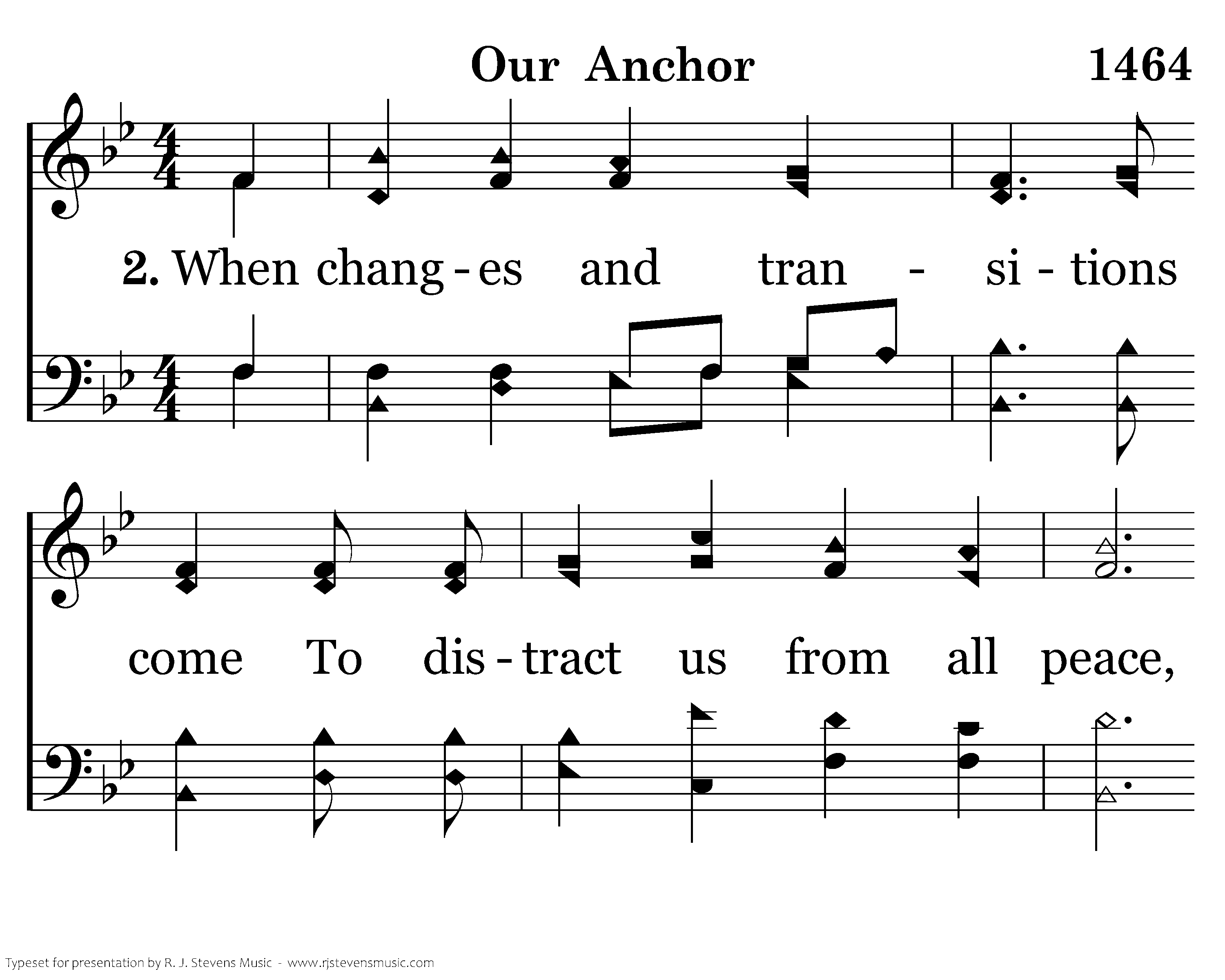 When changes and transitions come To distract us from all peace, Let's set our minds on things above, For God's mercies never cease.