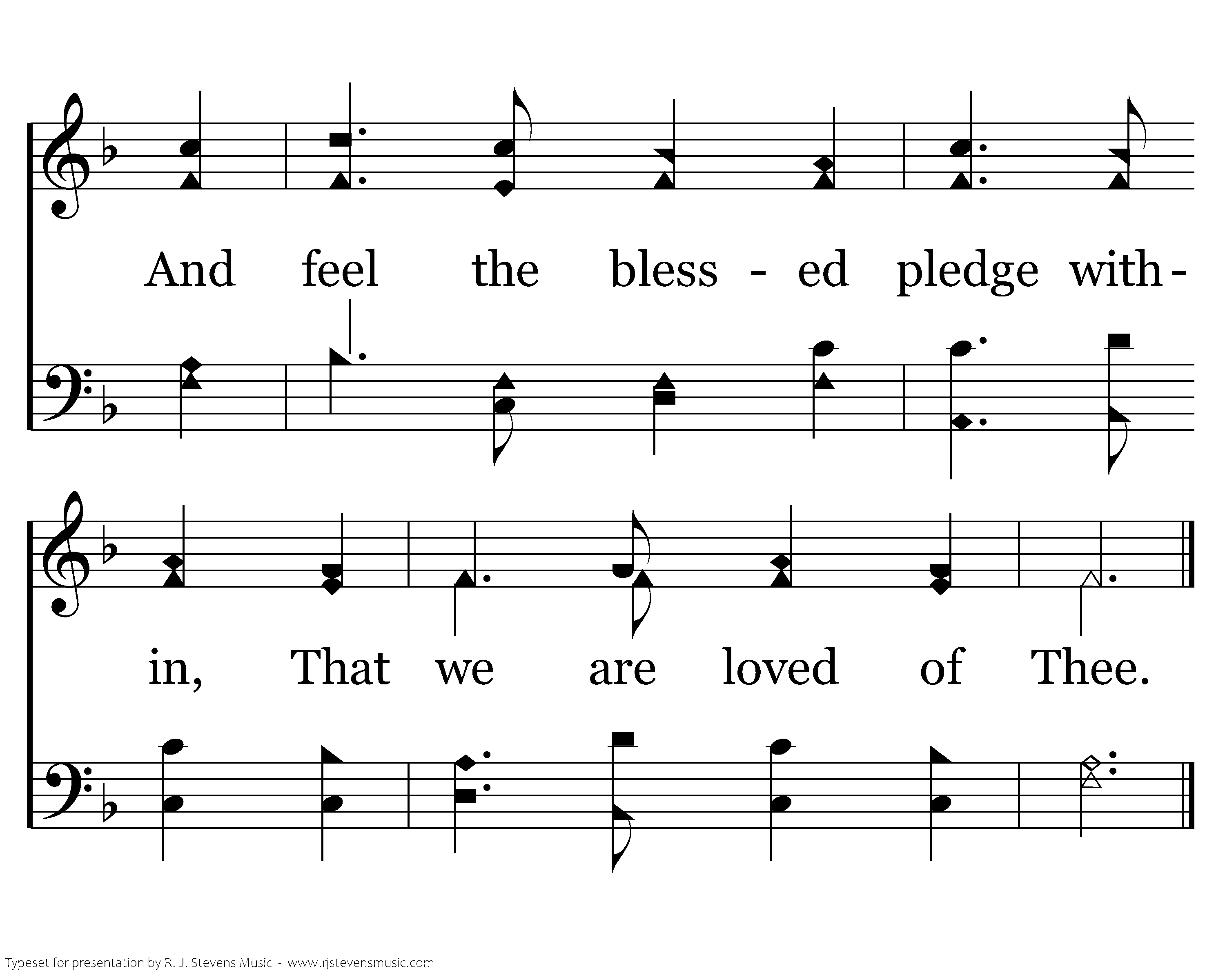 Thy blood that flowed for sin, In symbol here we see, And feel the blessed pledge within, That we are loved of Thee.
