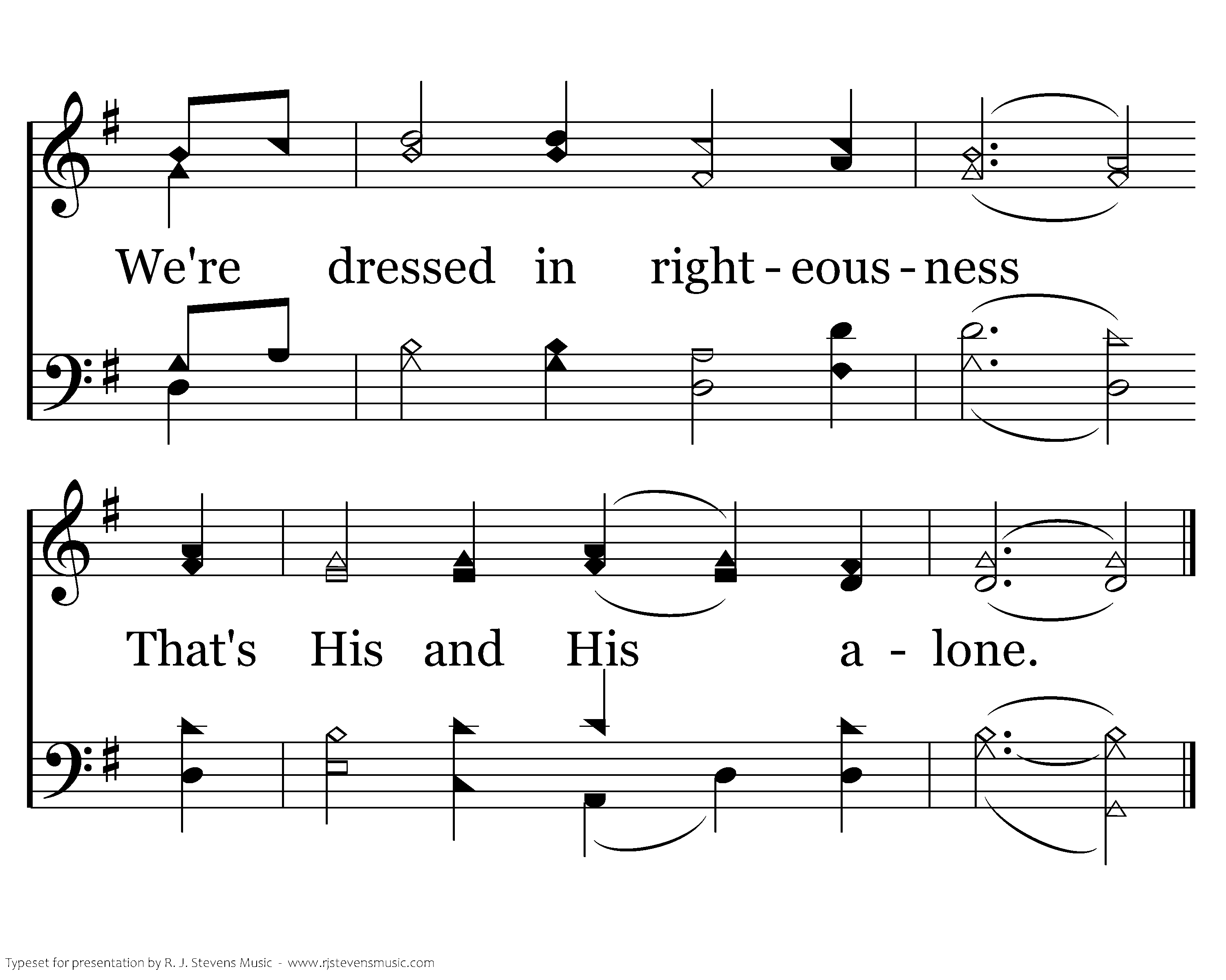 If only we believe, And this not of our own, We're dressed in righteousness That's His and His alone.