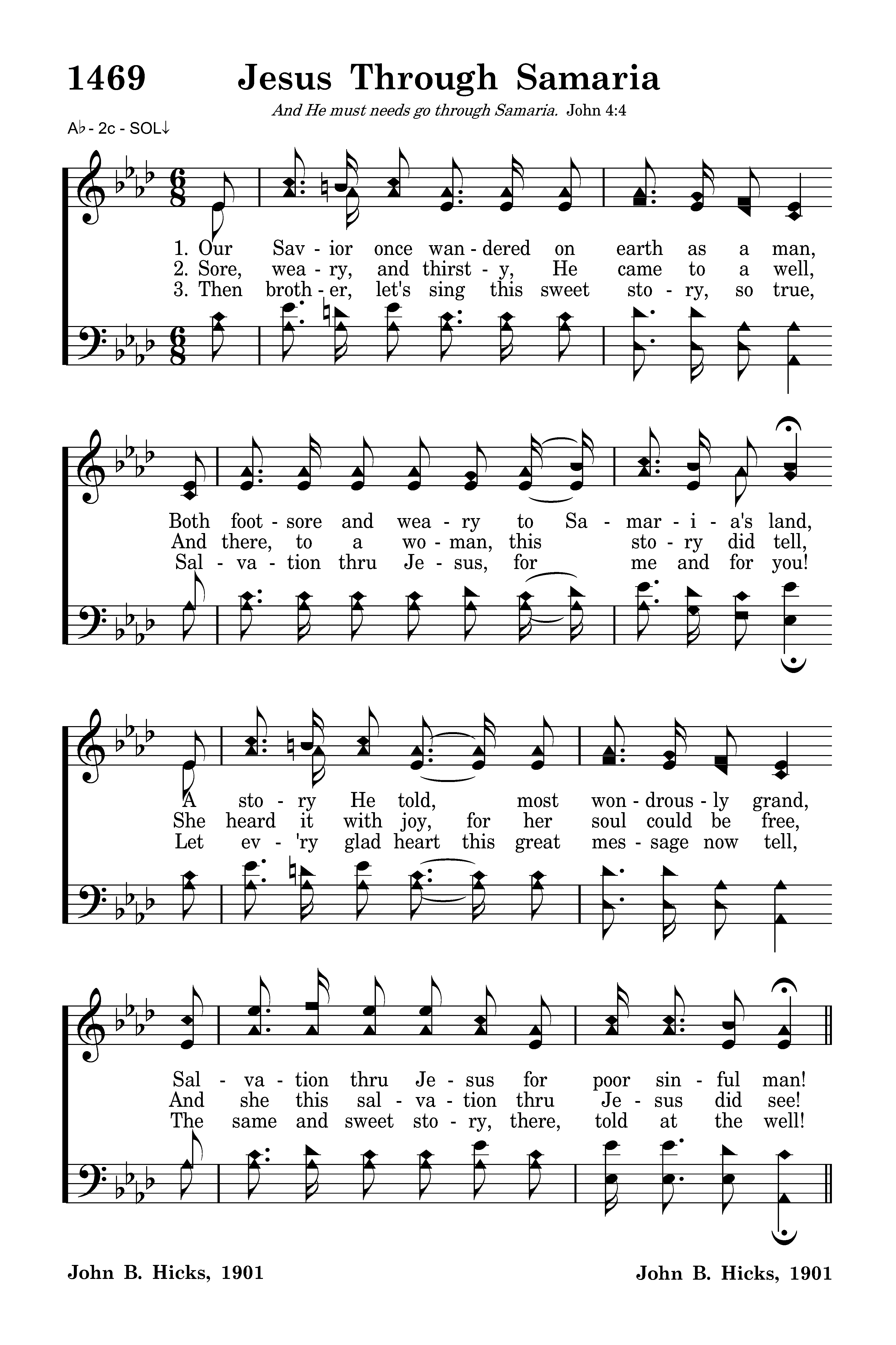 Our Savior once wandered on earth as a man, Both footsore and weary to Samaria's land, A story He told, most wondrously grand, Salvation thru Jesus for poor sinful man!